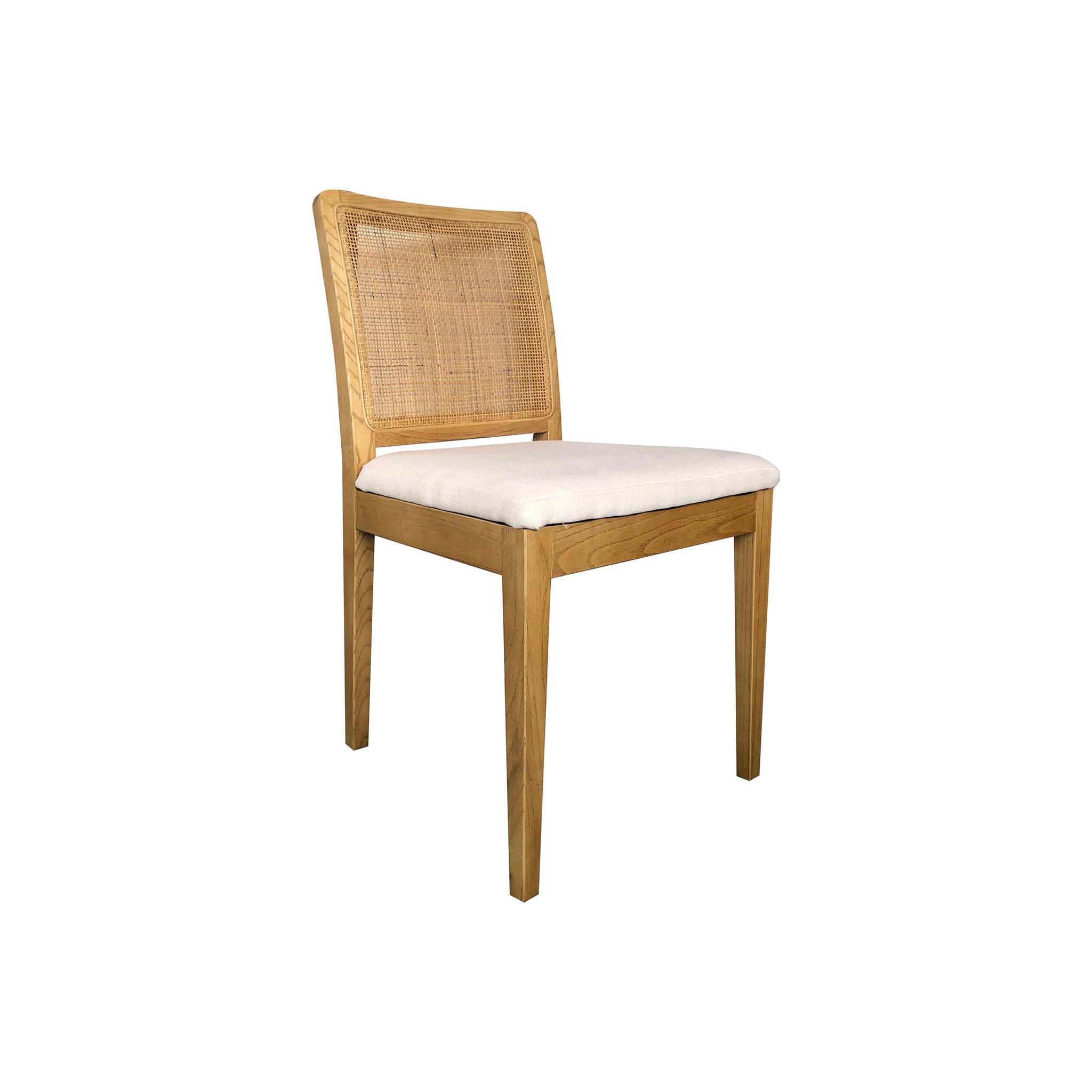 Comfort, style and substance, have it all with the Orelie dining chair. Add warmth to your dining space with rattan - tracing back to nature, it’s a time-tested trend that nestles naturally into the home environment. Bring simplicity and balance with Orville’s softened contemporary aesthetic and airy mix of solid elm, natural rattan and brighter, cushioned upholstery. Pure comfort without any fuss, these neutral elements are easily styled in the dining room, kitchen or throughout the home. Sold as a set of 2.