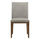 Sleek lines, modern curves, and a wipe-clean design make this family-friendly dining chair a contemporary fit for any dining room arrangement. Styled with Scandinavian simplicity, this chair is cushioned just right with comfortable padding and top-grain leather upholstery that will take your dinner conversations long into the night. Sold as a set of 2.