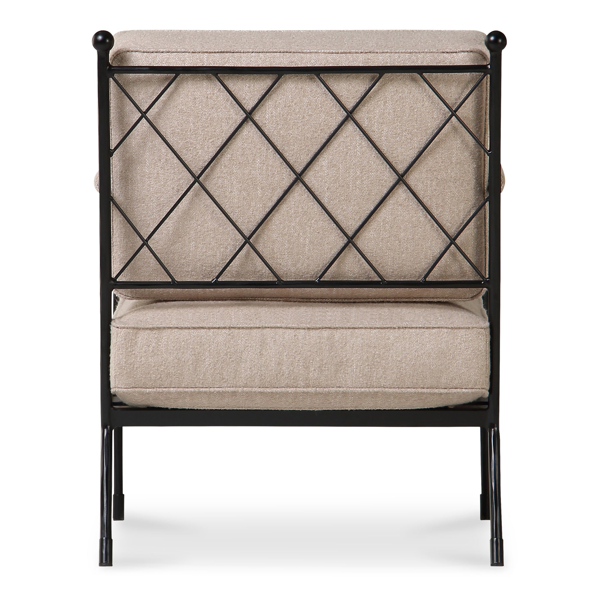 The Vecchia accent chair by Gillian Segal draws its inspiration from the revered ambiance of Italy's Posta Vecchia hotel, blending timelessness with understated elegance. Crafted with a hammered metal finish, its iron frame showcases a unique lattice detail on the back, crowned with a decorative finial, paying homage to historic Italian craftsmanship. The chair's upholstered seat, complemented by refined piping detail, speaks to comfort and an easy-to-maintain aesthetic grace.