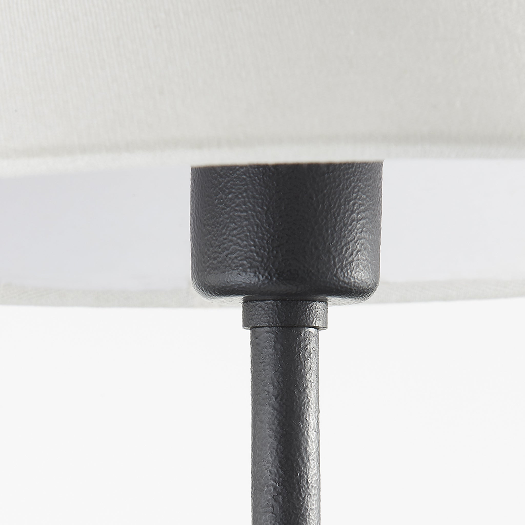 Sleek Forged Iron arms draw the eye to three tapered, off-white linen shades, creating a layered effect and giving Cedar its recognizable clean, modern silhouette. The floor lamp's unique tripod base and wavy feet add a touch of softness and unexpected whimsy.