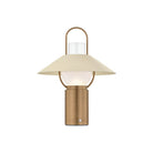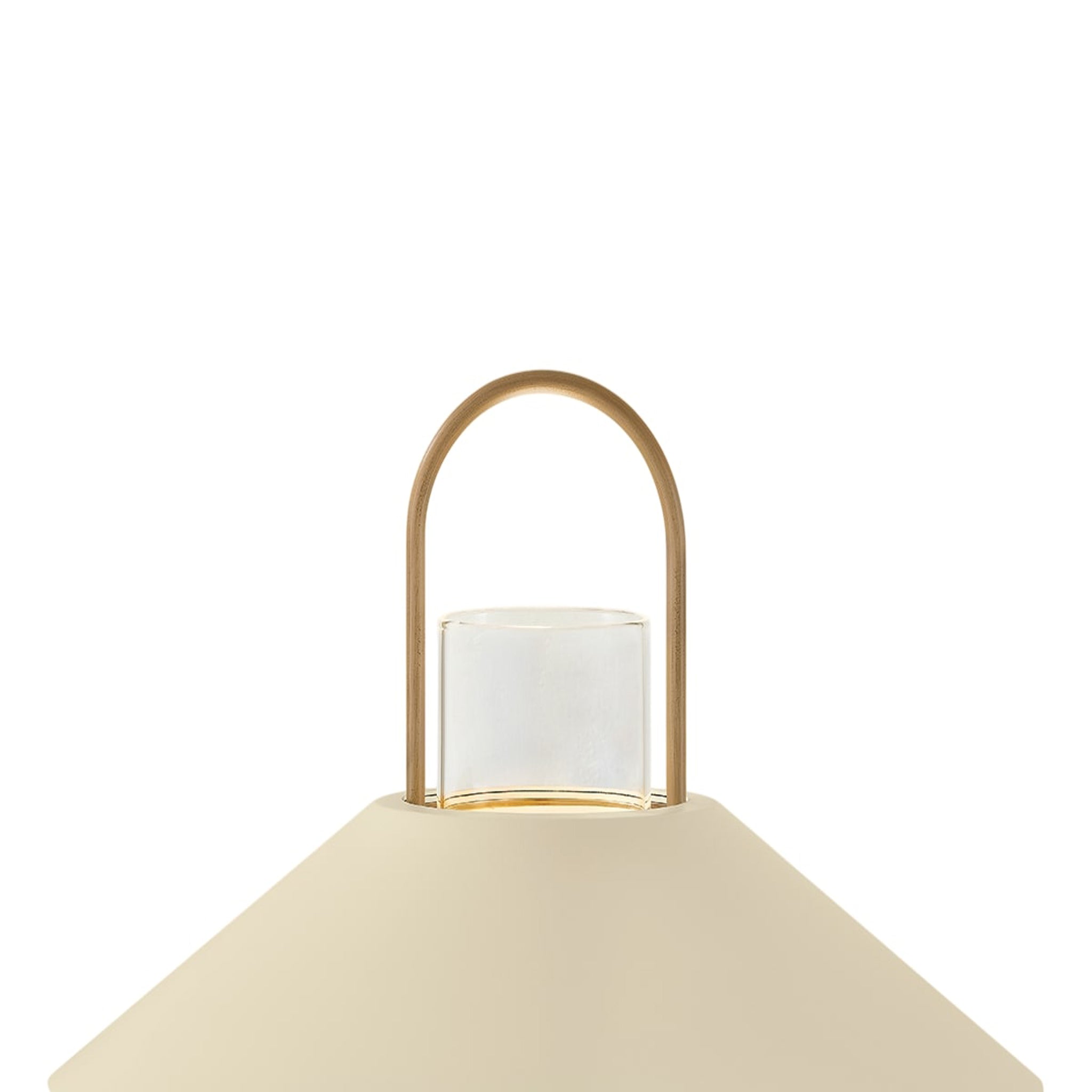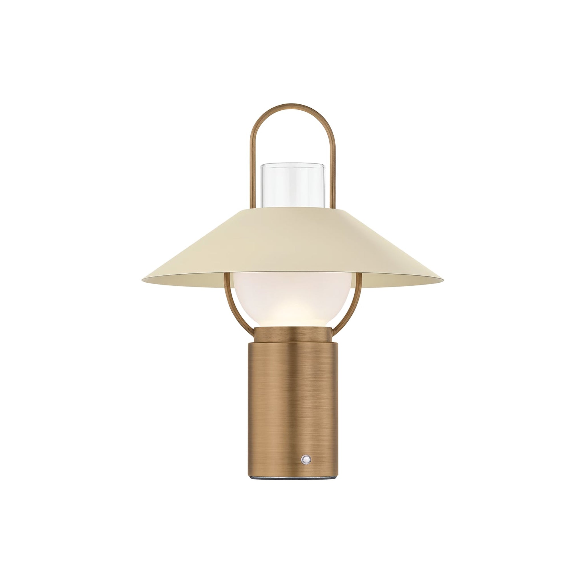 Designed for life in motion, Kindle is a versatile rechargeable lamp with a vintage-inspired silhouette. A Soft Sand shade, etched clear glass, and Patina Brass details lend a warm, artisanal prescence, while the carry handle adds function and charm. At 14.5" high, it's perfectly sized to move effortlessly from room to garden-bringing light wherever it's needed most. Lauren Liess for Troy Lighting.