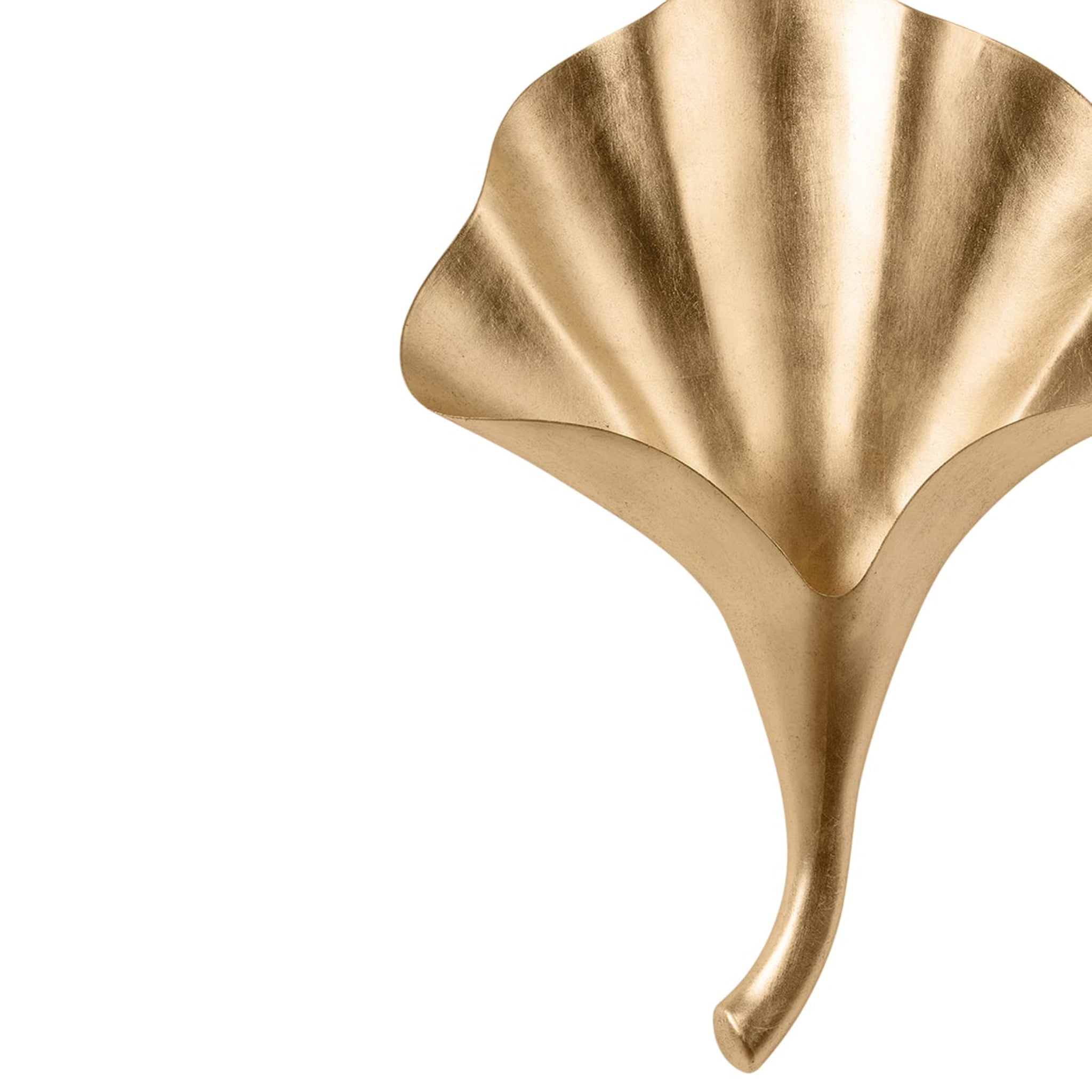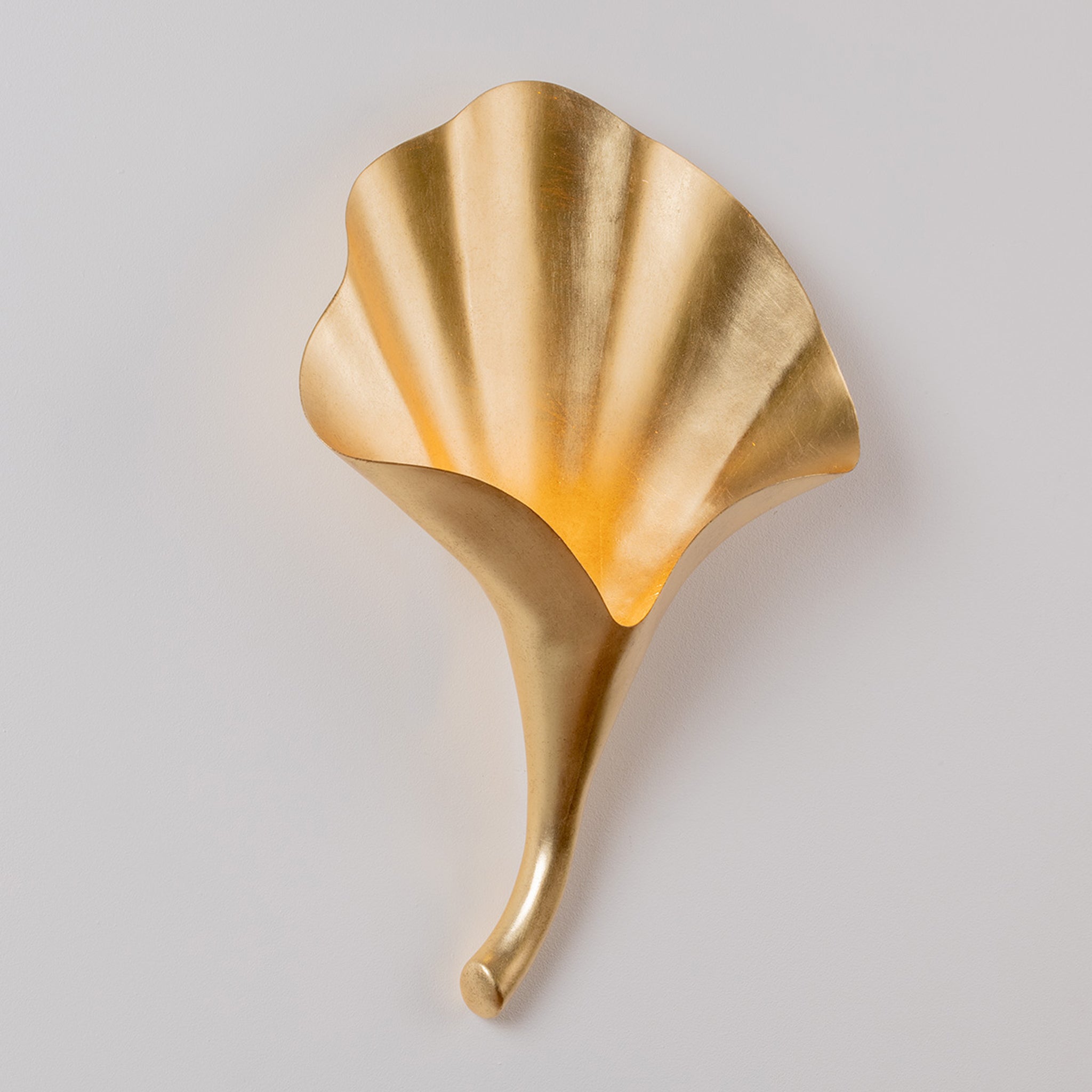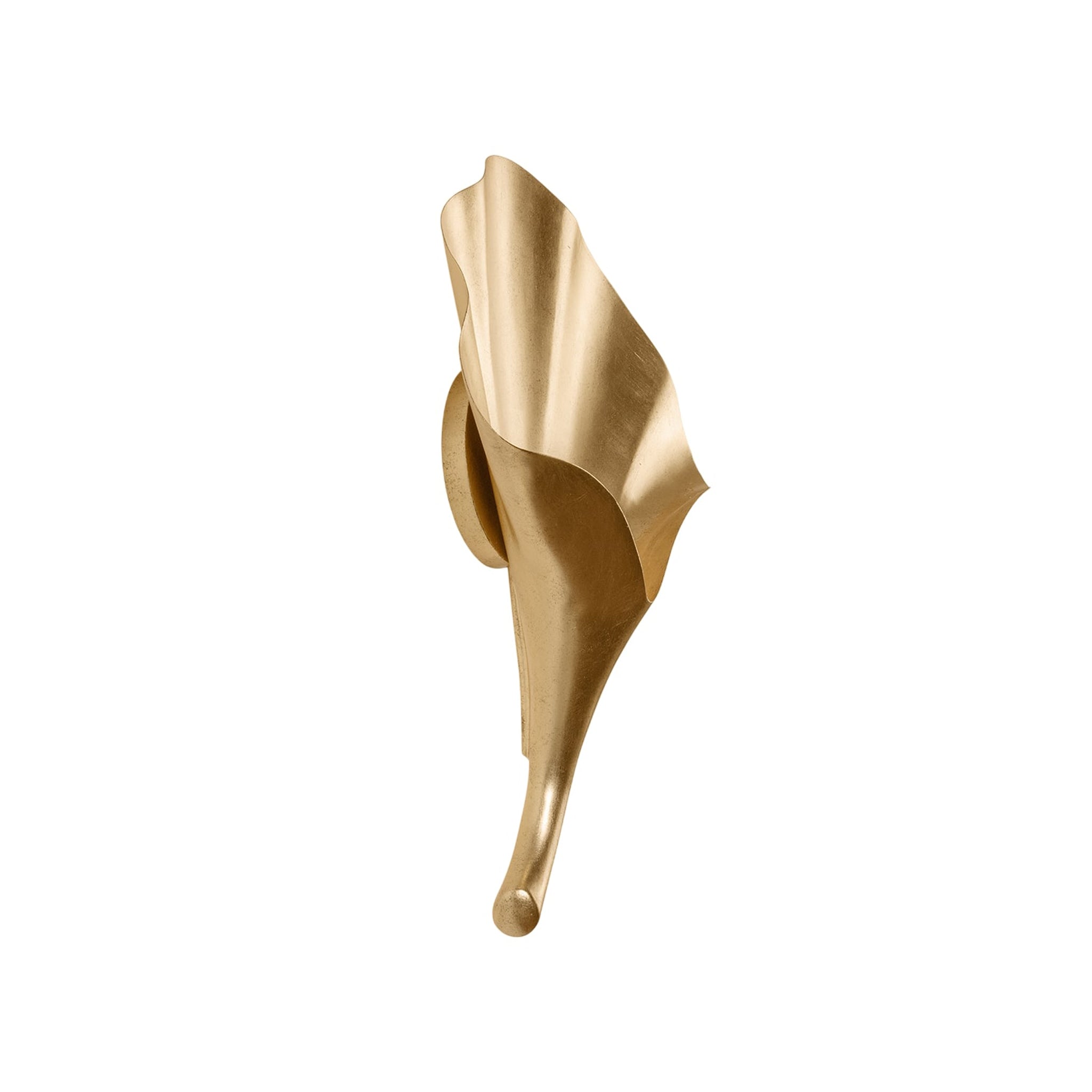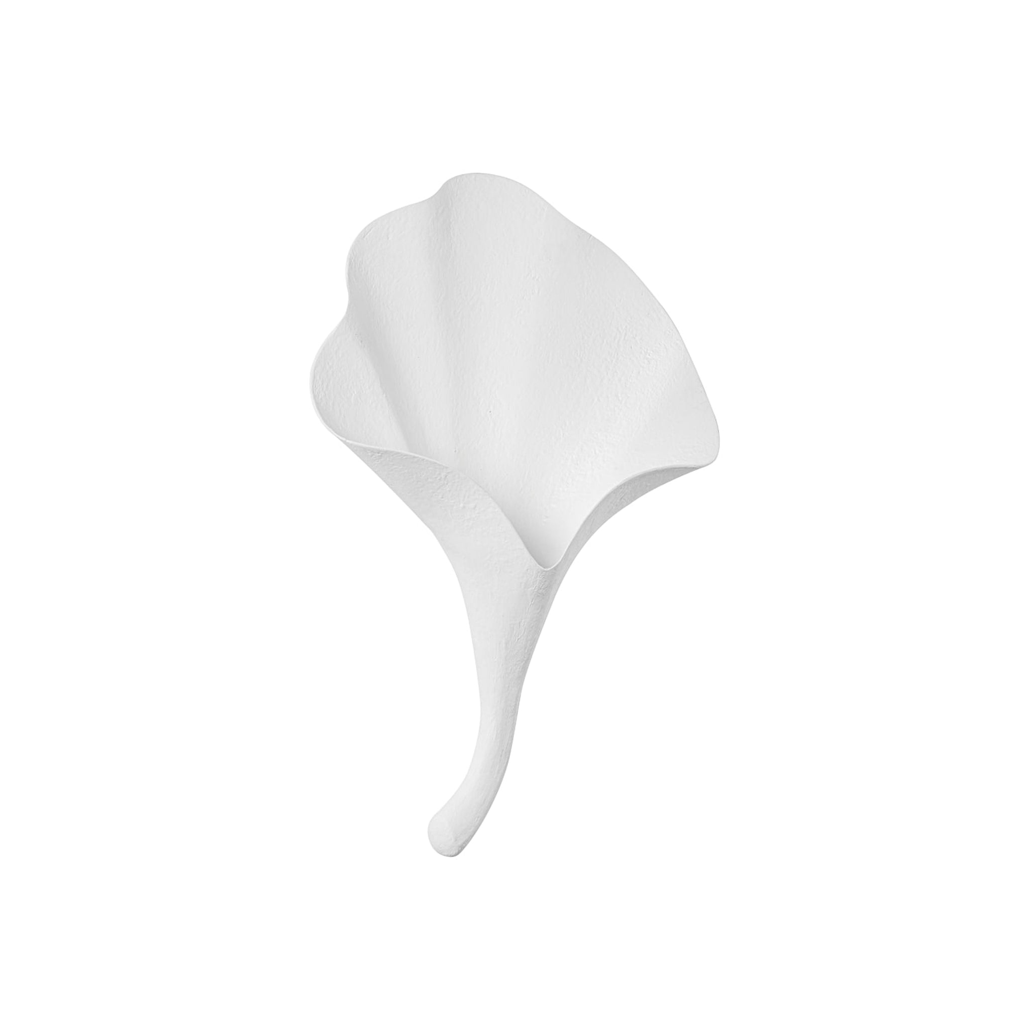 Old Hollywood glamor meets modern simplicity in this sculptural sconce. The leaf-shaped design, delicately fluted with a curved stem, exhibits a refined beauty. Available in a Vintage Gold Leaf or Gesso White finish, it looks beautiful mounted independently or paired with another.