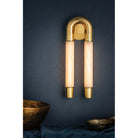 Reminiscent of a chunky, individual chain link or a beautiful modern earring, Zeme is instantly recognizable as a creation of Noz Nozawa. The simple yet exaggerated silhouette feels new and fresh yet understandable. The integrated LED light introduces a touch of innovation, while the etched cloud glass and Vintage Polished Brass finish nod to vintage glamor. Zeme is available as a 6-light or 8-light chandelier, as well as a 2-light sconce. Noz Nozawa for Corbett Lighting.
