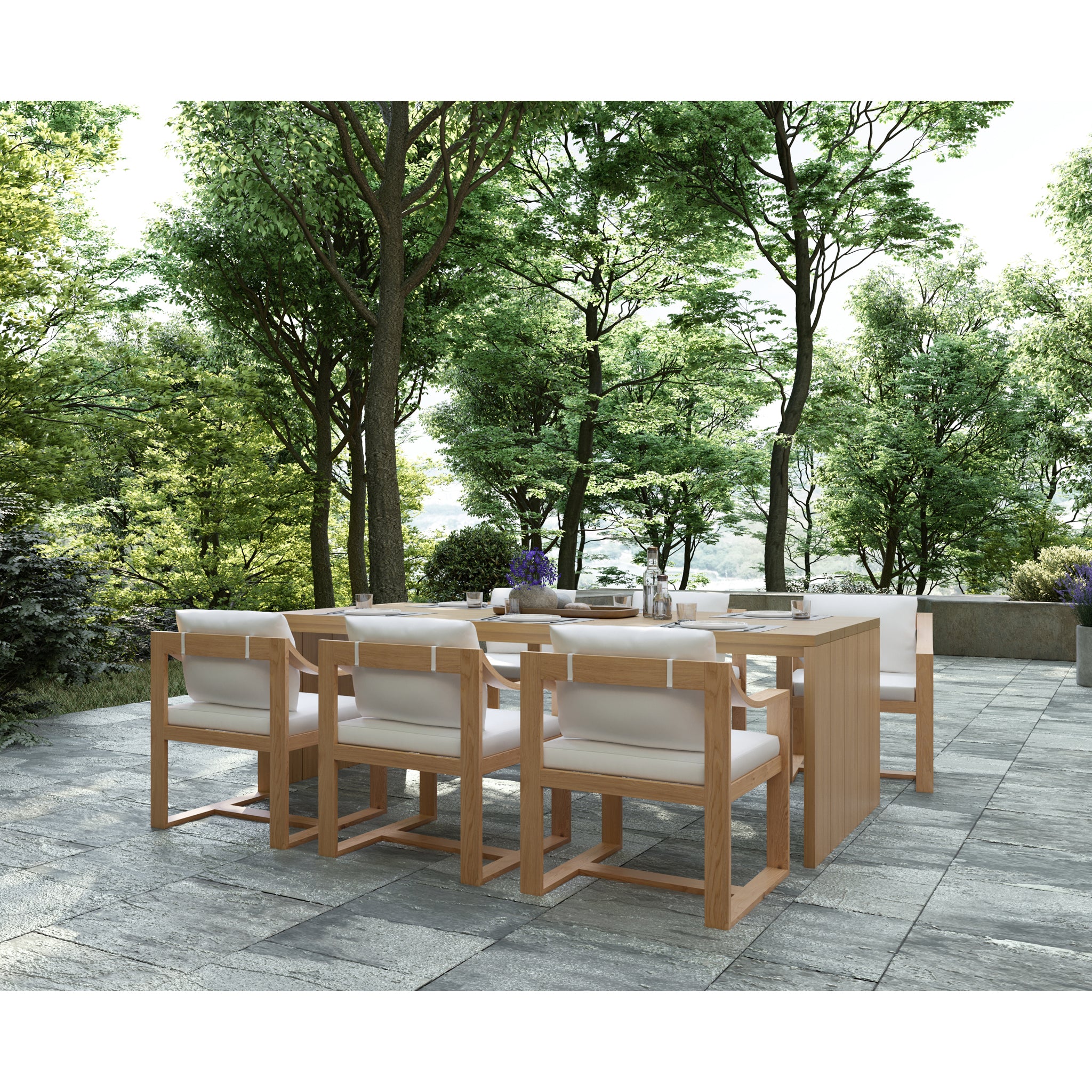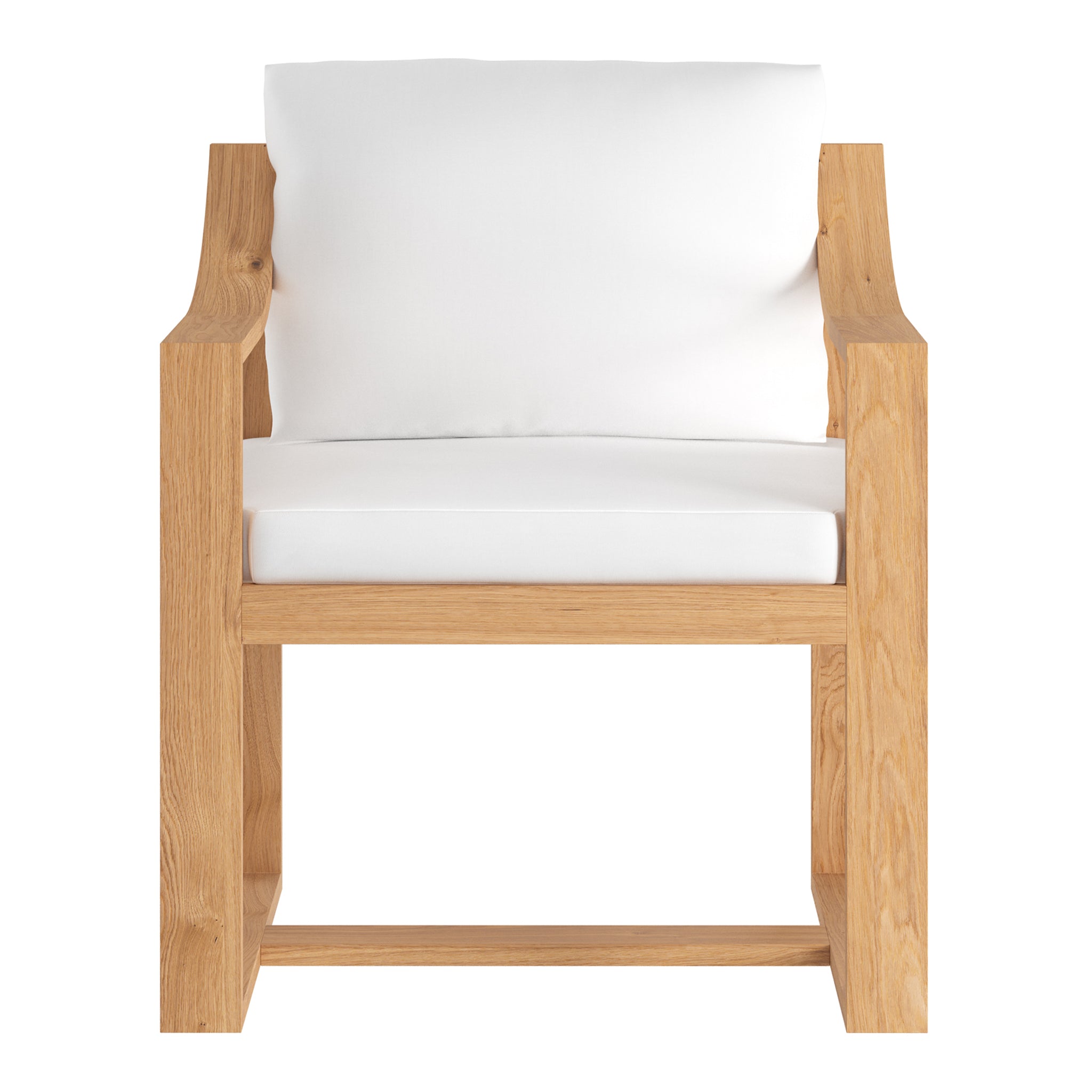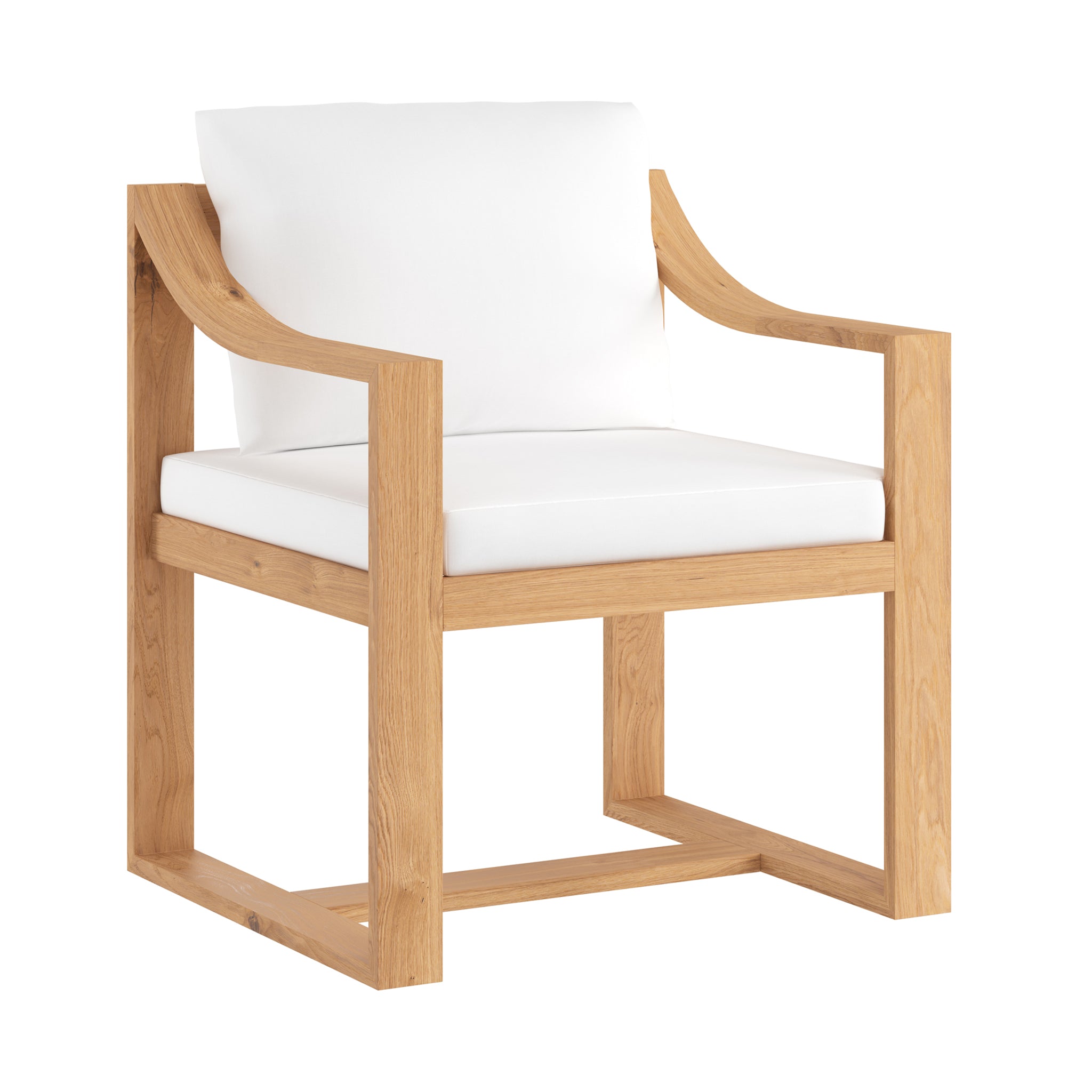 No matter what dining table you have on your patio, our neutral-toned Titus Outdoor Dining Armchairs are sure to be a perfect match. With a solid, natural teak wood frame and a fresh, white fabric seat, these beautiful armchairs will give a soft, organic feel to your outdoor dining area. Seat all your family and friends at the table comfortably with these versatile, contemporary outdoor armchairs.