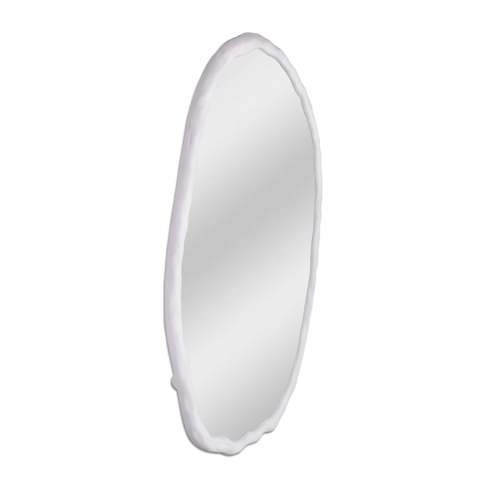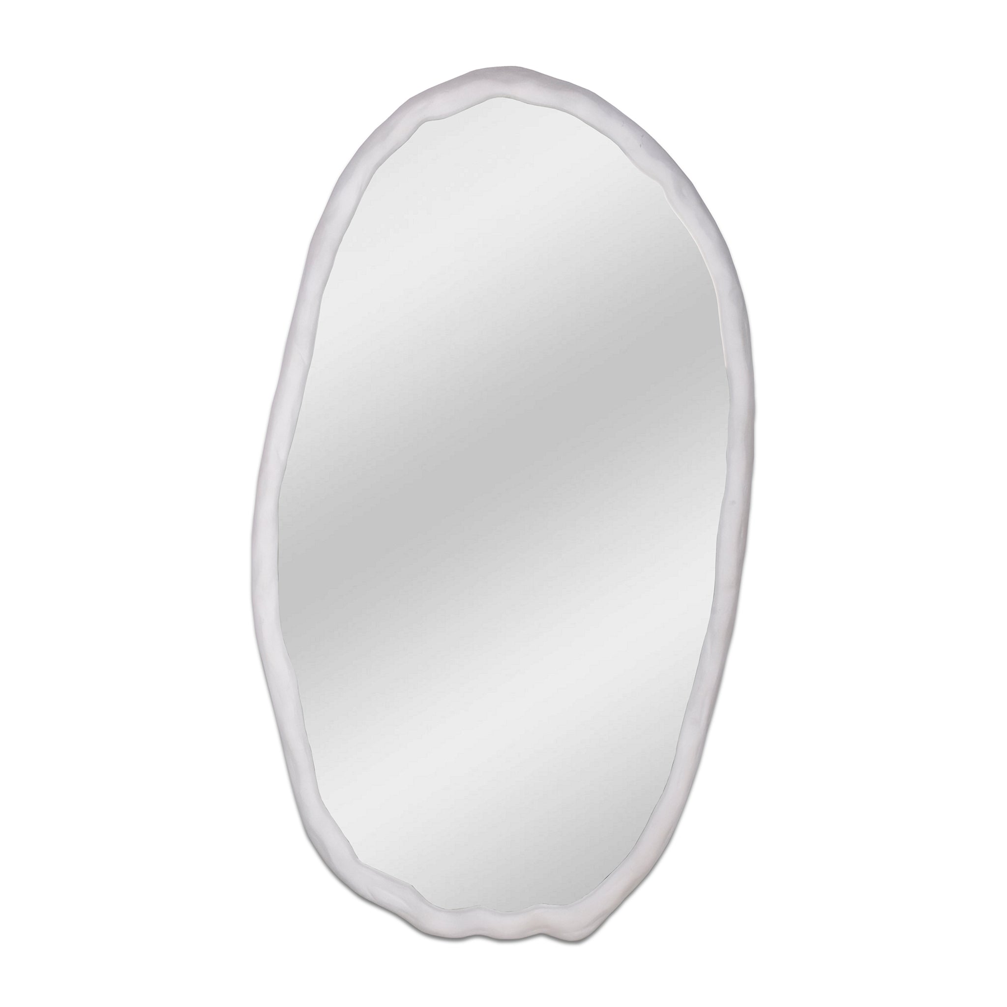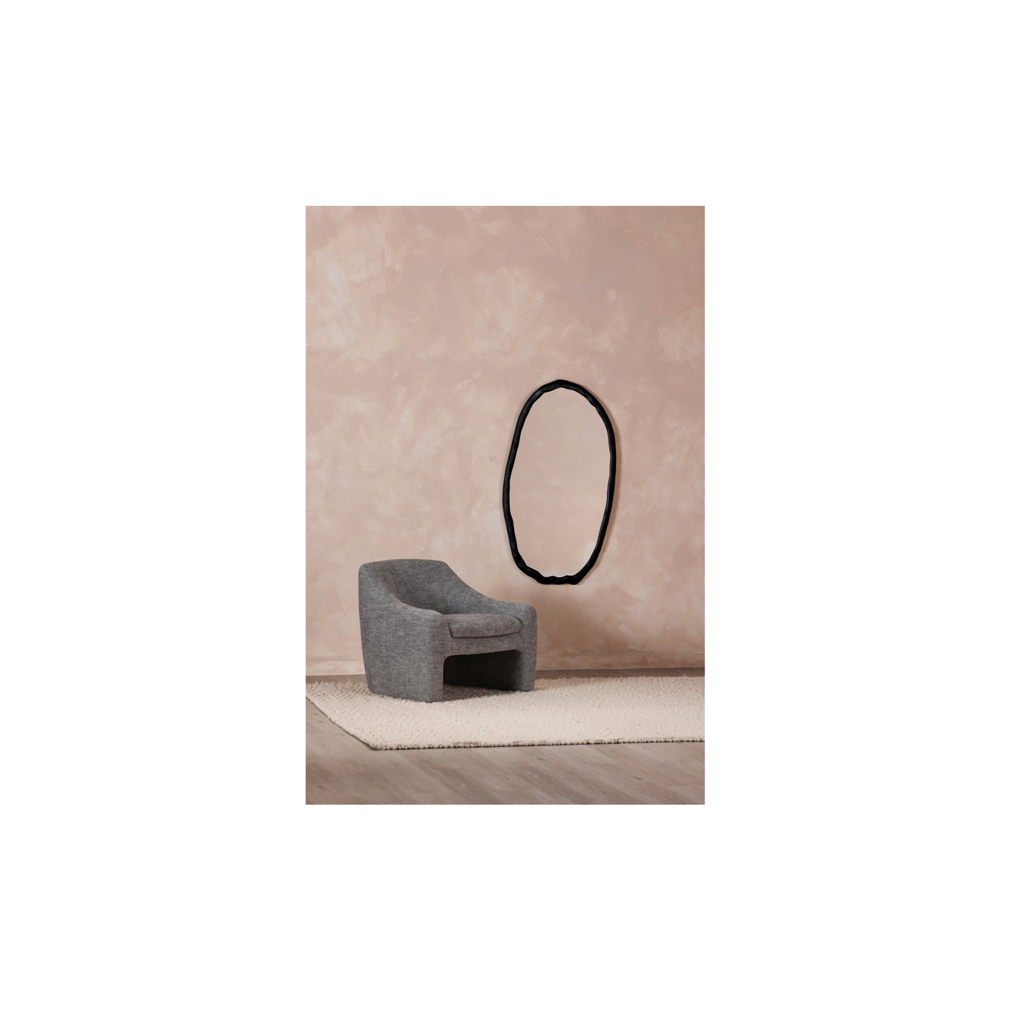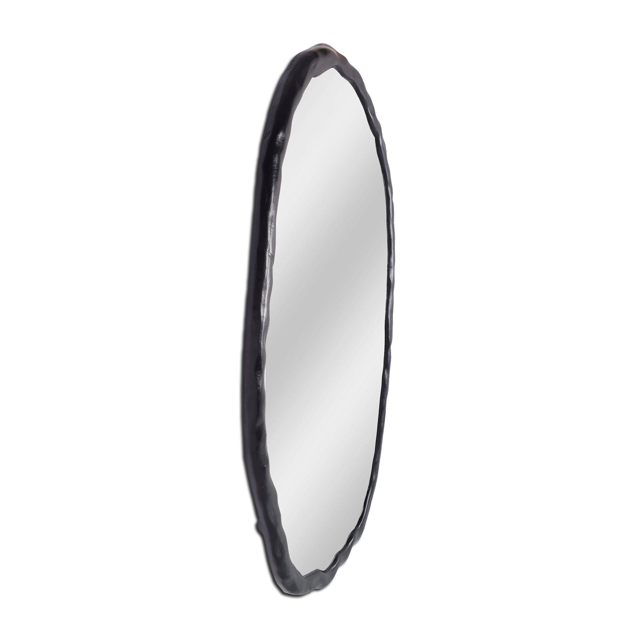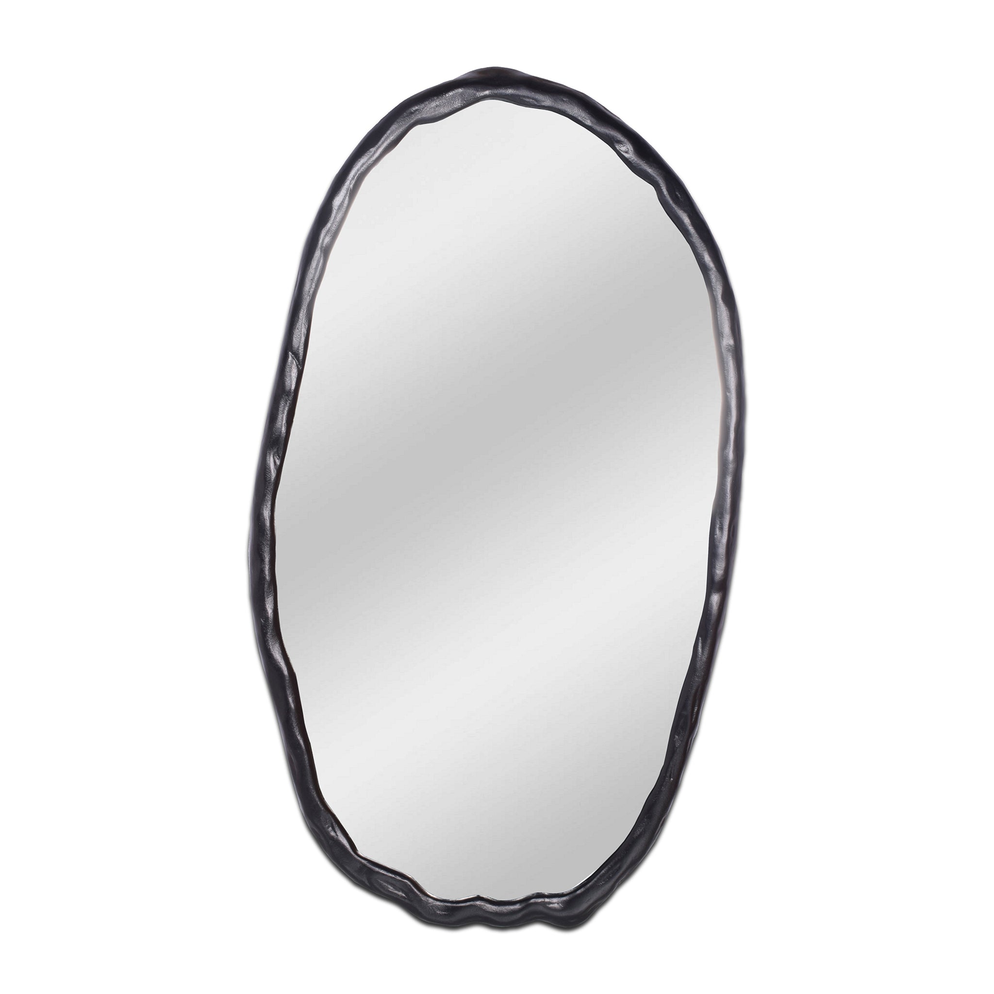 Amp up those positive reflections with this black beauty. The Frederick oval wall mirror will hang centerfold wherever you've been looking the most. Mirrors brighten up your space in an instant, and this one hangs easily in a lighter-weight aluminum frame. Artfully rustic with an organic touch to its wood-like design.
