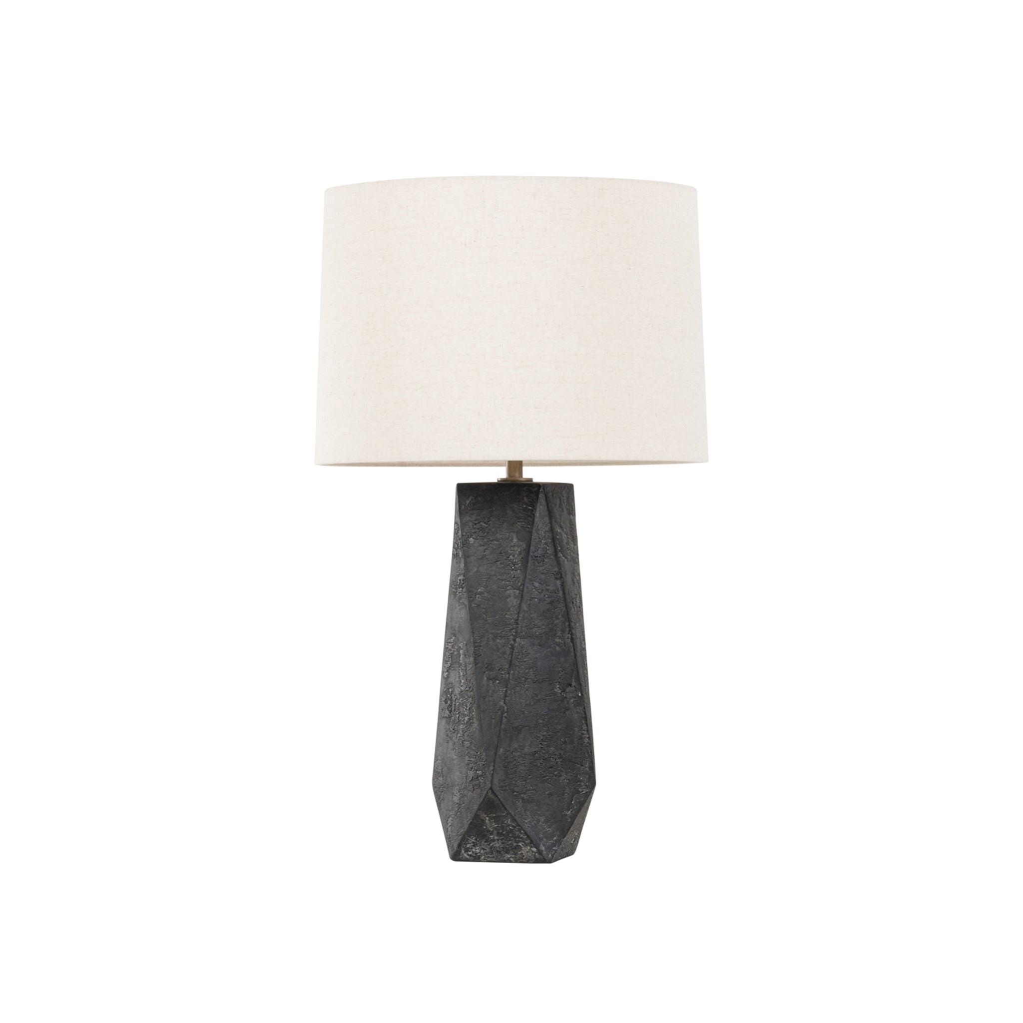 A geometrically faceted lamp with a primitive, hand-hewn quality, Coronado has the appearance of a modern sculpture carved from stone. The chalky finish of the black ceramic is balanced by the freshness of a natural grained off-white linen shade. A subtle glint of Patina Brass metalwork introduces a warm note at the neck. *Due to the one-of-a-kind nature of the medium, exact colors and patterns may vary slightly from the image shown.
