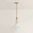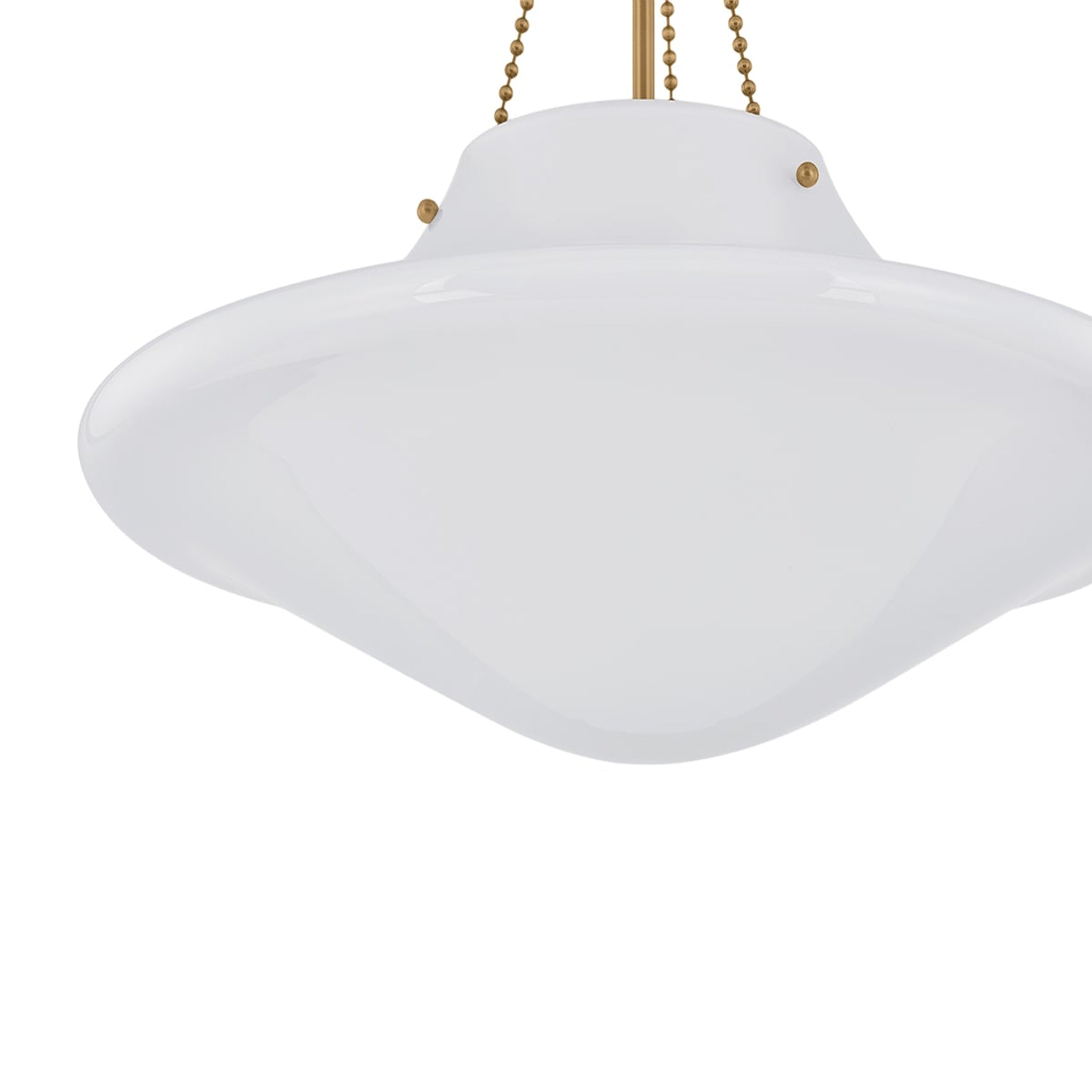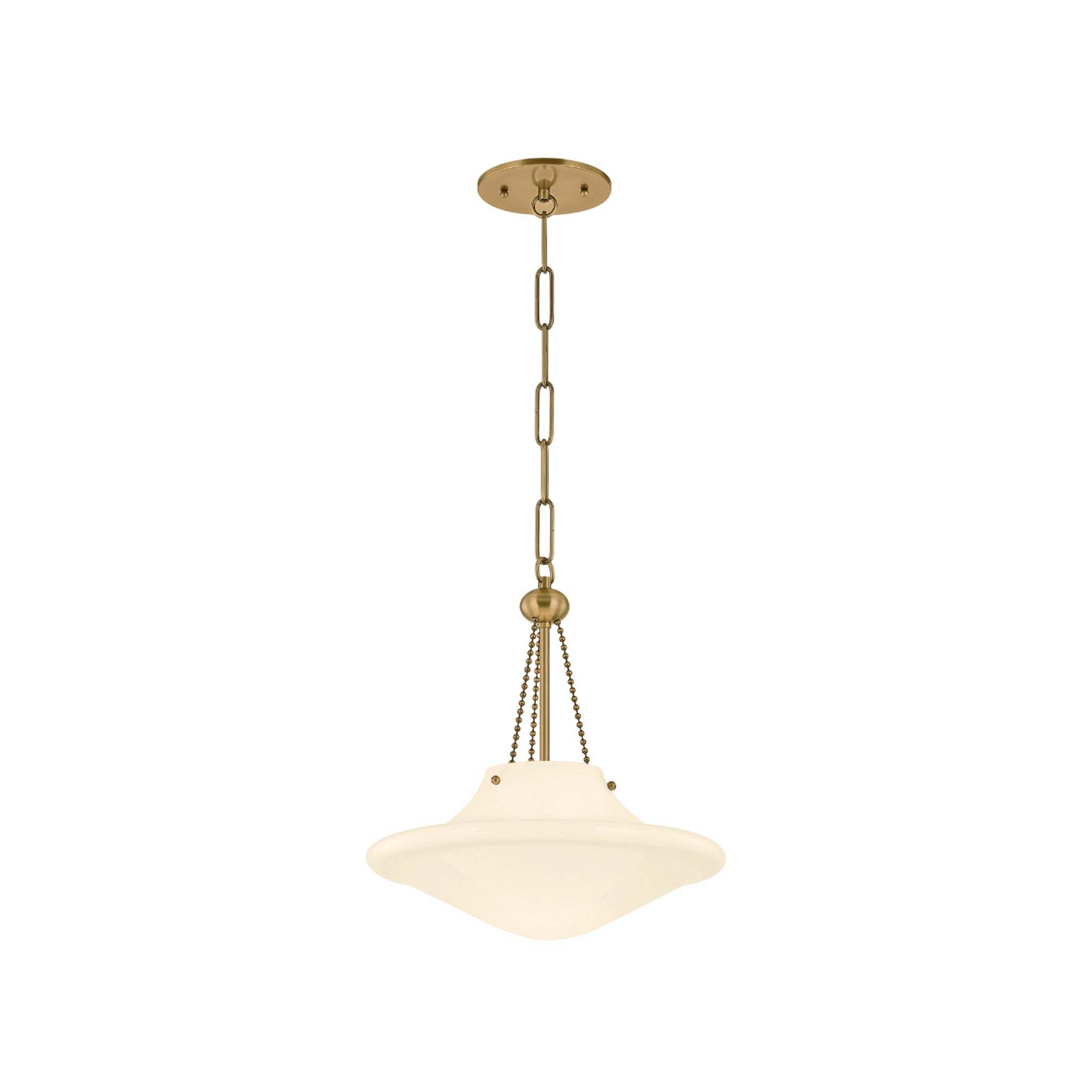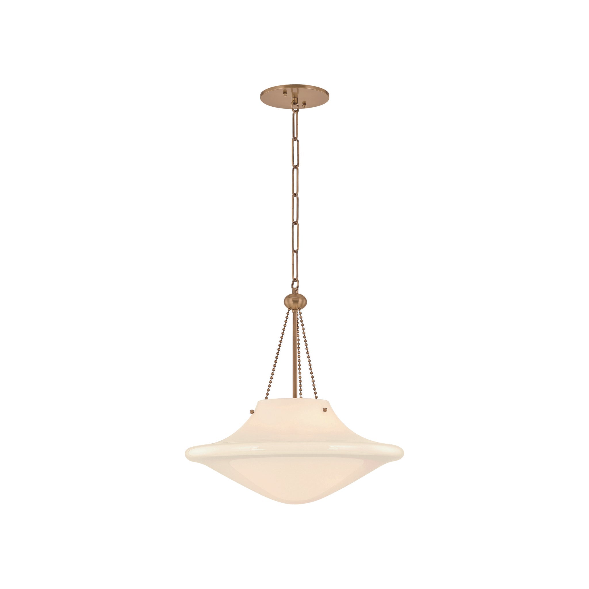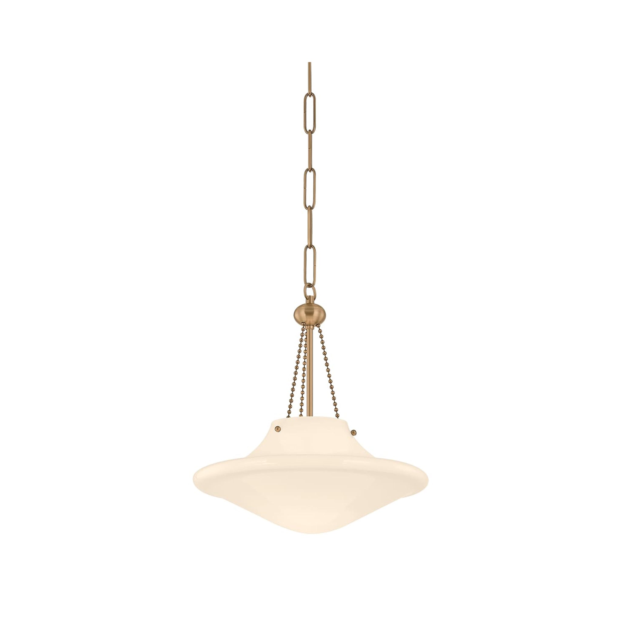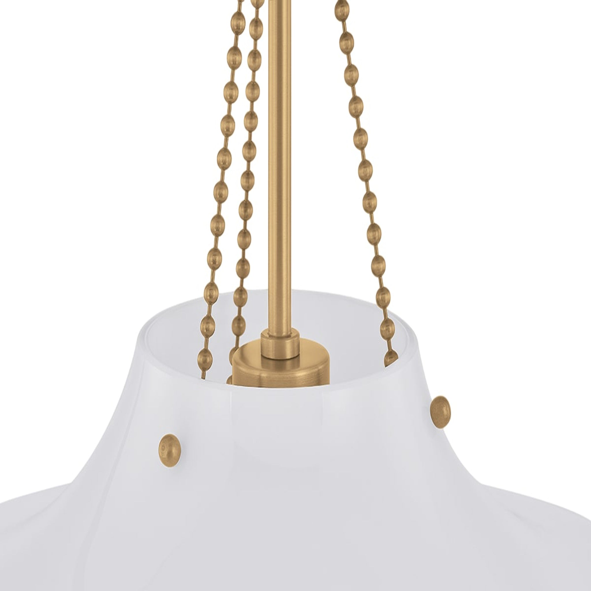 An ethereal pendant-lantern hybrid, Era combines a sleek opal glass shade with charming vintage details to create a soft yet striking focal point. The large shade emits a warm, ambient glow-ideal for gathering spaces like dining rooms and kitchens. Decorative rivets and a retro ball chain in Patina Brass add a touch of vintage glamour. Available in two sizes, Era brings timeless style with a hint of mid-century cool. Lauren Liess for Troy Lighting.
