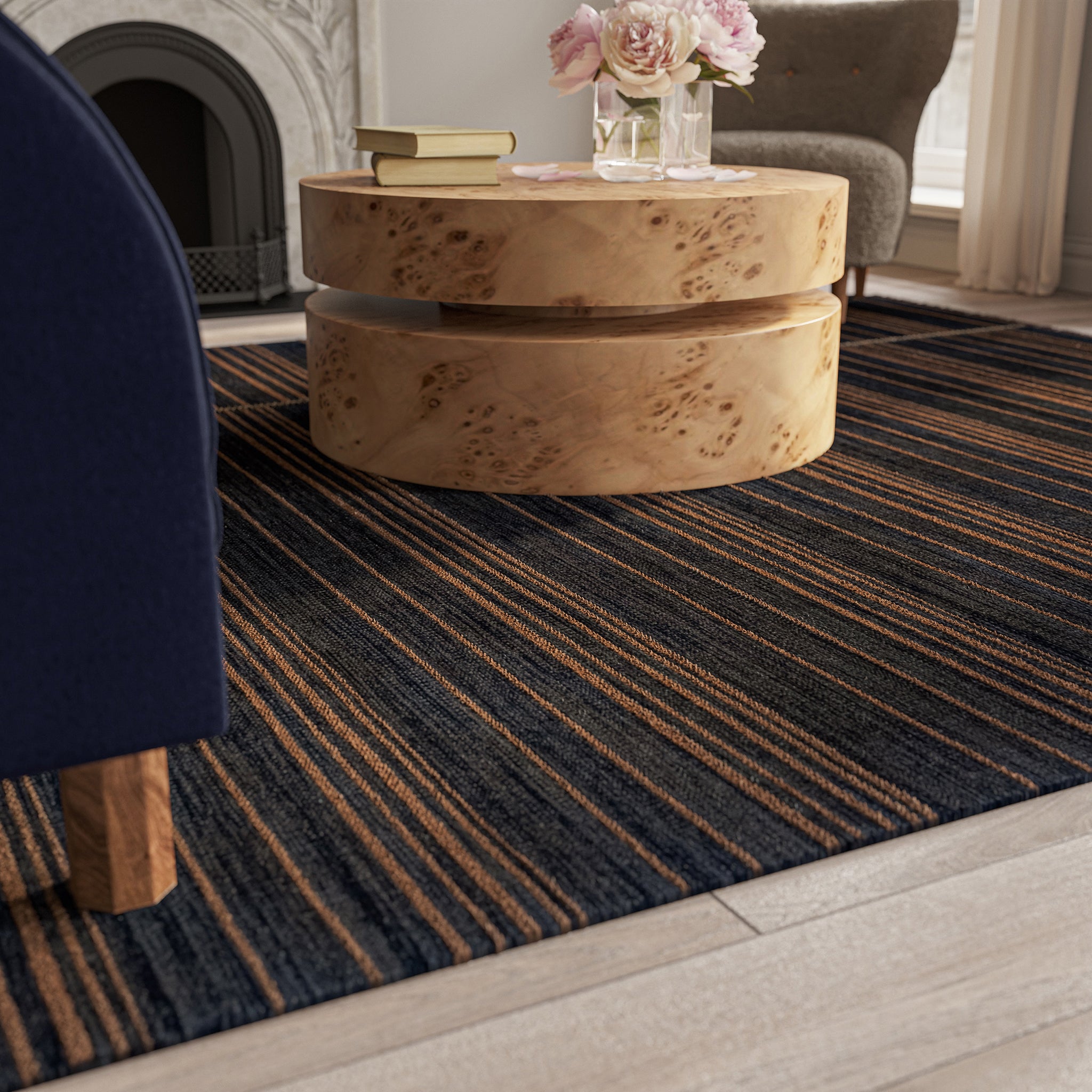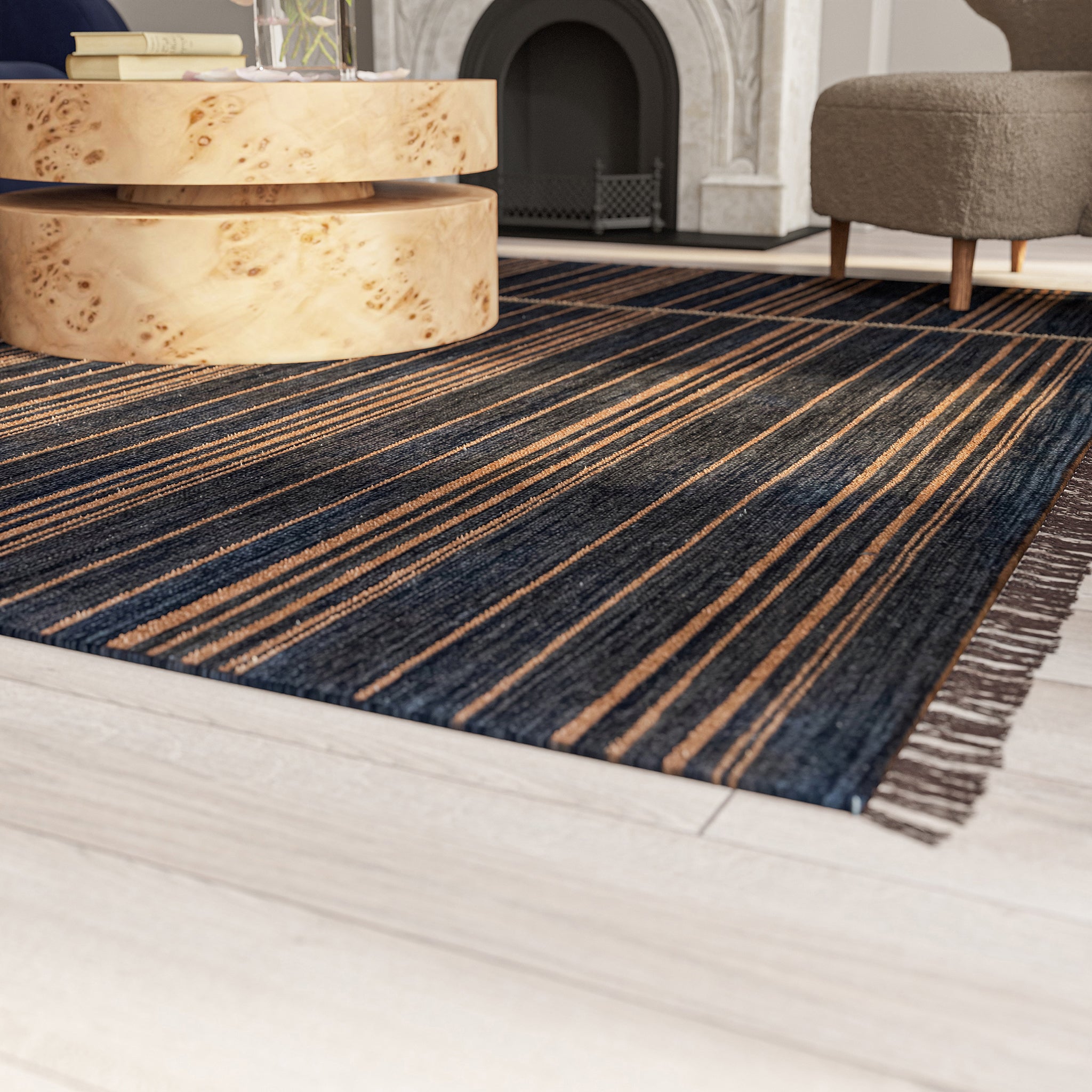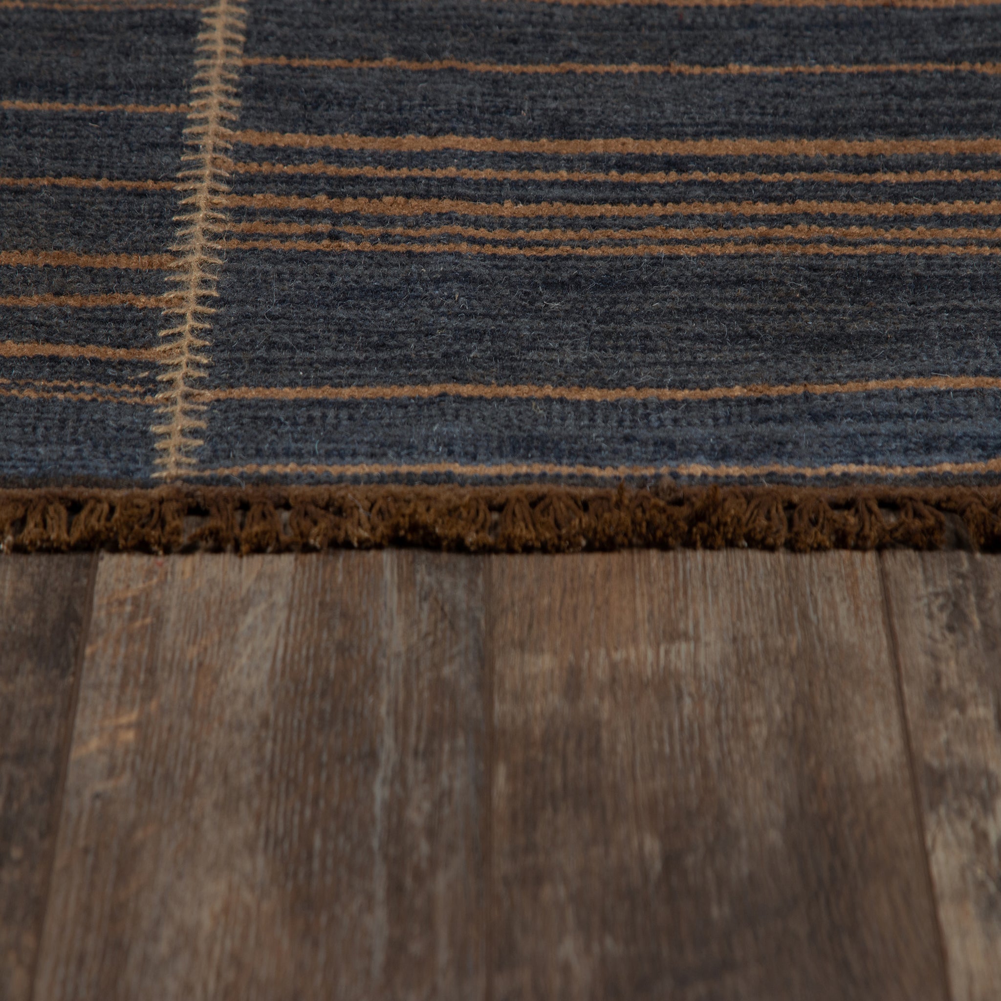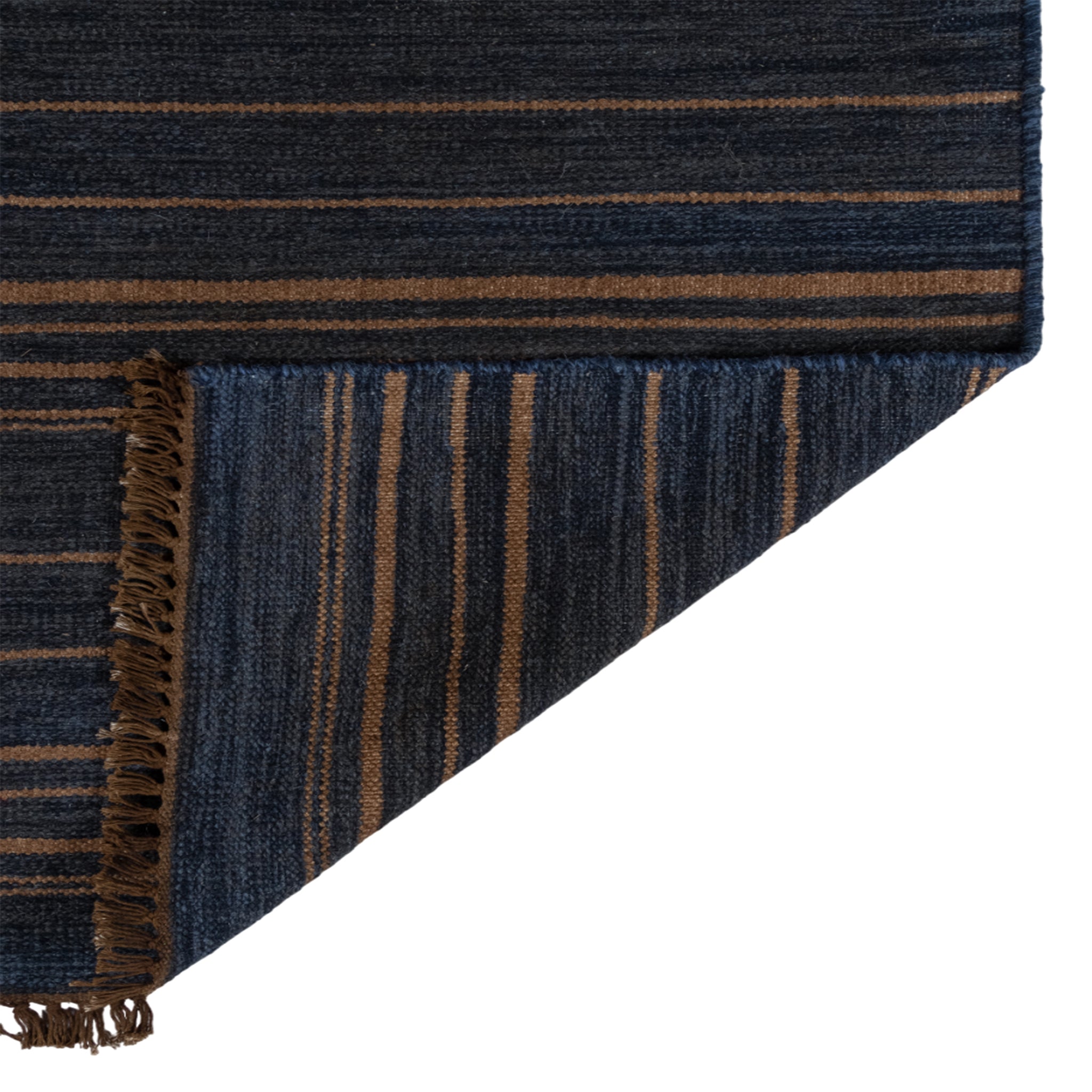 Inspired by everything from Shibori, Scandinavian flatweaves, and a myriad of other hand-dyed textiles, the Duar Collection has a rich sense of history in its patterns. Space dyed, you'll see color undulation in each style, ranging from deep indigo to almost black. Each pattern, from micro dashes to broad sweeping stripes, creates a sense of fluidity and motion within the rug.