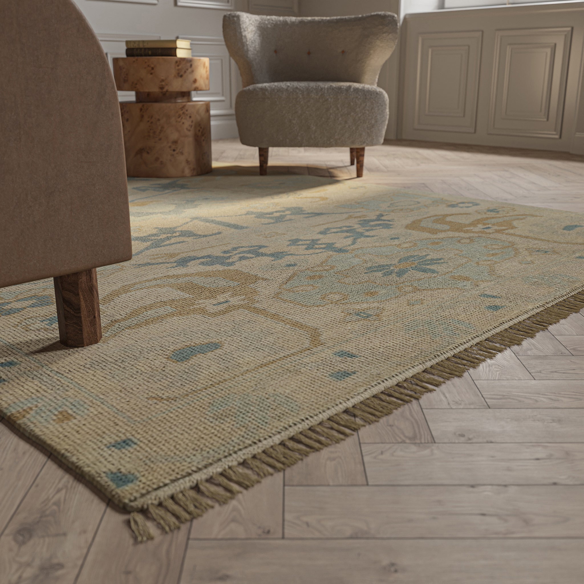 Imagine finding the most beautiful heirloom rug at your favorite Parisian flea market, the rugs in the Kouang Collection all feel that bespoke. Delicate and high-end, the dusty palettes and the faintest ghosts of pattern are pulled from multiple sources of inspiration. Hand knotted out of wool and finished with a heavy wash and whisper-thin pile, these rugs elevate the decor of an entire room with their presence.