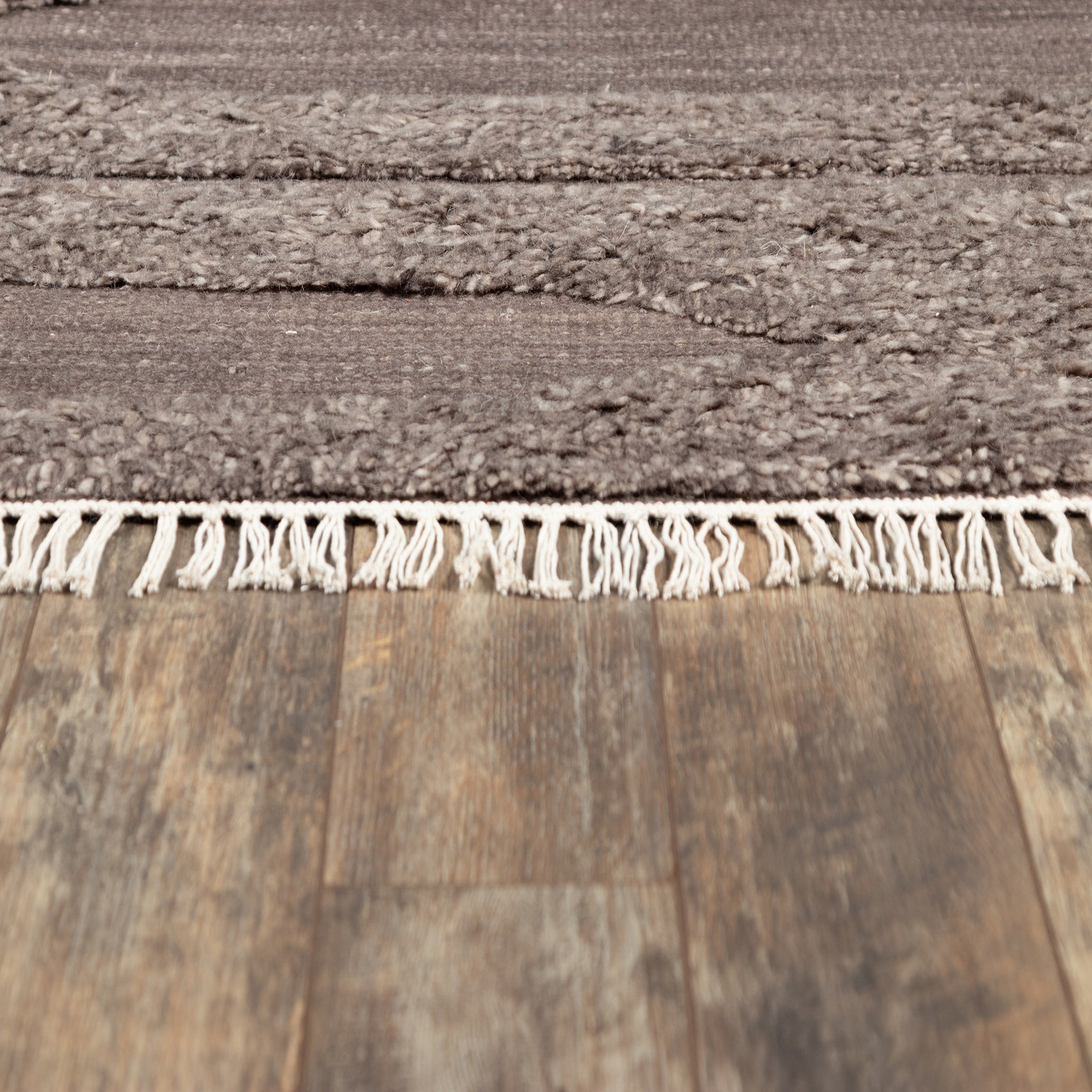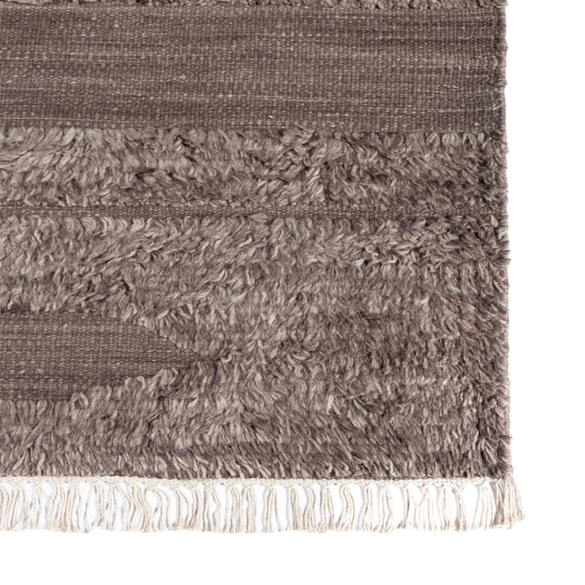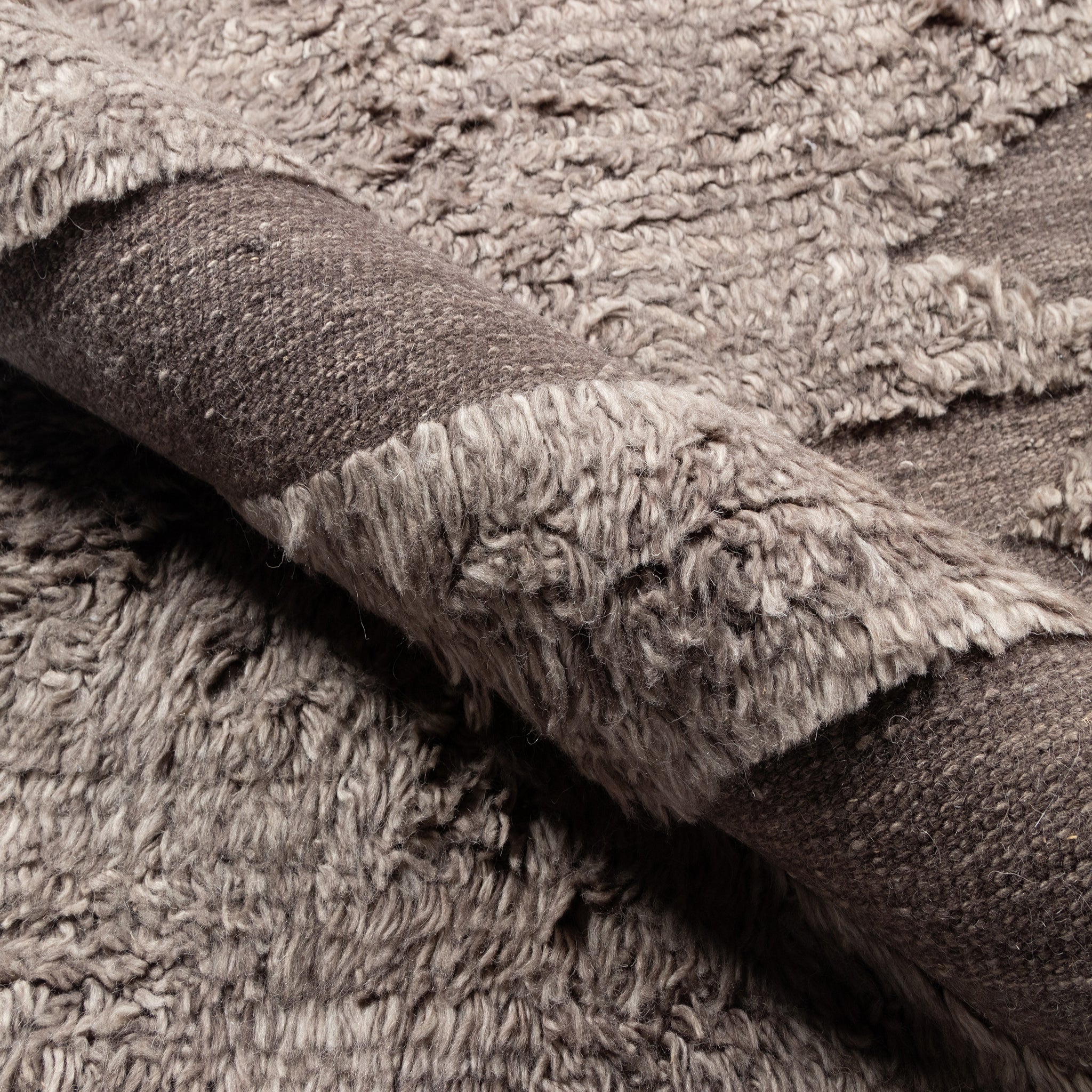 Inspired by the beauty of sun-aged natural elements, the Rafalla Collection honors the abstract beauty of a stark landscape. Handmade with natural, undyed wool and inspired by wonderfully shaggy Tulu rugs, this line features a high-low pile that feels rich underfoot. These textured pieces lend a grounding influence to any space they're placed in.