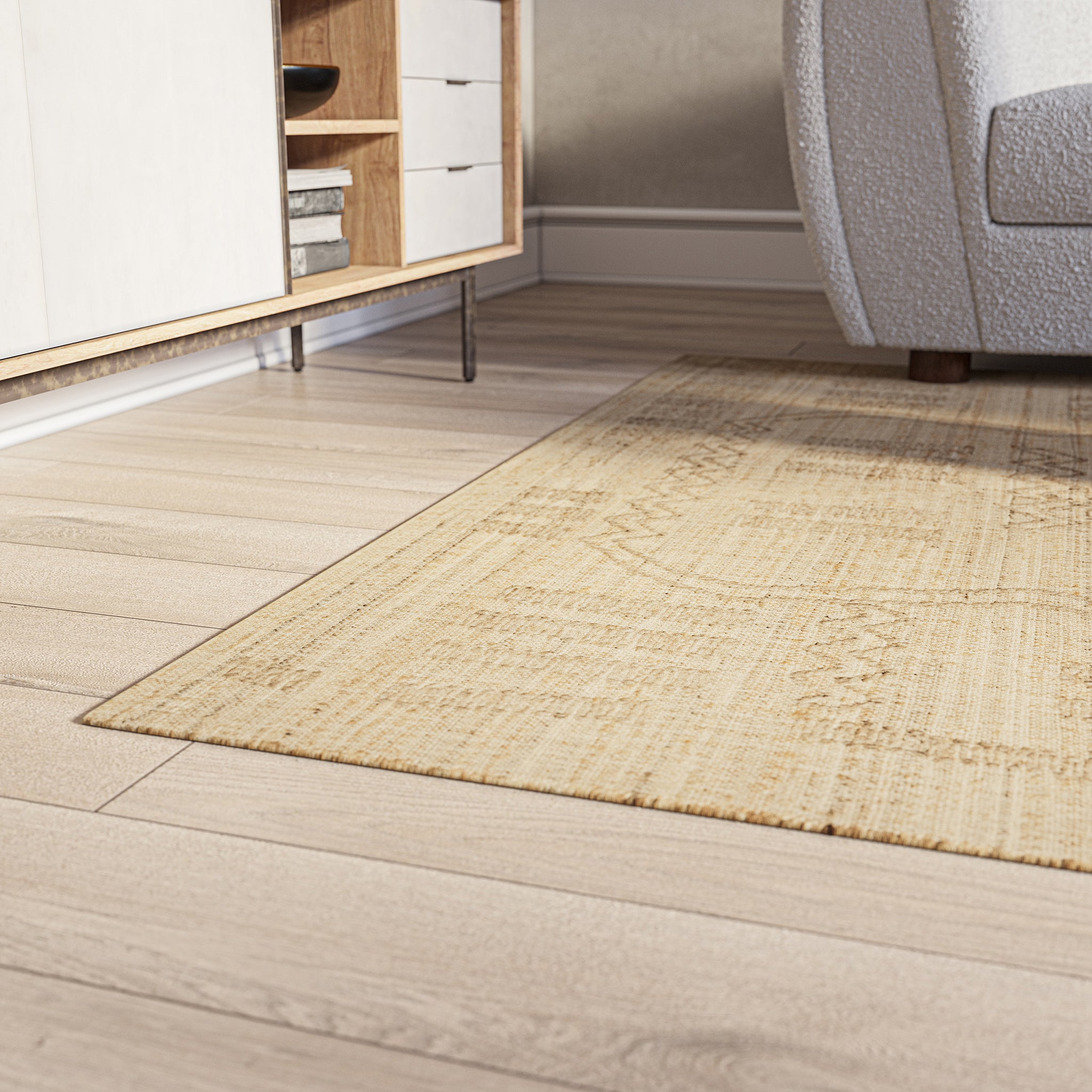 With a reverence for symmetry and simple geometric shapes, the Argan Collection was inspired by traditional African mud cloth patterns. Made from a handwoven combination of jute and wool, each rug possesses a perfectly imperfect look. The evidence of the maker infuses each rug style with custom textures and variations that are finished with a raised wool topstitch.