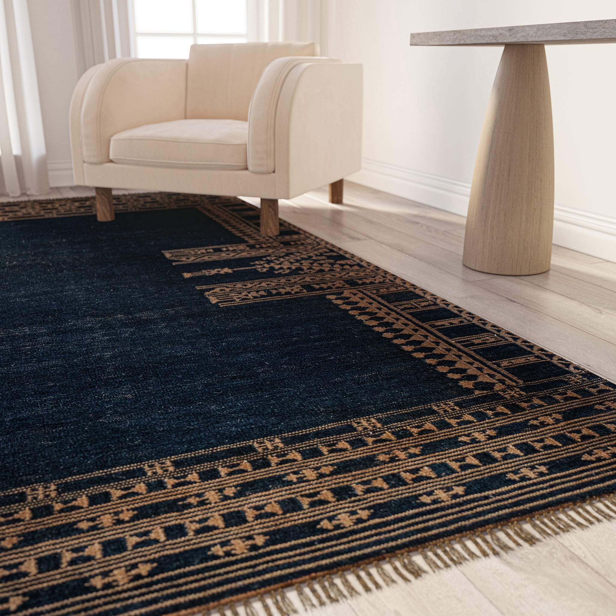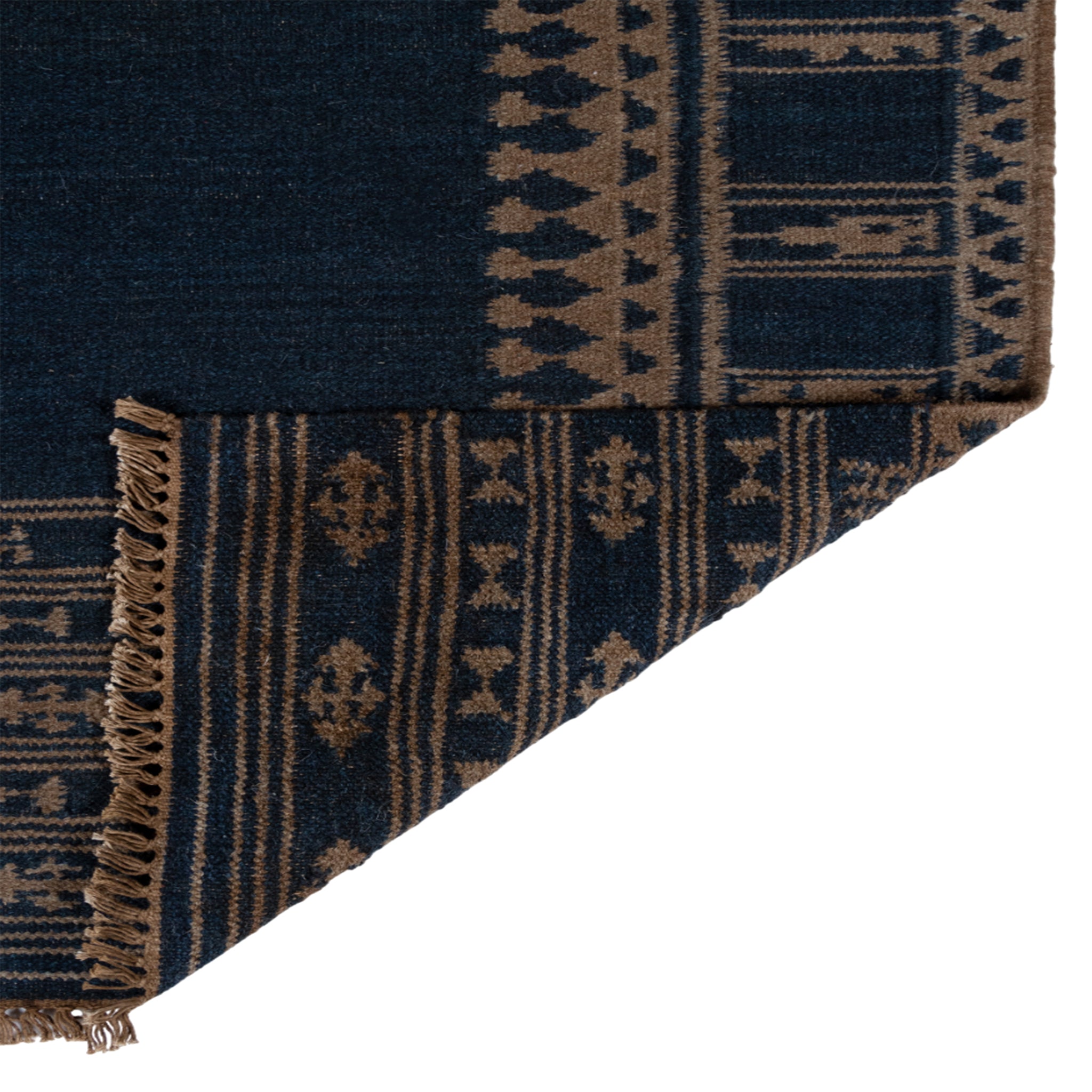 Inspired by everything from Shibori, Scandinavian flatweaves, and a myriad of other hand-dyed textiles, the Duar Collection has a rich sense of history in its patterns. Space dyed, you'll see color undulation in each style, ranging from deep indigo to almost black. Each pattern, from micro dashes to broad sweeping stripes, creates a sense of fluidity and motion within the rug.