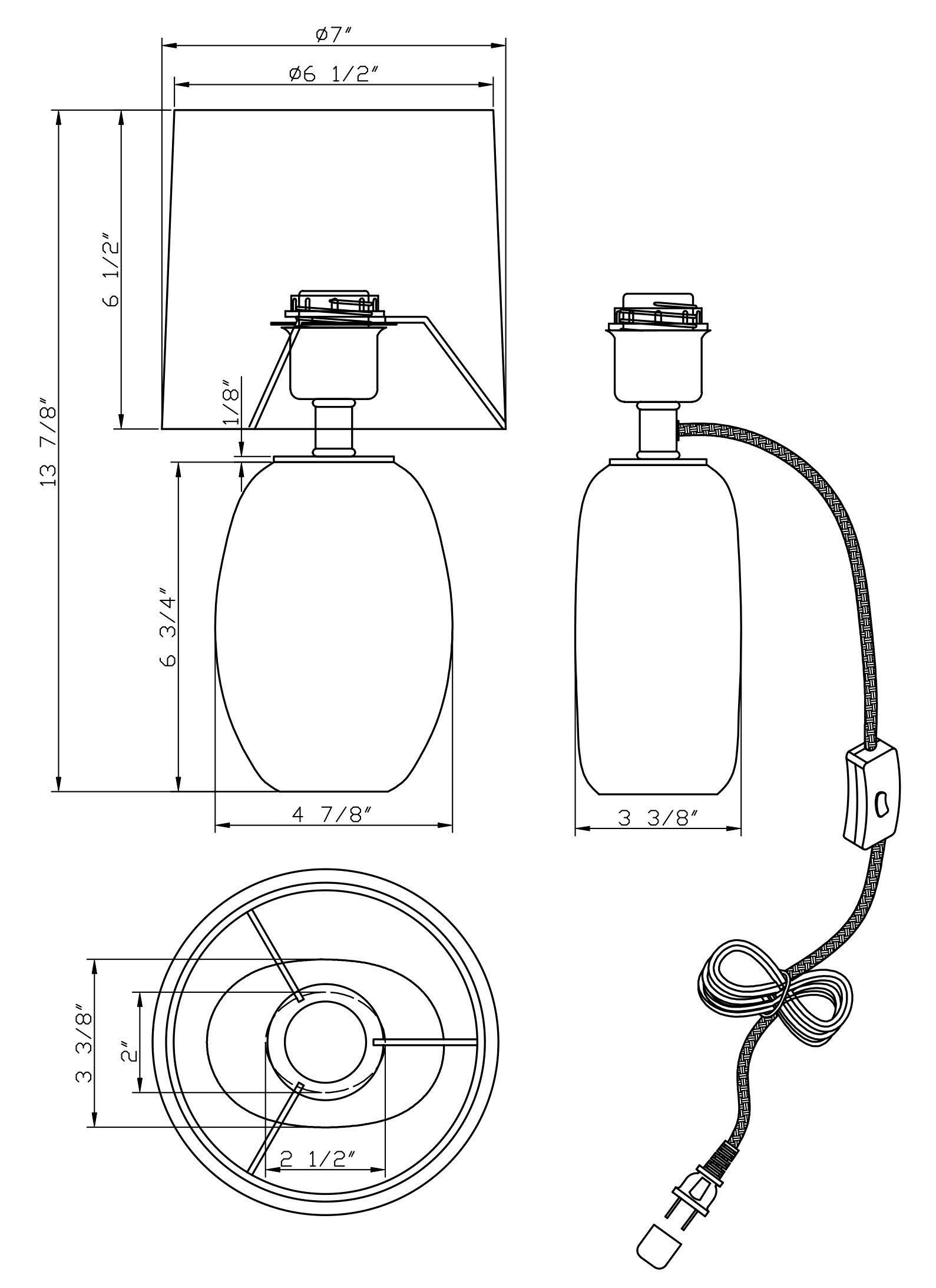 NOTE: cloth cord comes out of socket, on/off switch on cord
