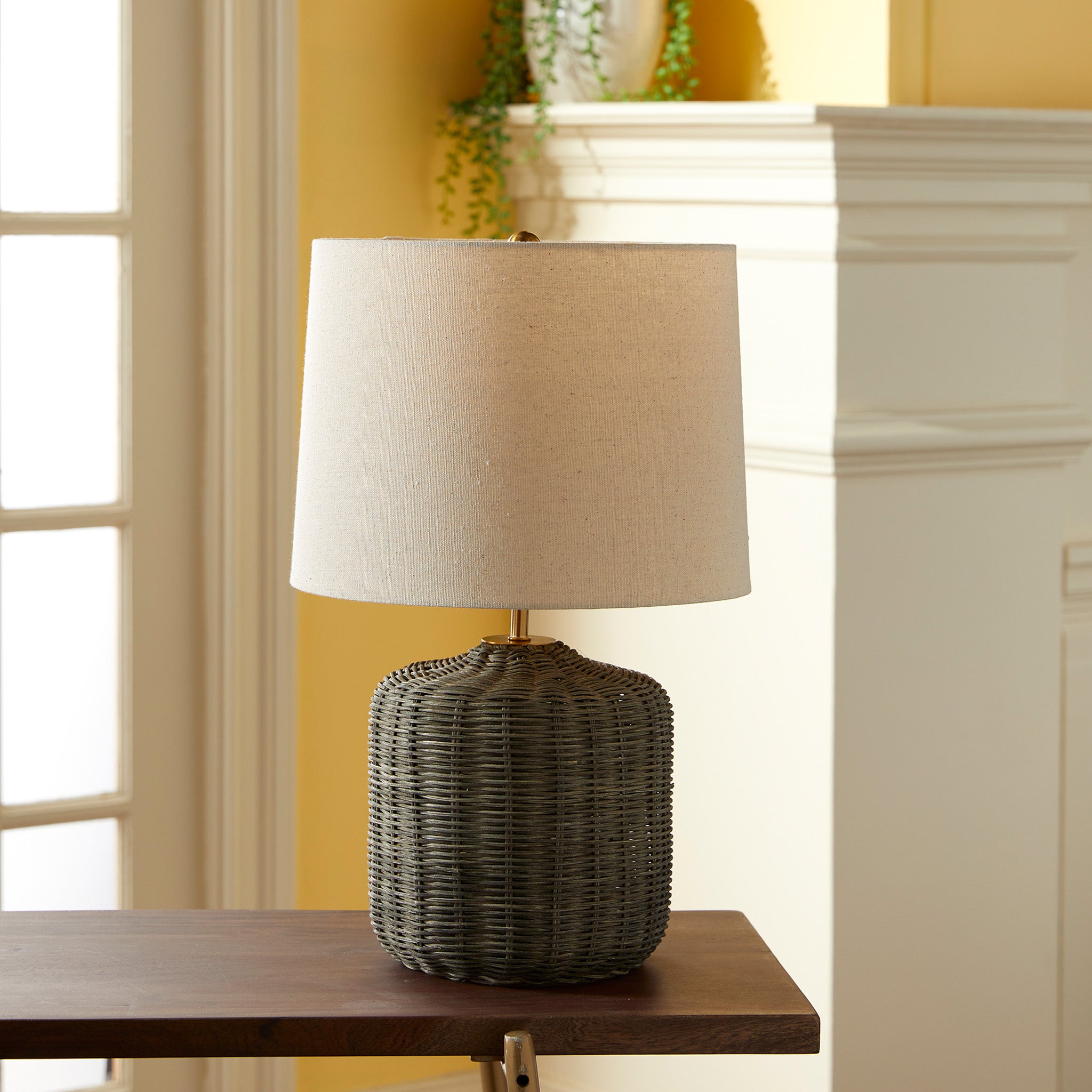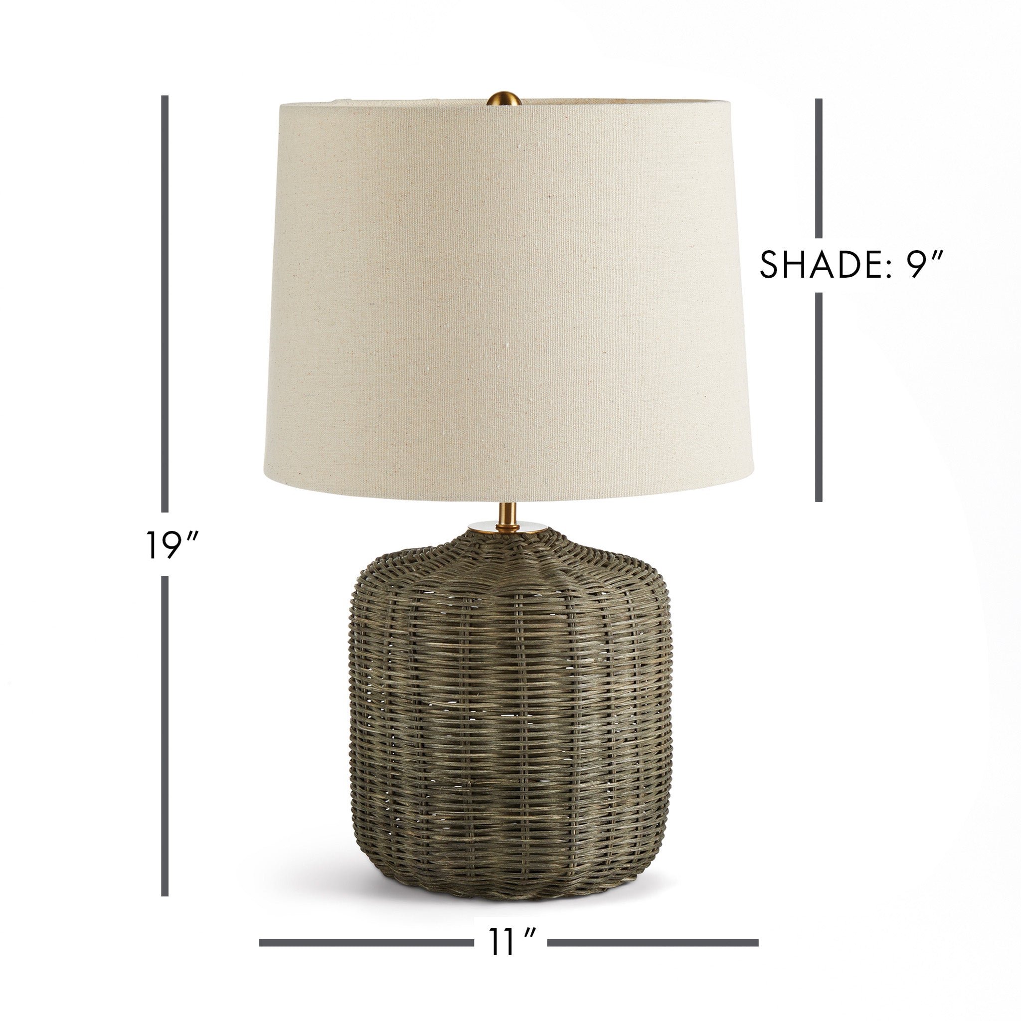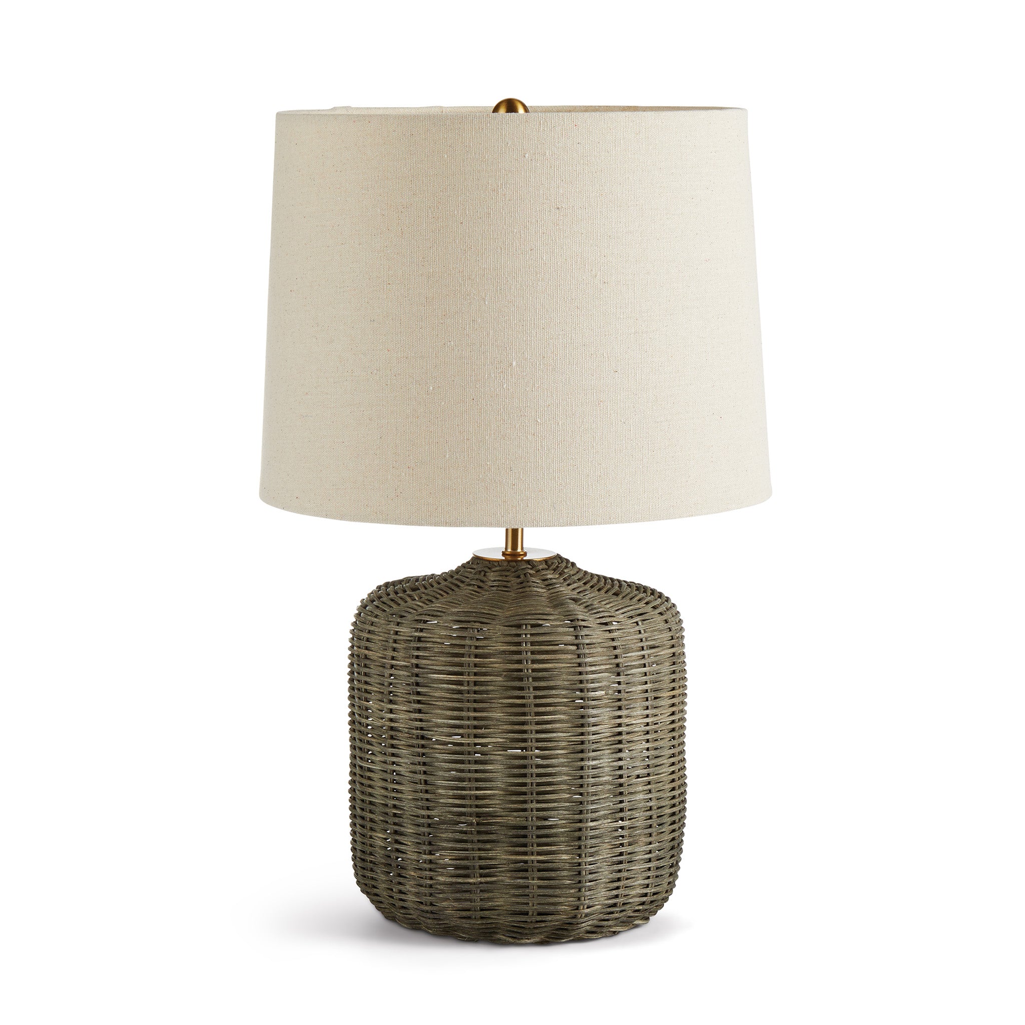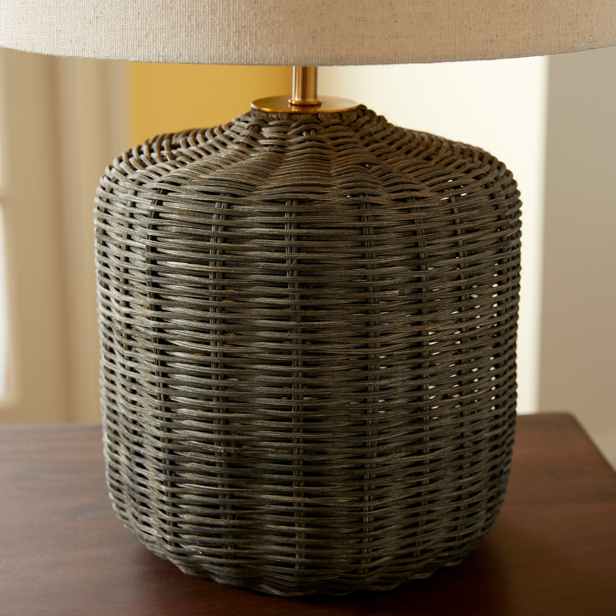 In a tight, rattan weave, the Melissa Table Lamp adds a warm organic element with its brown tones. With a beige shade that softly filters the light and elegant brass finial, the lamp works well in both modern and classic neutral spaces. Max wattage: 60W