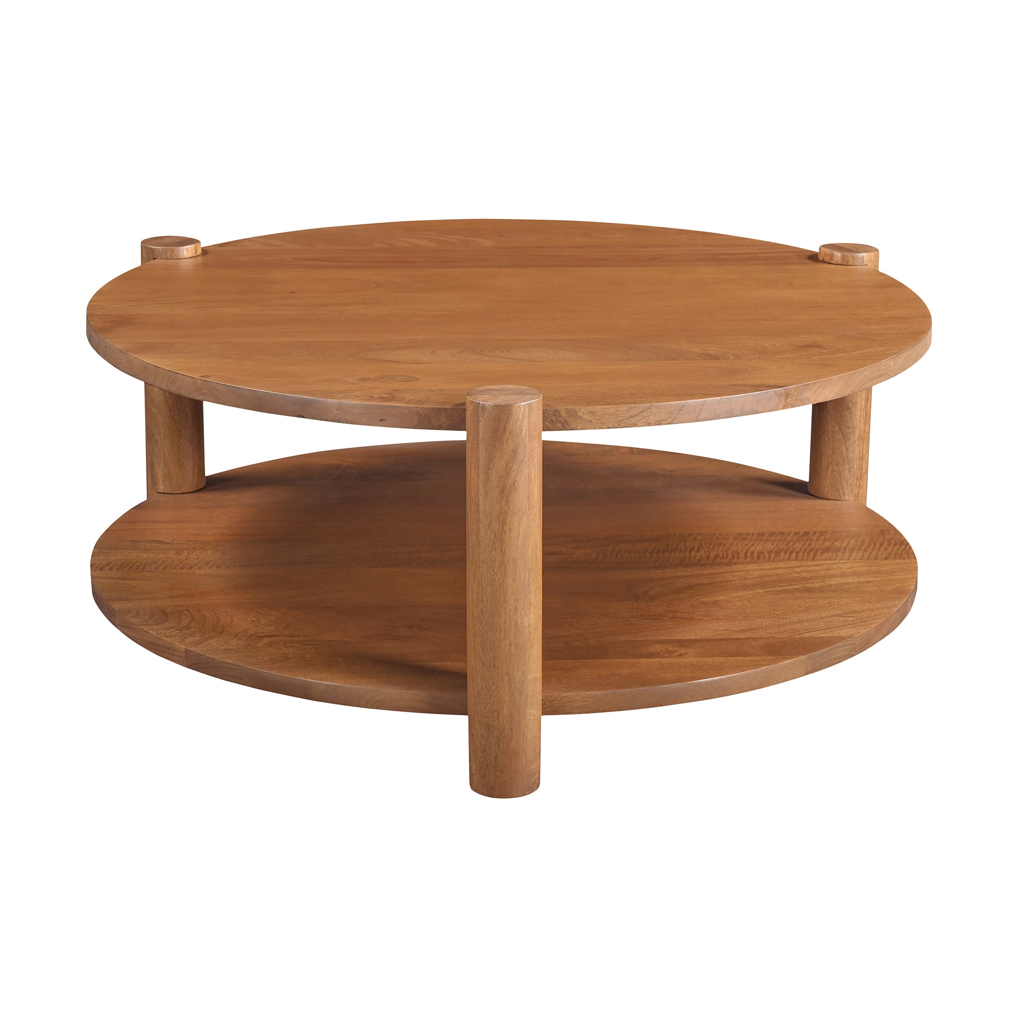 The Christopher coffee table brings a vintage appeal and timeless charm, as its solid mango wood construction and warm brown finish add a rustic elegance. The cylindrical legs and meticulous joinery details are artfully incorporated alongside open storage. This piece effortlessly brings a sense of airiness and refreshing lightness to any space.