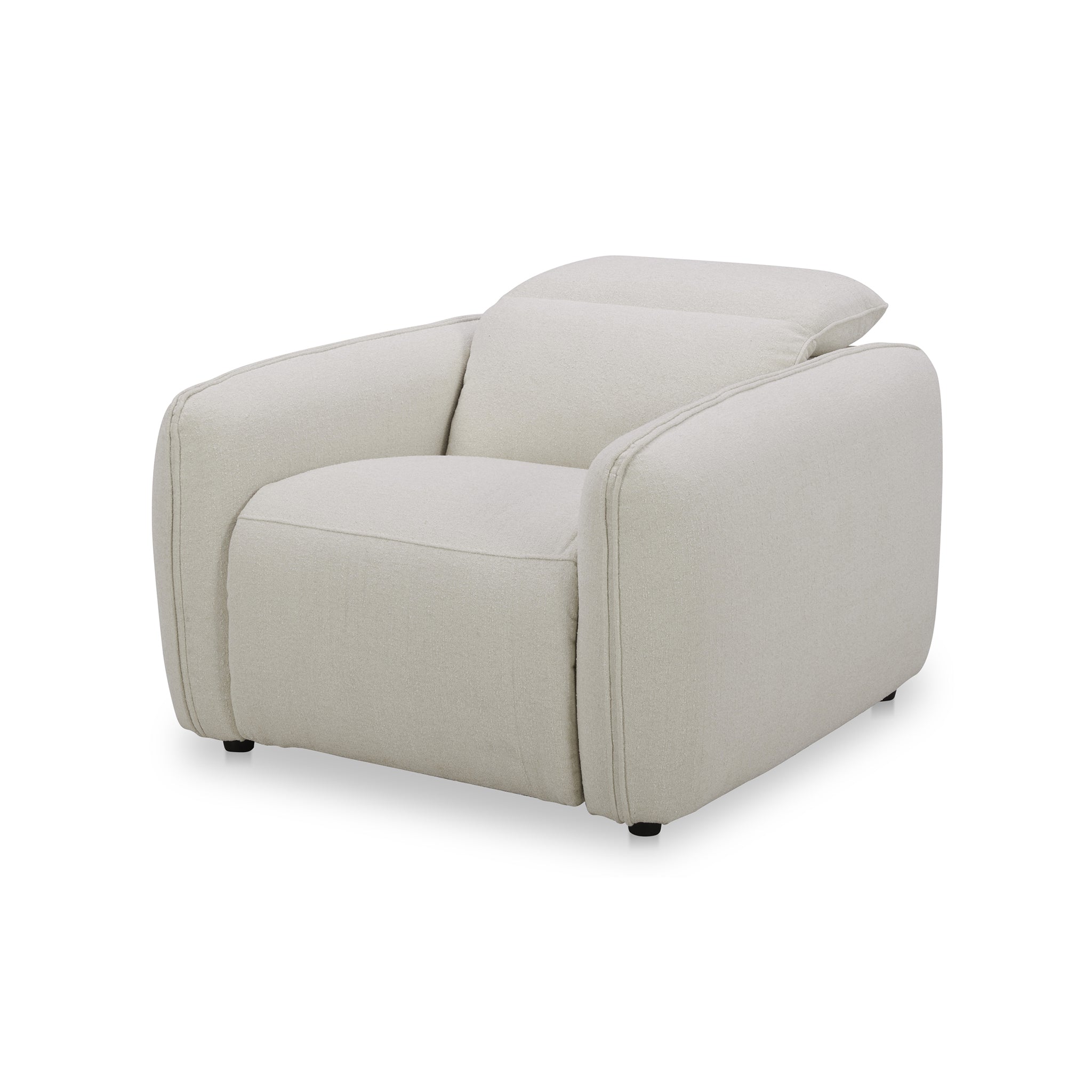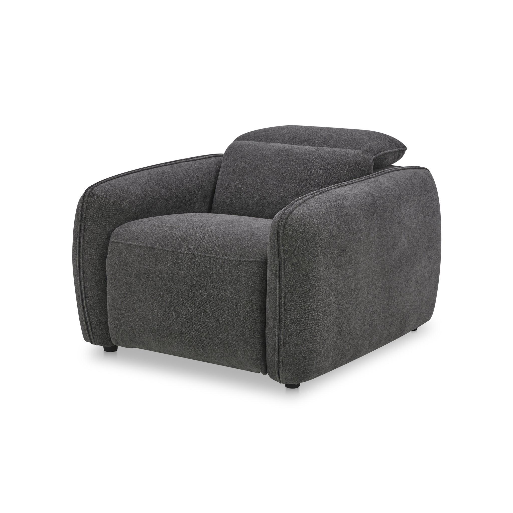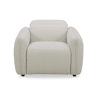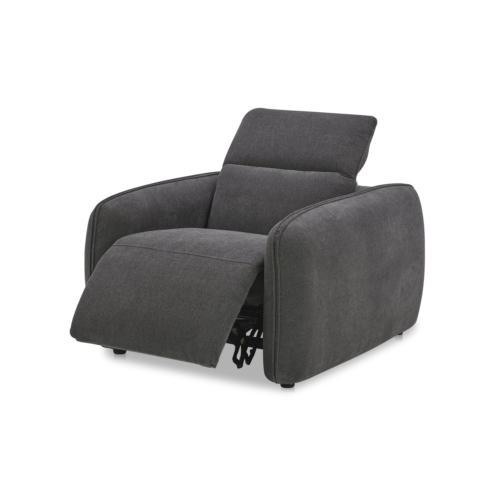 Designed with rounded edges and a plush form, the Delphine Power Recliner chair secures a sumptuous embrace with its inviting seat. Soft-to-the touch fabric combines with the feather and fiber seat to provide an added layer of plushness. For ultimate in ease and relaxation, this power recliner is equipped with a power motion footrest and headrest that allows for custom seating positions. Plus, the control buttons are discreetly located on the inside arm of the chair.