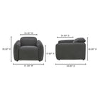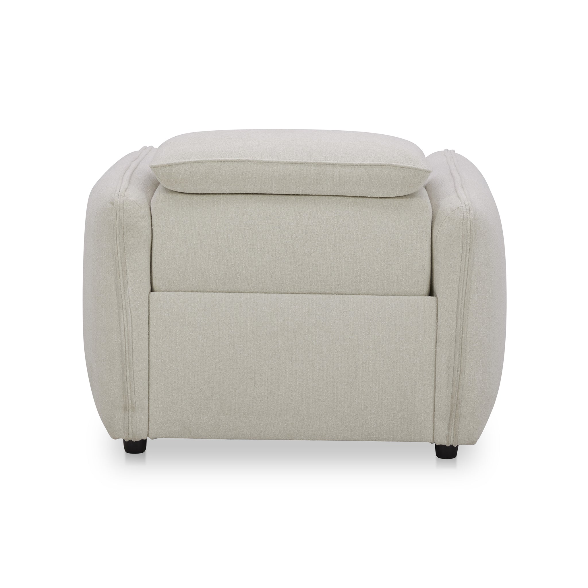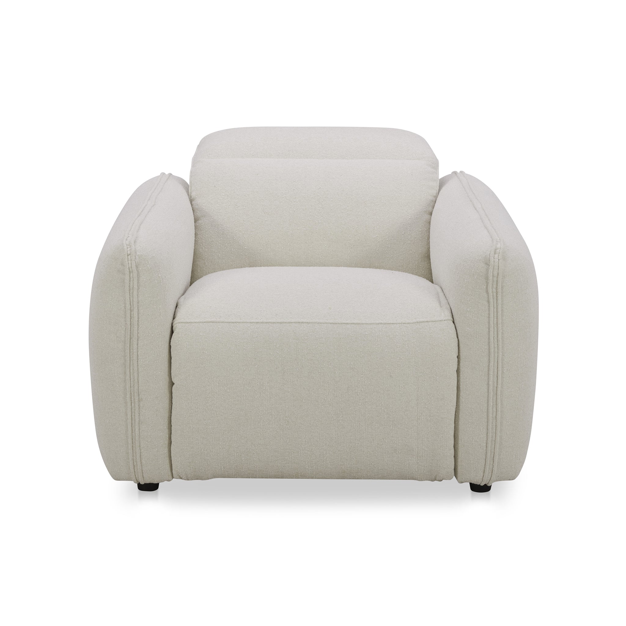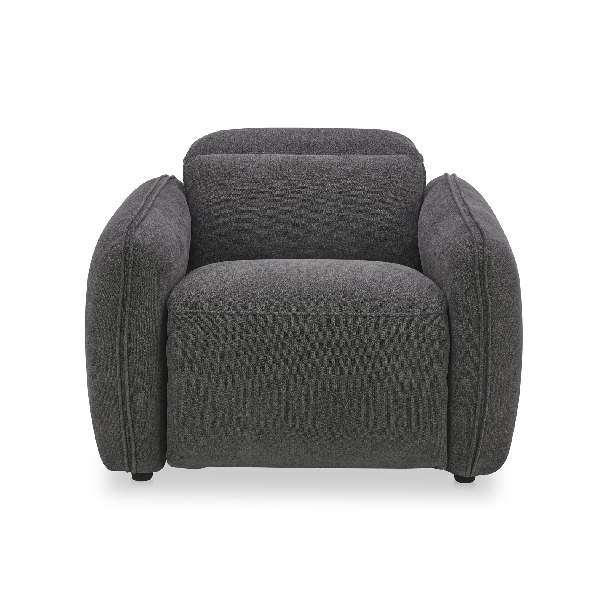 Designed with rounded edges and a plush form, the Delphine Power Recliner chair secures a sumptuous embrace with its inviting seat. Soft-to-the touch fabric combines with the feather and fiber seat to provide an added layer of plushness. For ultimate in ease and relaxation, this power recliner is equipped with a power motion footrest and headrest that allows for custom seating positions. Plus, the control buttons are discreetly located on the inside arm of the chair.