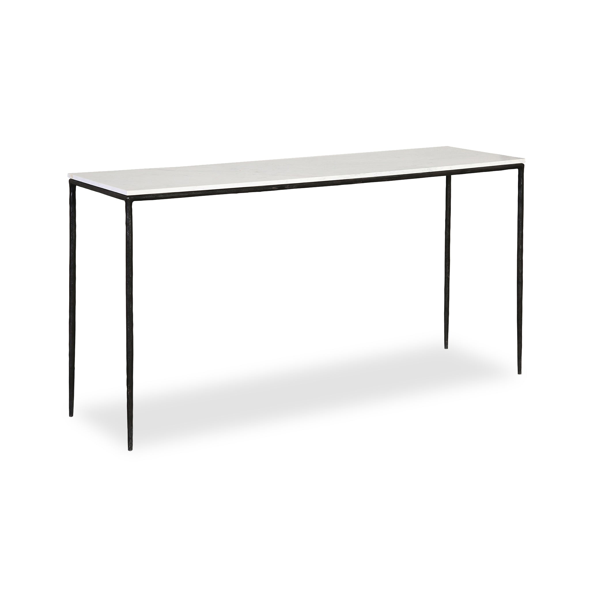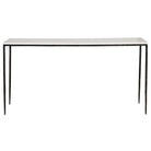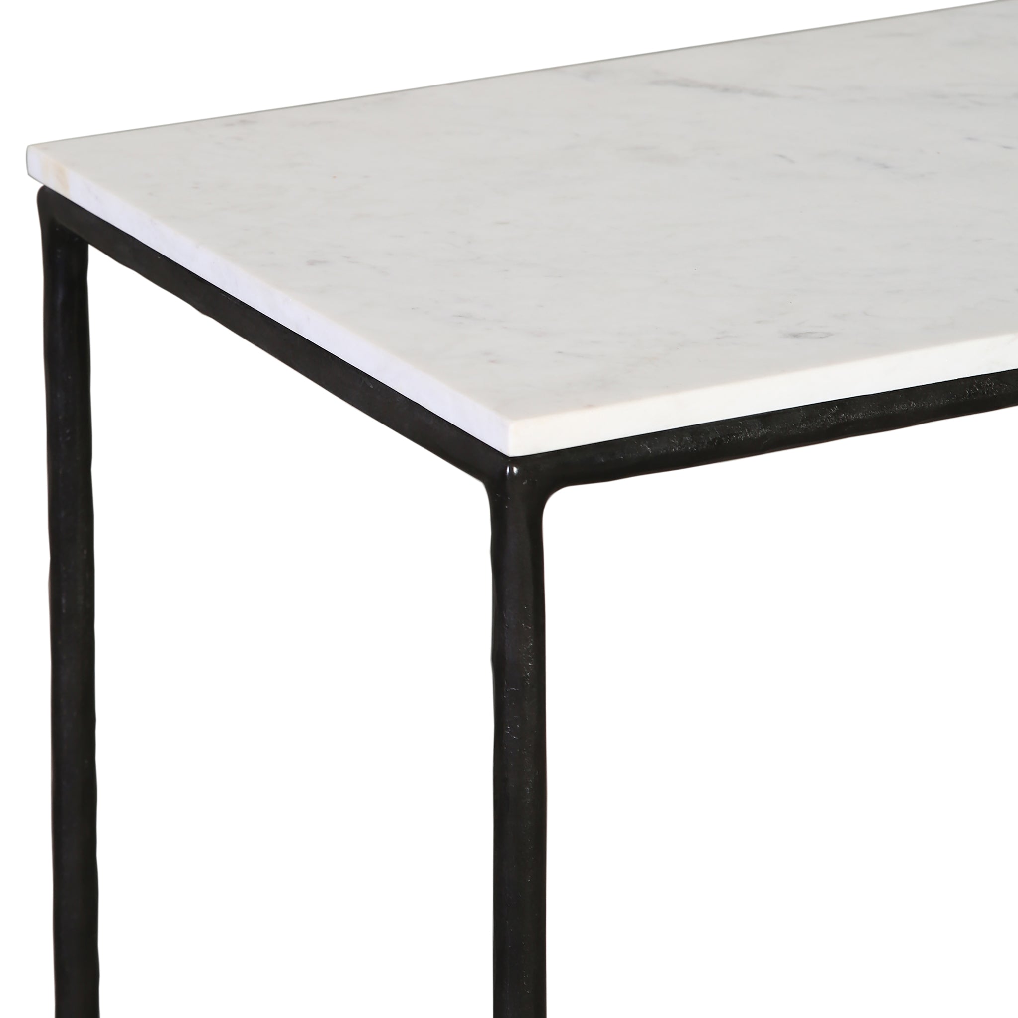 Discover the Marasco Console Table, a stunning blend of elegance and modernity. Crafted to perfection, each piece may display unique characteristics inherent to white marble top, such as chips, dents, or variations in pattern, adding to its individual charm. The sleek black iron finish complements the marble beautifully, creating a striking visual contrast. Whether gracing a hallway, entryway, or living space, this console table makes a statement of sophistication.