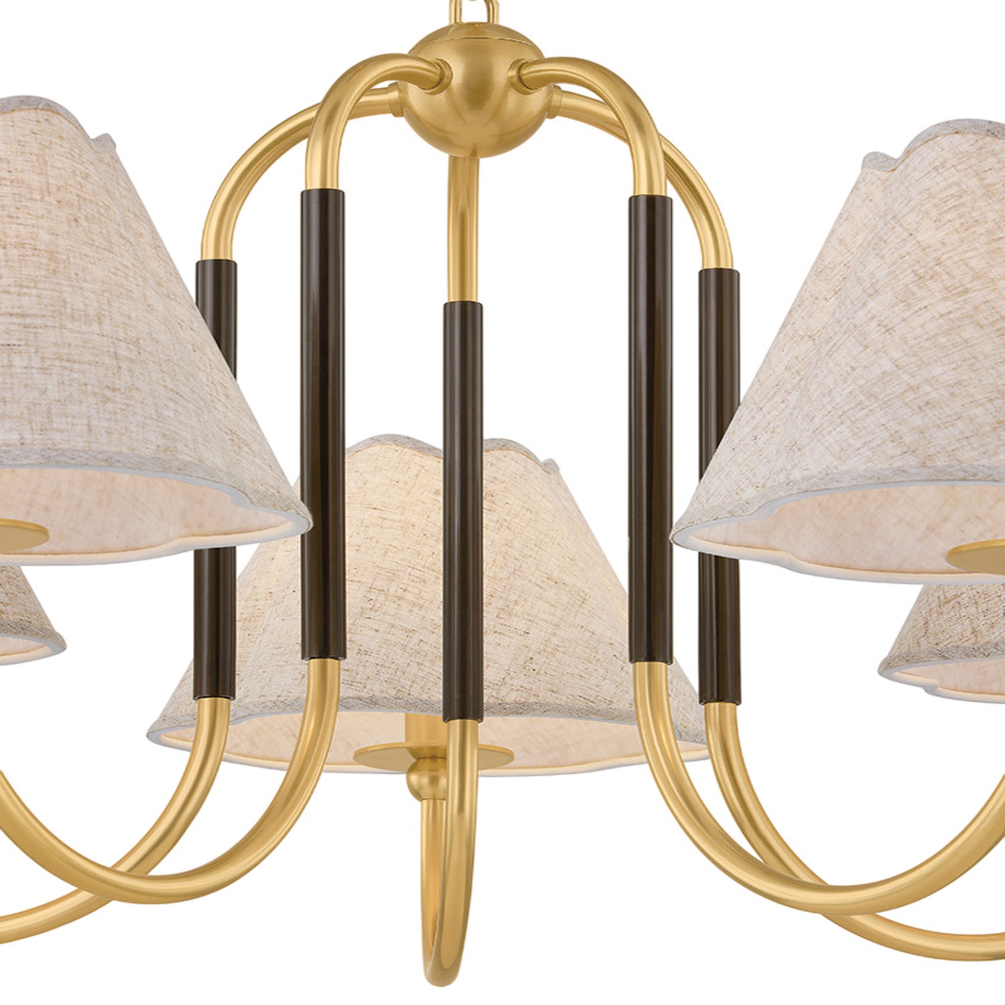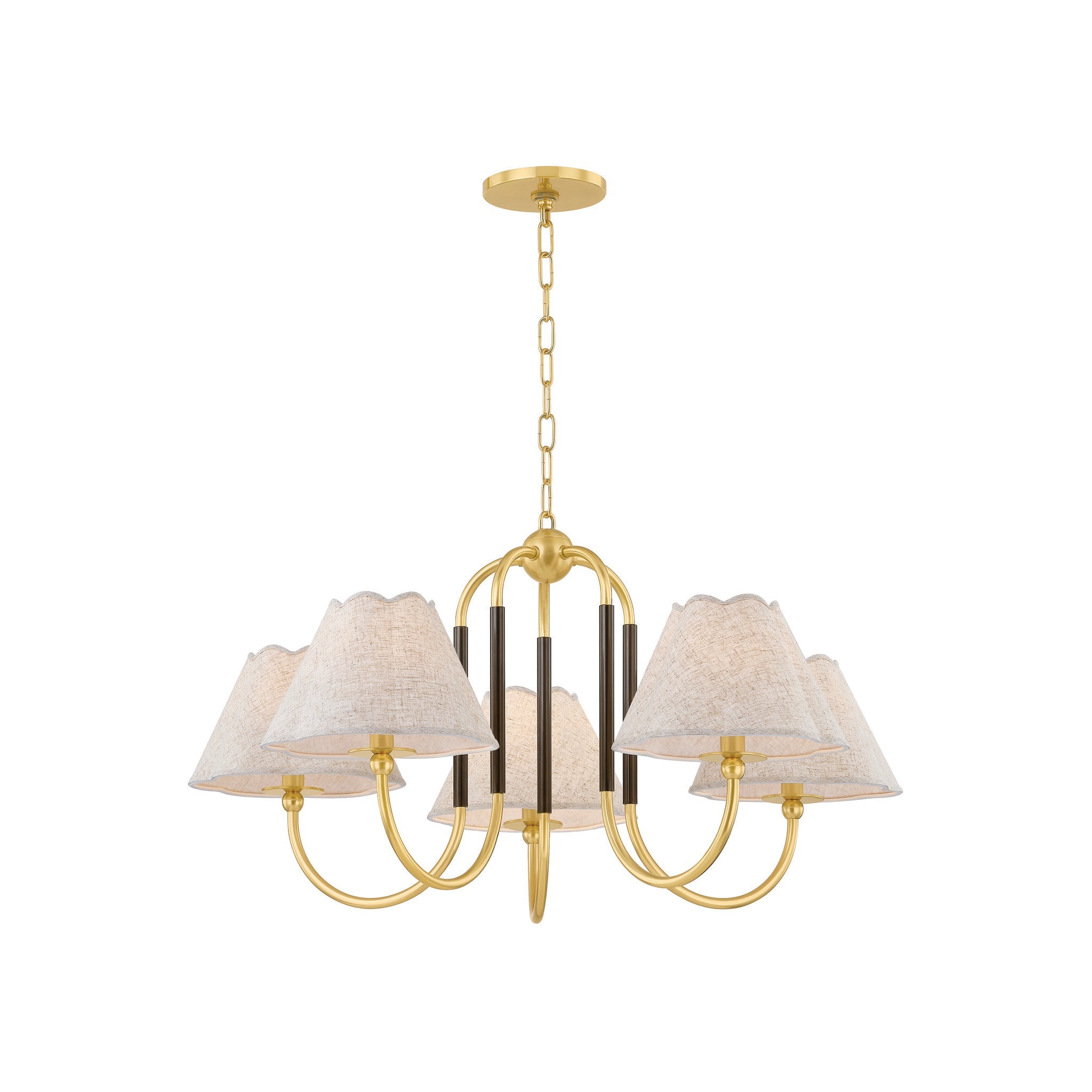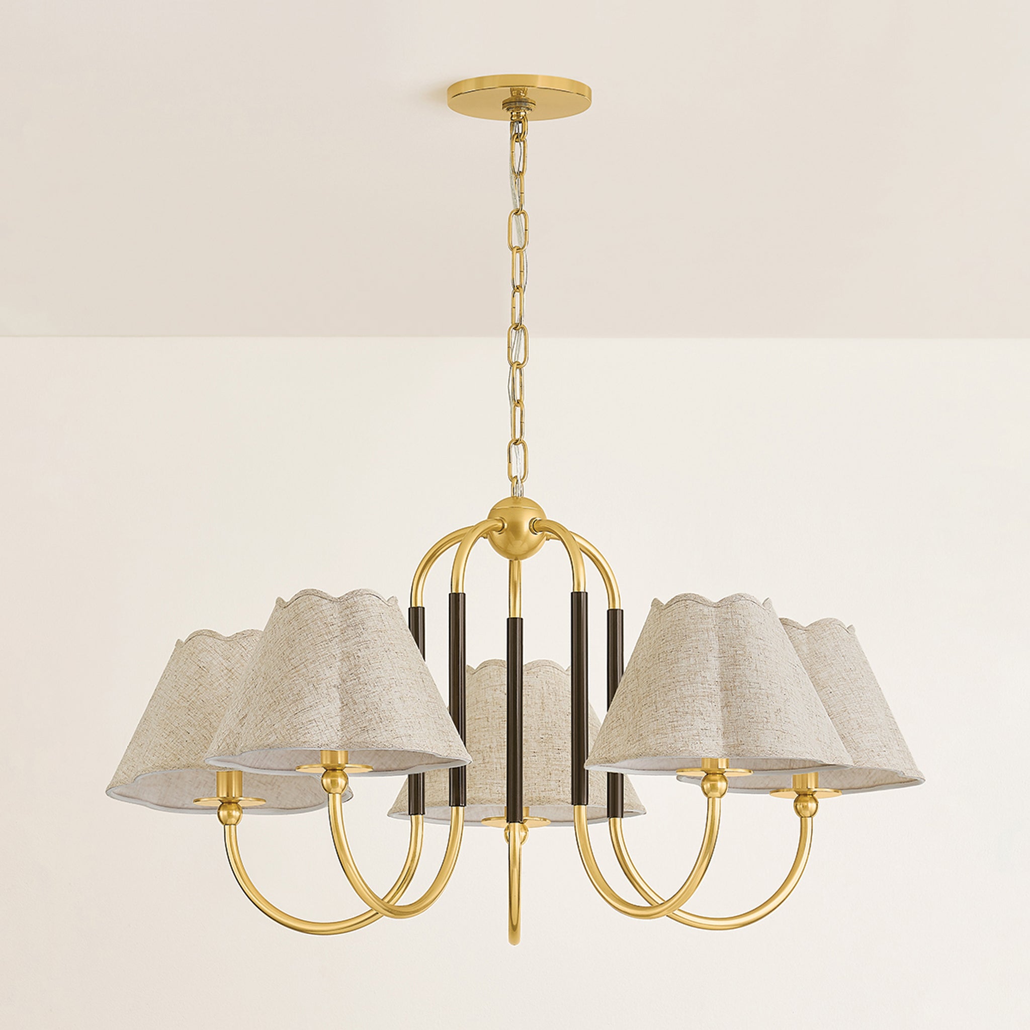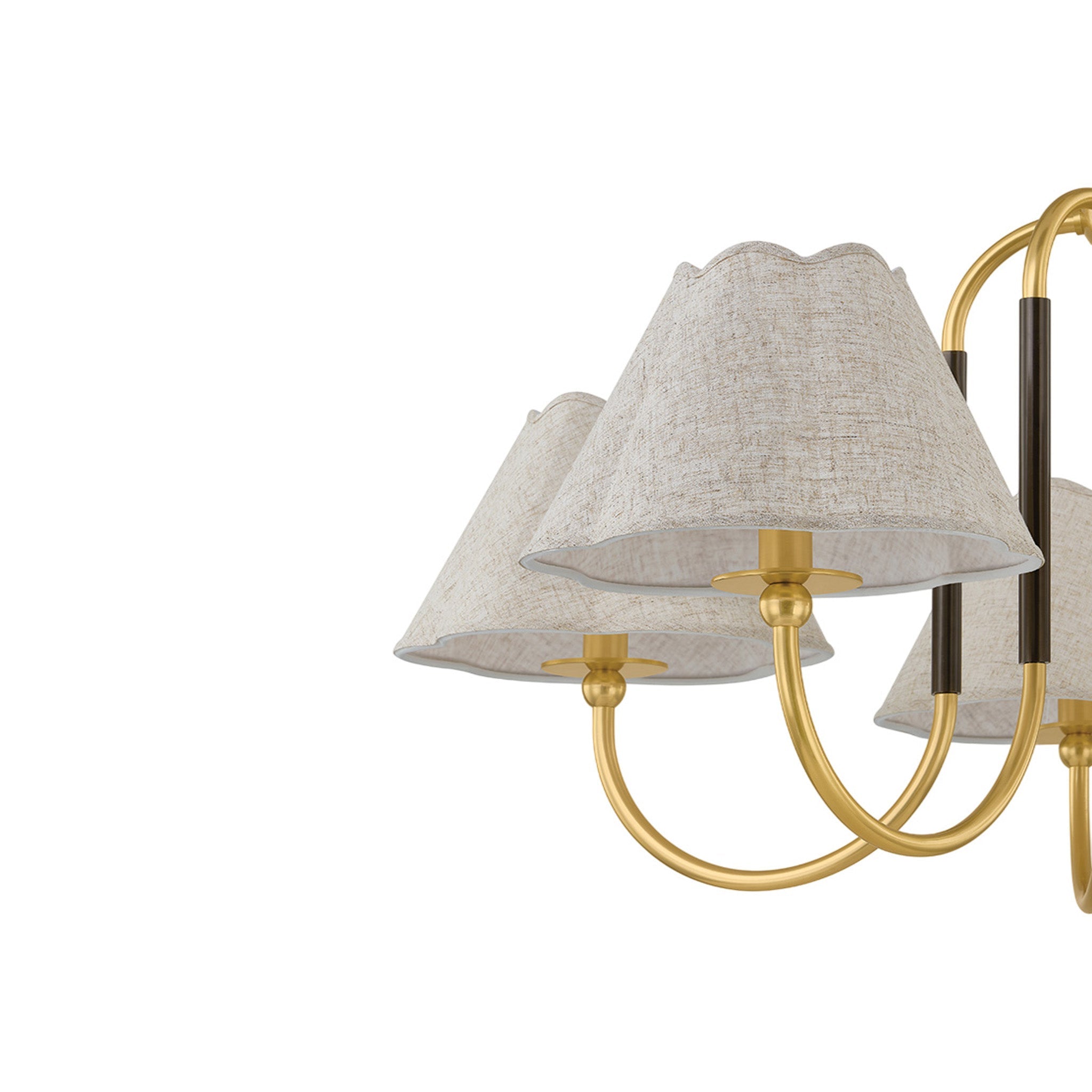 The Janie family updates a traditional framework with contemporary silhouettes and an unexpected mix of materials, making it ideal for both classic and modern spaces. Scalloped shades cast a softly diffused light, creating a subtle, curved shadow. The contrasting True Bronze sleeve against the Aged Brass frame accentuates Janie's fresh, re-imagined form. Designed to be layered together, these fixtures are designed in honor of Mandy's beloved family of in-laws. Mandy Cheng for Mitzi