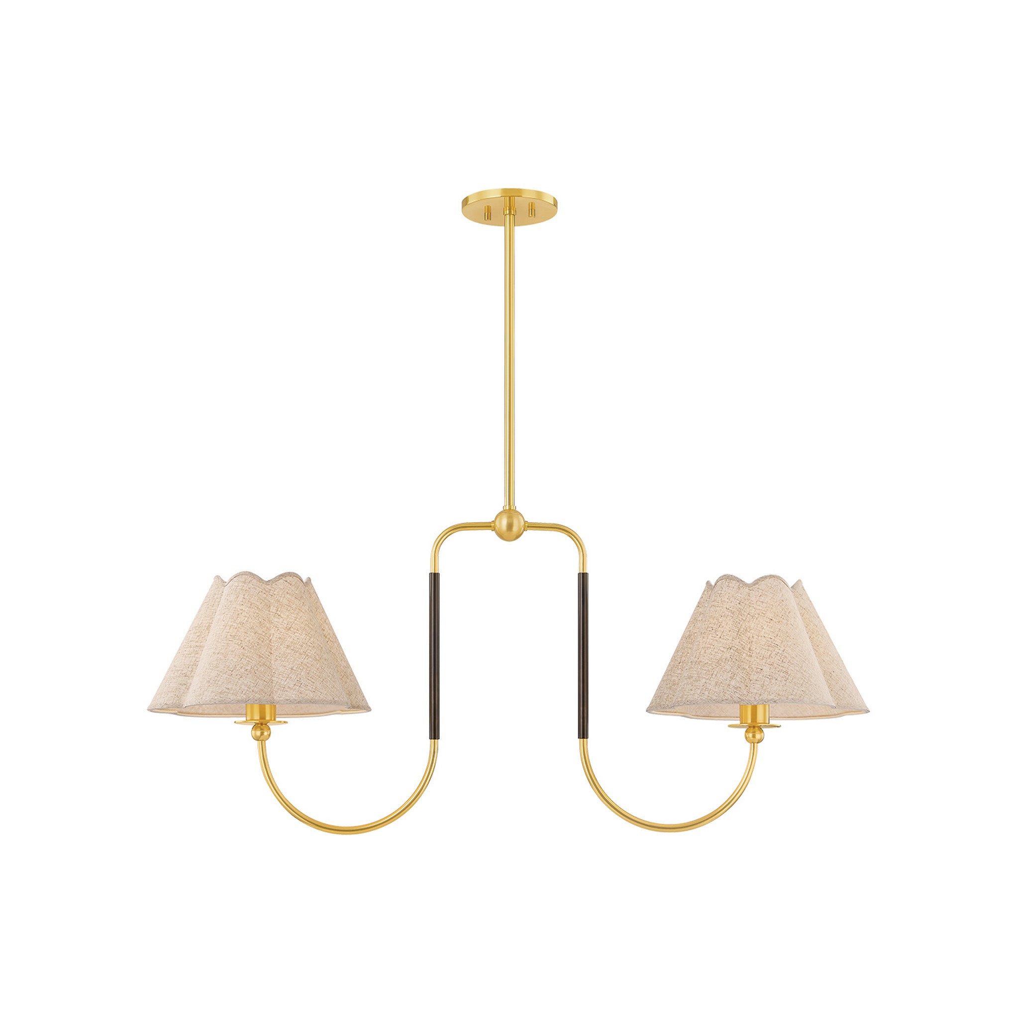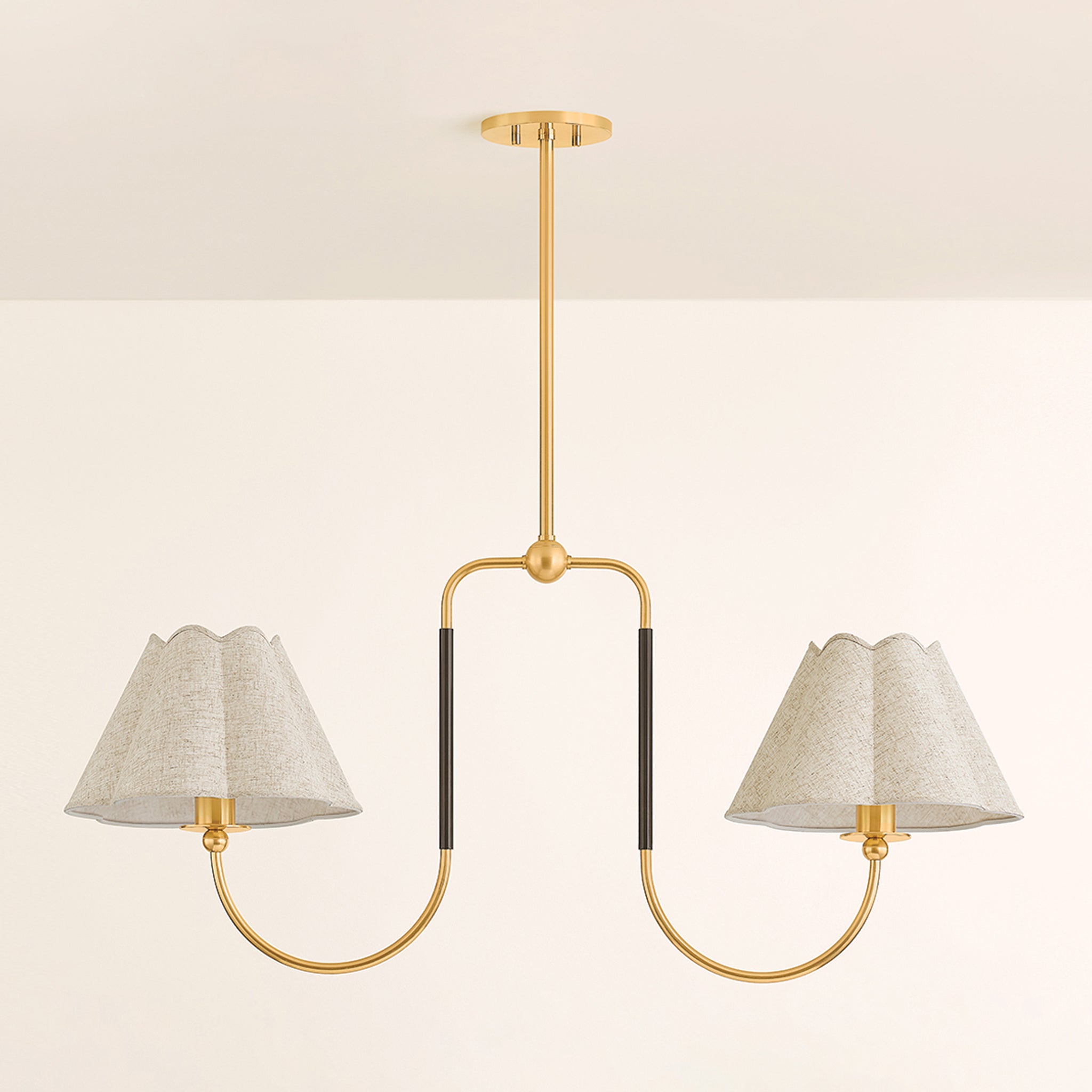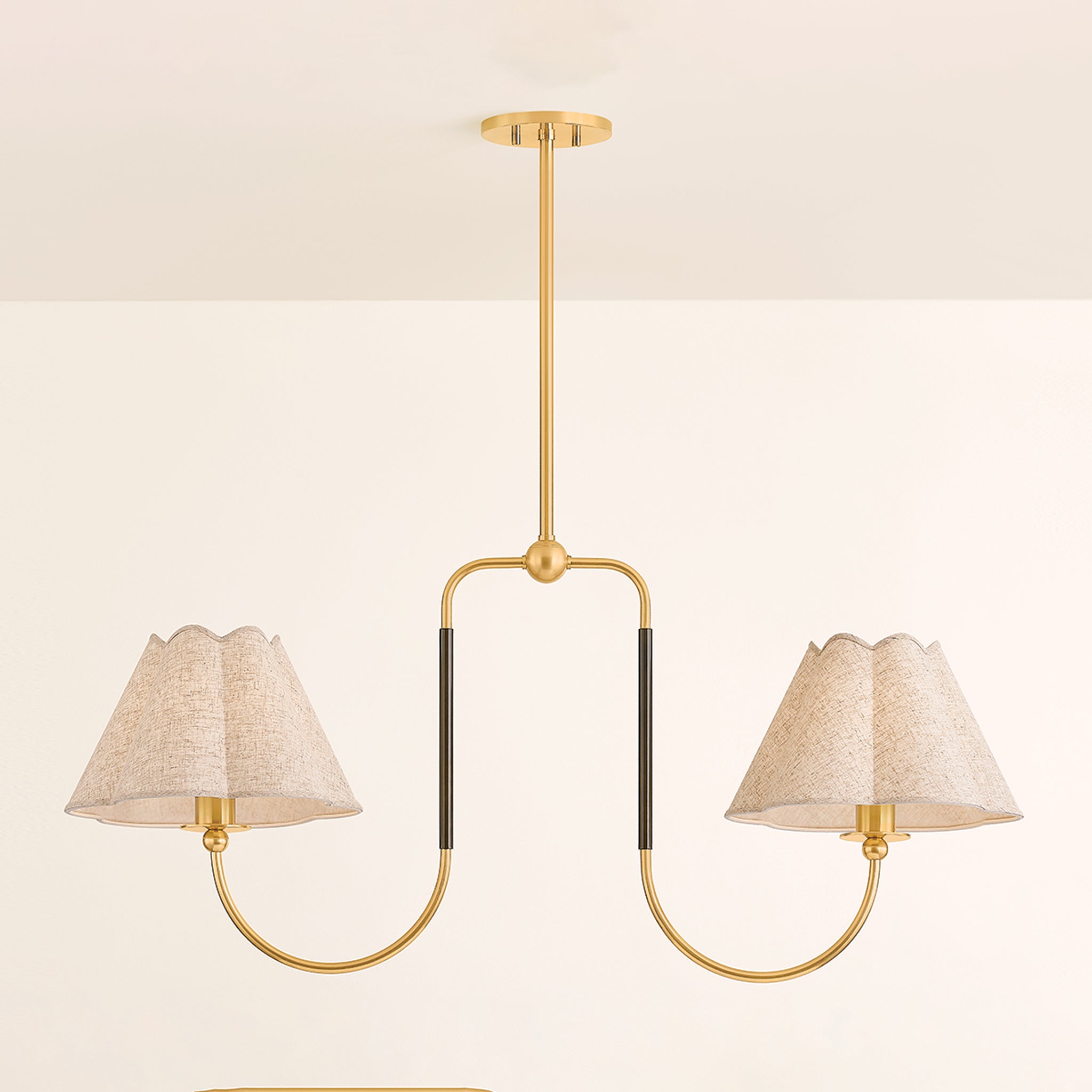 The Janie family updates a traditional framework with contemporary silhouettes and an unexpected mix of materials, making it ideal for both classic and modern spaces. Scalloped shades cast a softly diffused light, creating a subtle, curved shadow. The contrasting True Bronze sleeve against the Aged Brass frame accentuates Janie's fresh, re-imagined form. Designed to be layered together, these fixtures are designed in honor of Mandy's beloved family of in-laws. Mandy Cheng for Mitzi