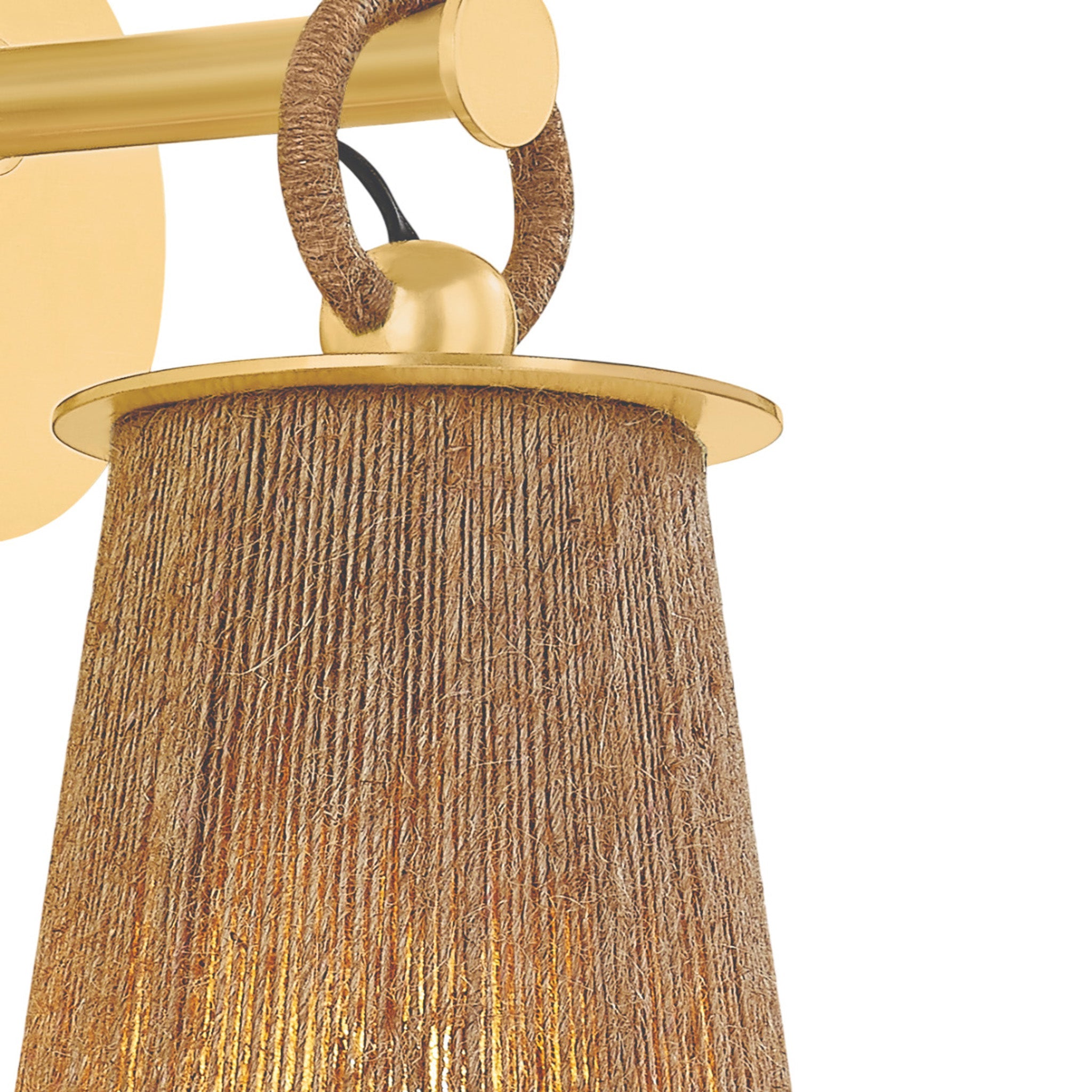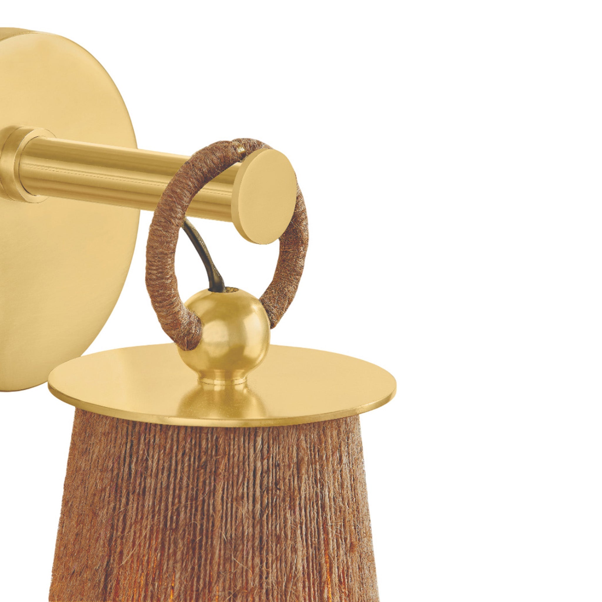 Named after one of Mandy's closest friends, Lauz merges earthy textures with understated elegance - qualities that resonate with both of them. The natural jute-wrapped shade and minimalist ring provide textural interest that balances the clean silhouette. The slight taper of the shade creates openings within the strings, emitting a soft glow that reflects off the Aged Brass finish of the frame. Mandy Cheng for Mitzi