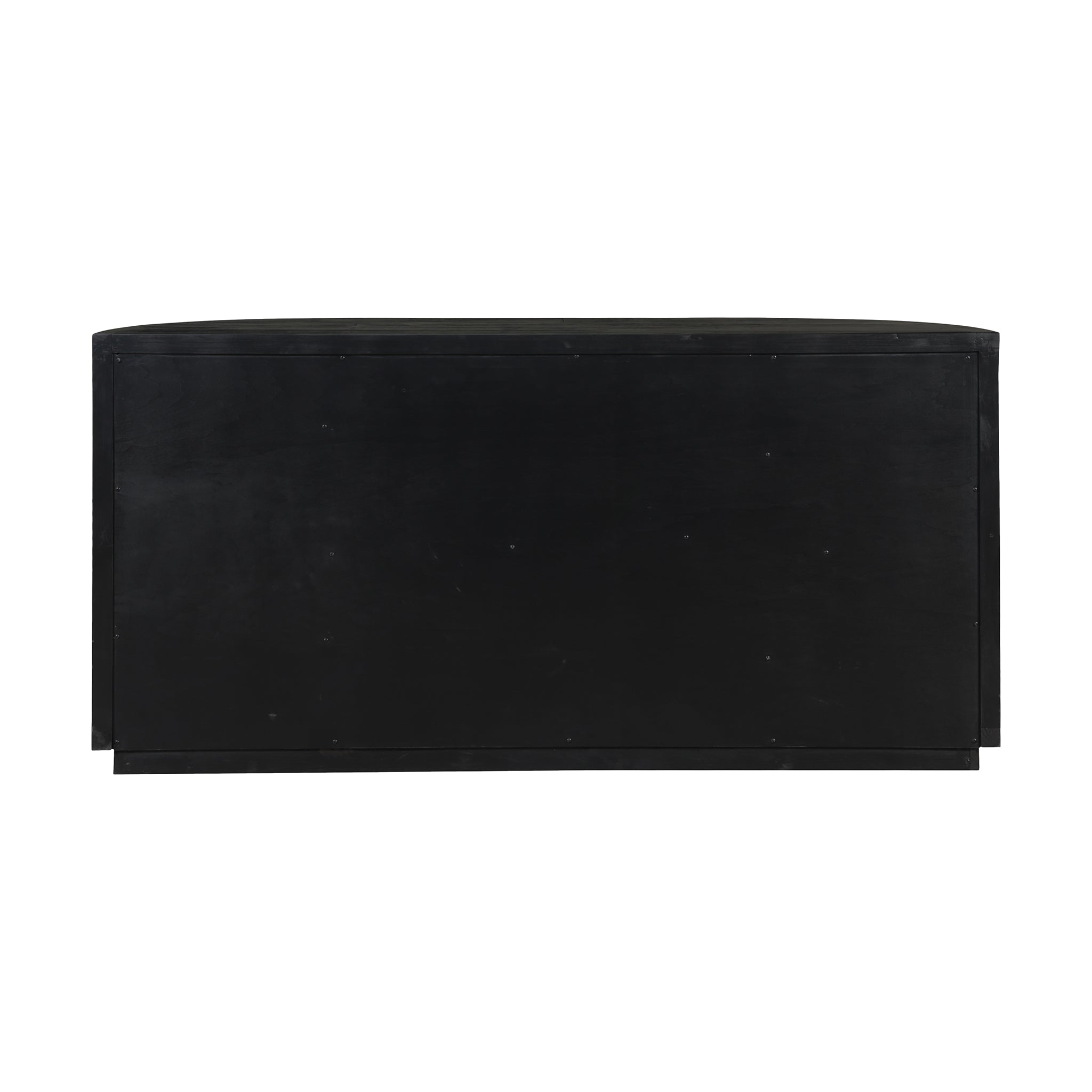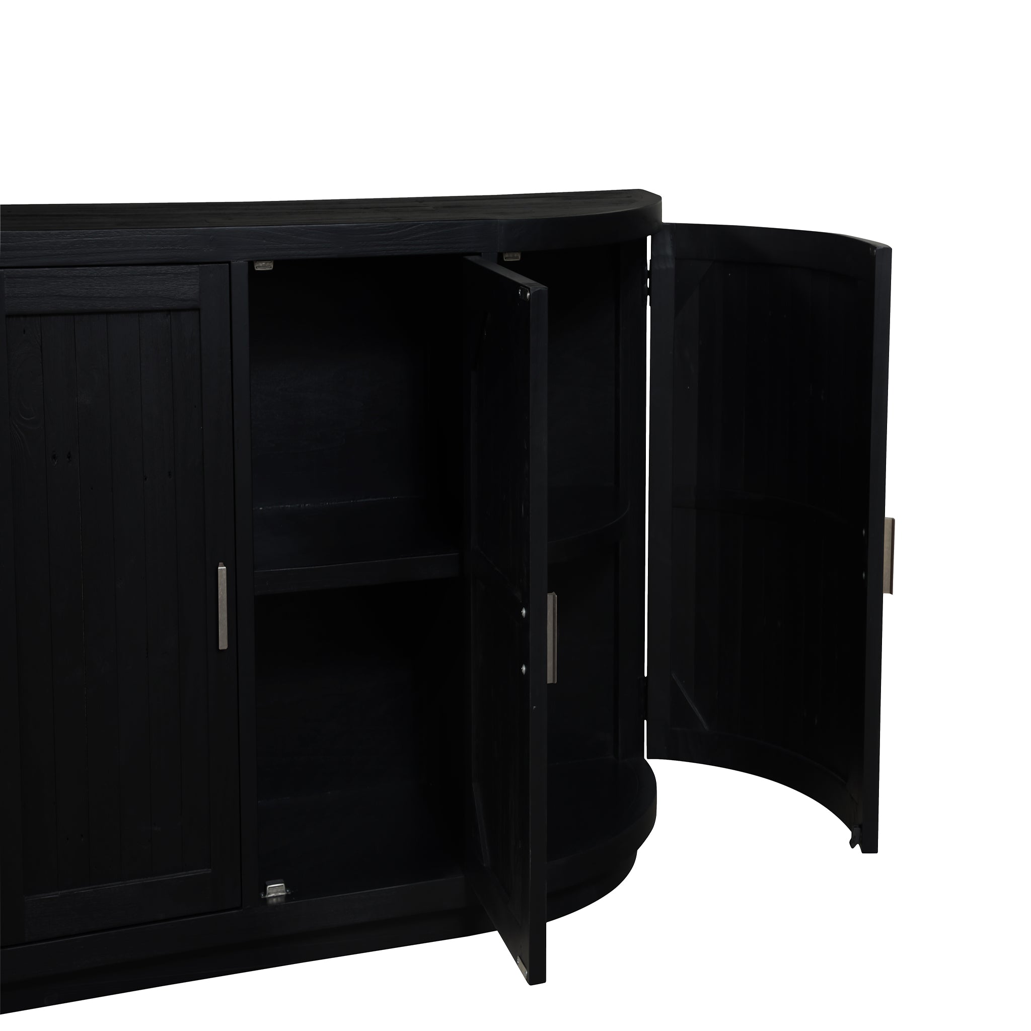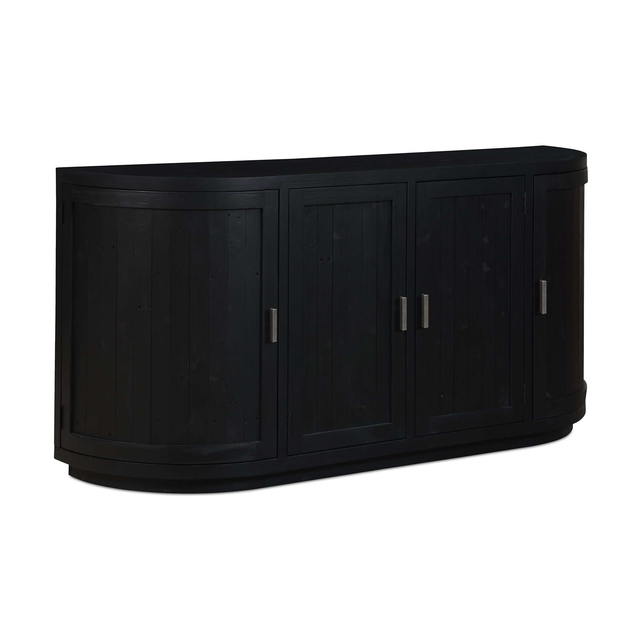 Rustic charm and contemporary design come together through reclaimed pine in the Carter sideboard. Featuring curved doors that soften its texture, its contemporary recessed base contrasts with the rustic wood, offering a modern silhouette ideal for transitional spaces. The simple handle detail accentuates the curved design, with generous storage inside for essentials. At a comfortable 35" height, it's designed for both functionality and style, fitting seamlessly into the dining area.