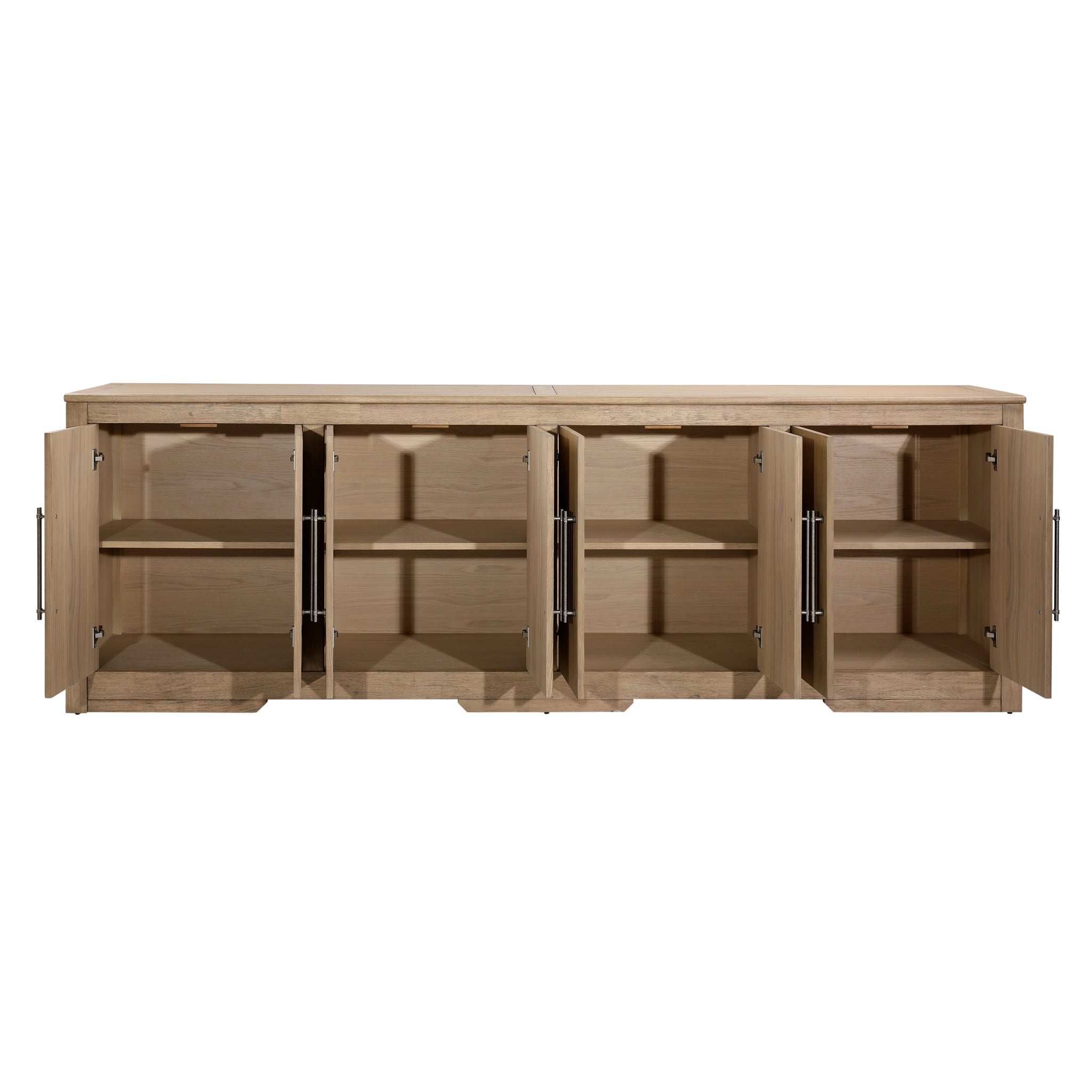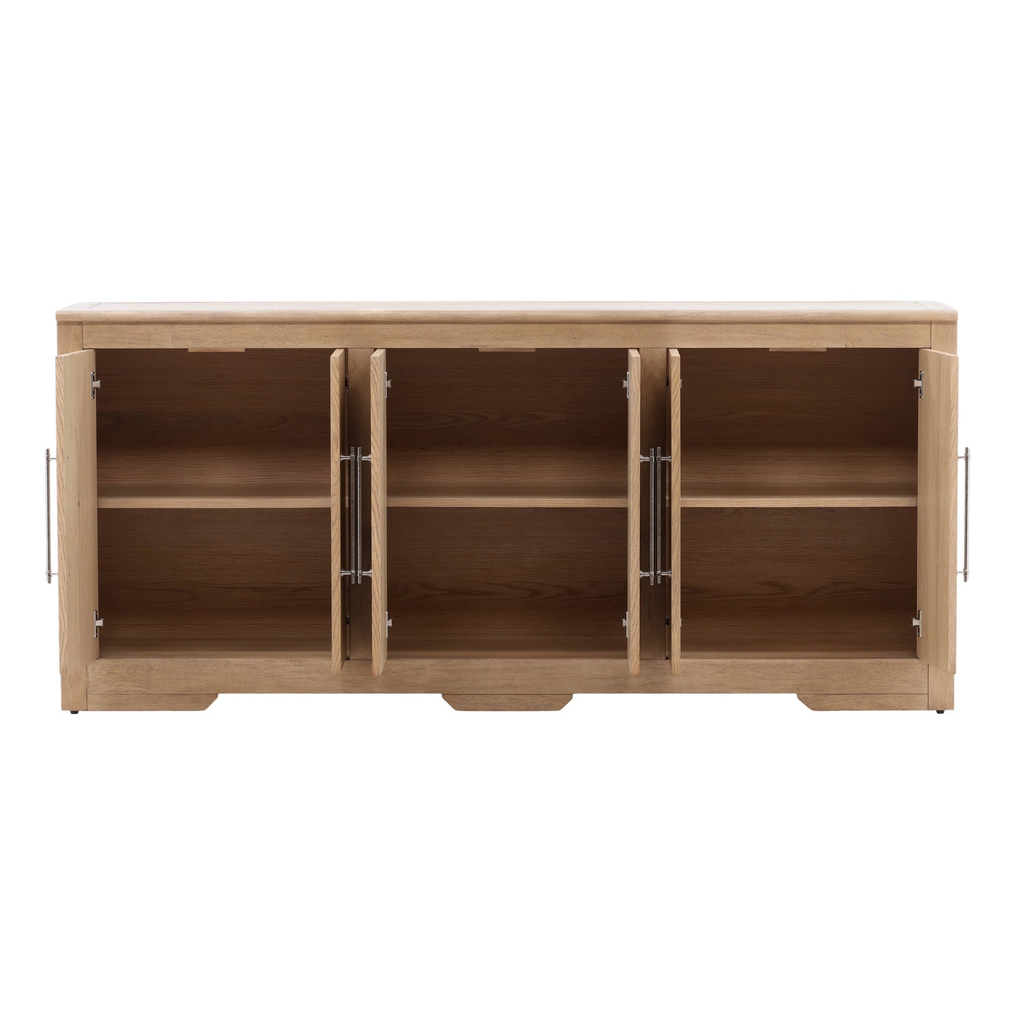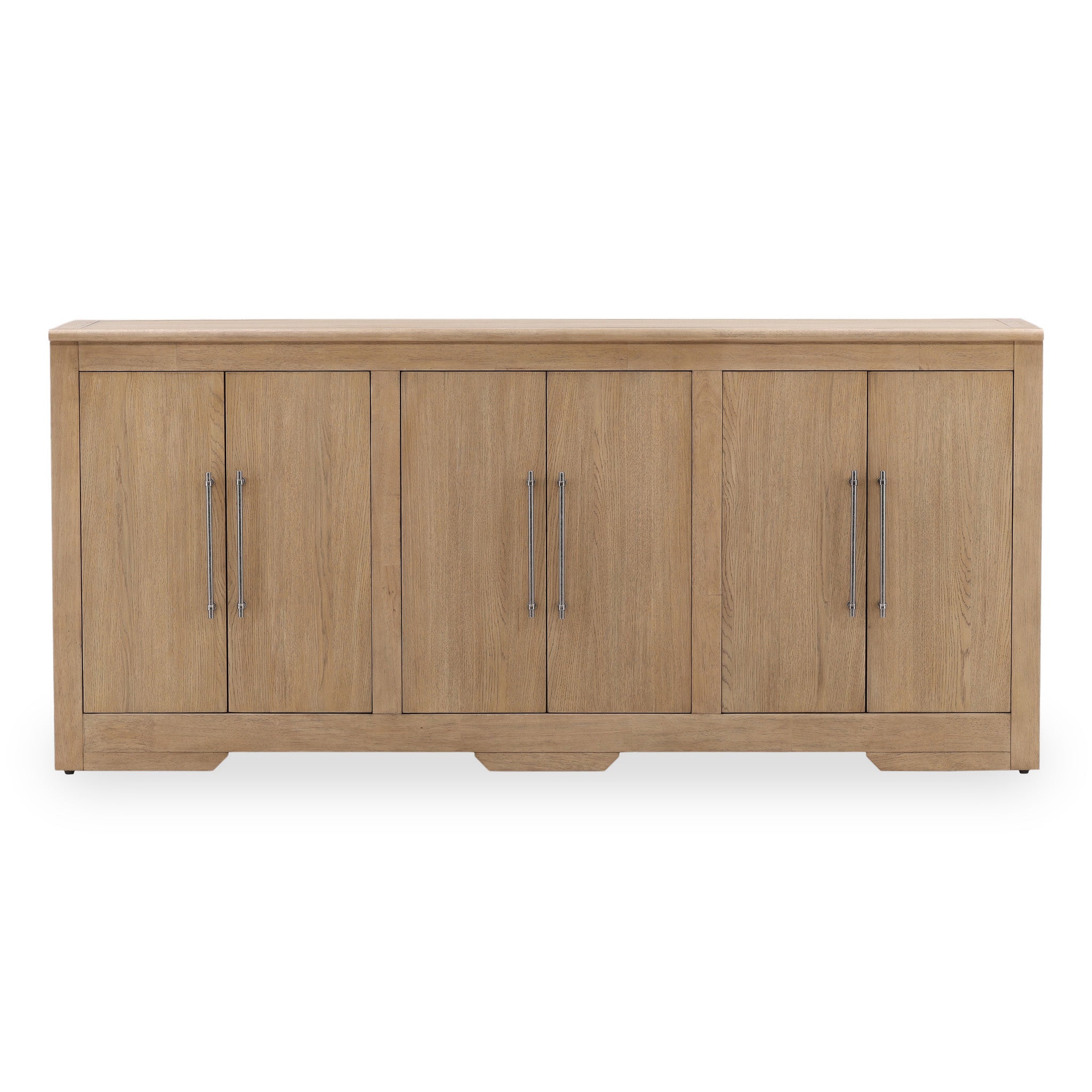 The Diego Sideboard offers a simple storage piece for living or dining areas. It combines rubber wood and oak veneer to create a sturdy structure designed for regular use. The natural finish highlights the look of the wood and gives the piece a light appearance. This sideboard provides a broad top surface along with space for everyday items.
