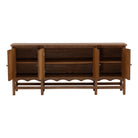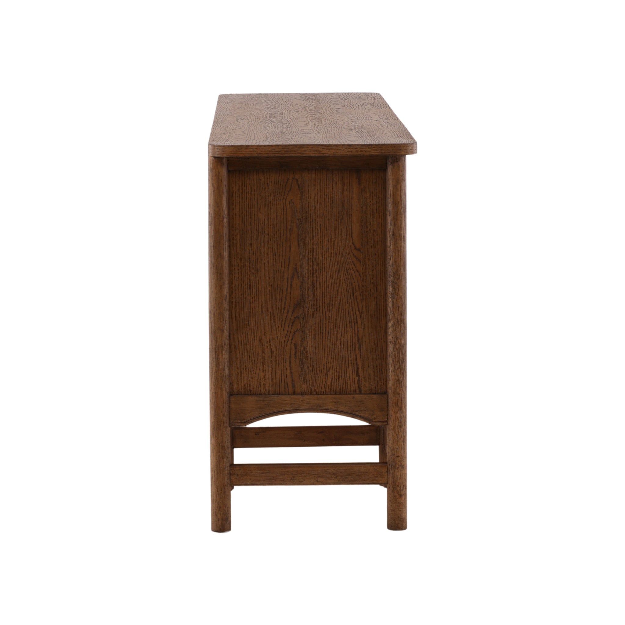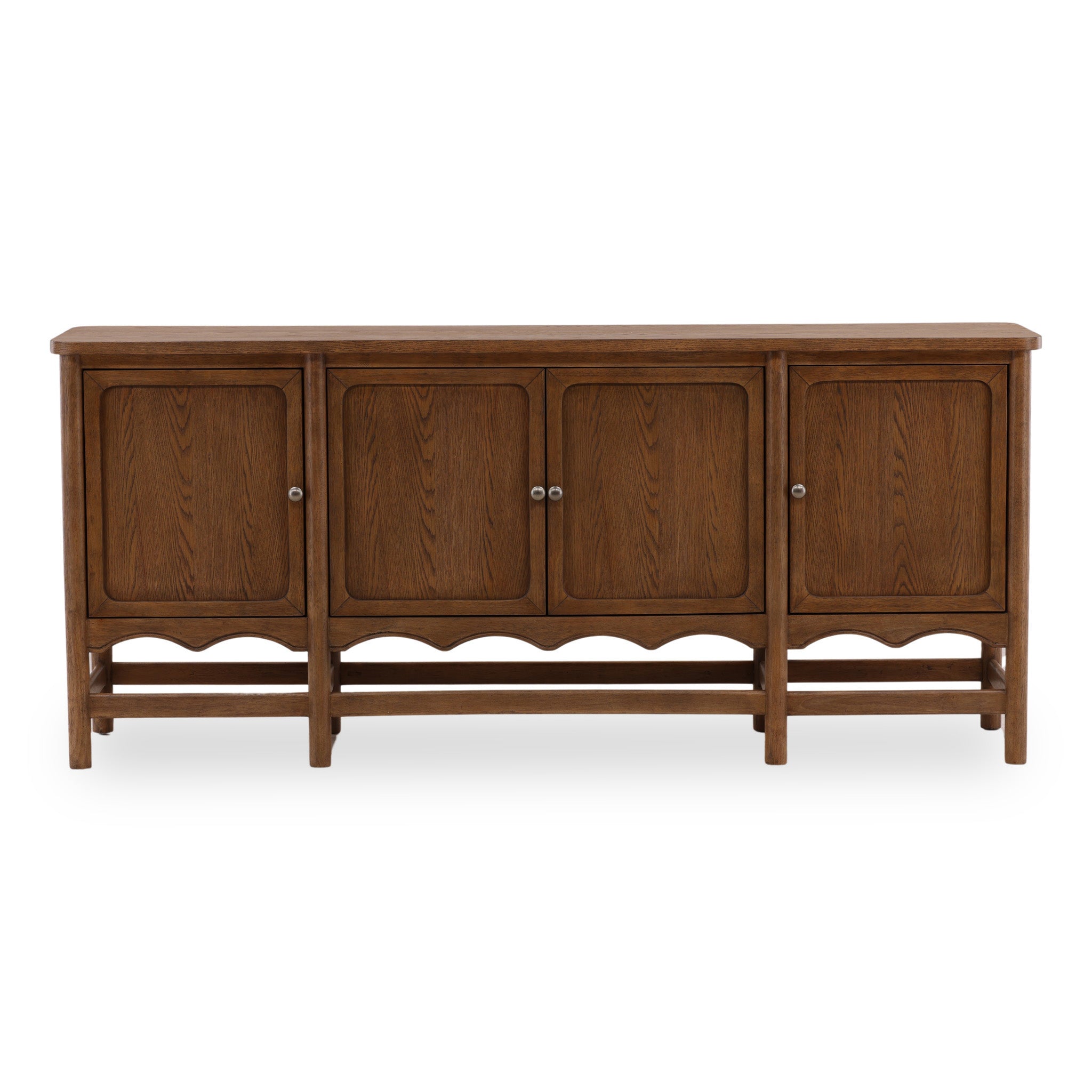The Philippa Sideboard adds a strong and classic presence to living or dining spaces. It combines rubber wood and oak veneer to create a sturdy structure made for everyday use. The brown finish deepens the look of the wood and gives the piece a rich tone. This sideboard offers a broad top surface along with useful storage space.