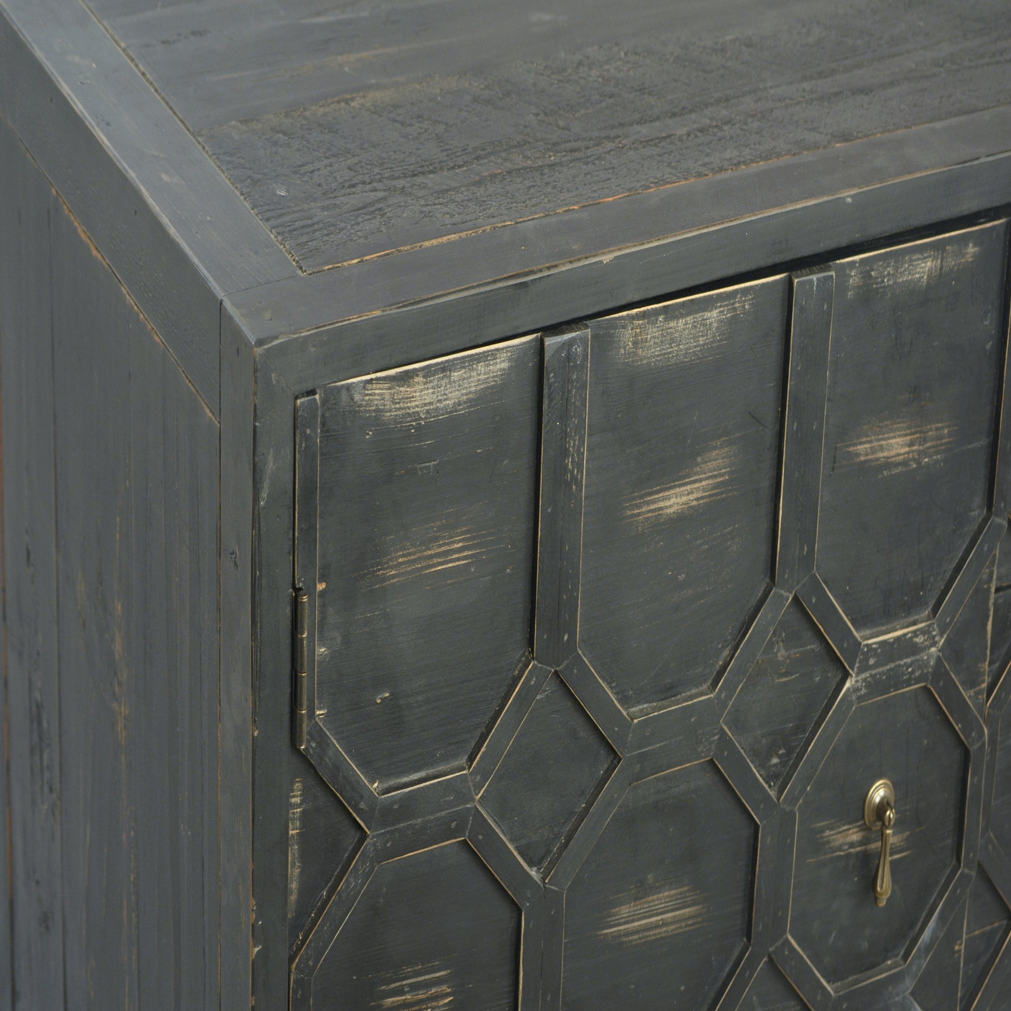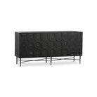Introducing the Phineas Sideboard, where vintage sophistication meets industrial chic. Its antique black finish lends a touch of old-world charm. Supported by a durable base, this sideboard seamlessly blends rustic elegance with modern durability. Perfect for storing dining essentials or displaying treasured items, it offers both style and functionality. Whether gracing a dining room, living area, or hallway, the Phineas Sideboard makes a bold statement, enhancing any space with its timeless design. Your home decor needs the distinct allure and enduring craftsmanship of the Phineas Sideboard.