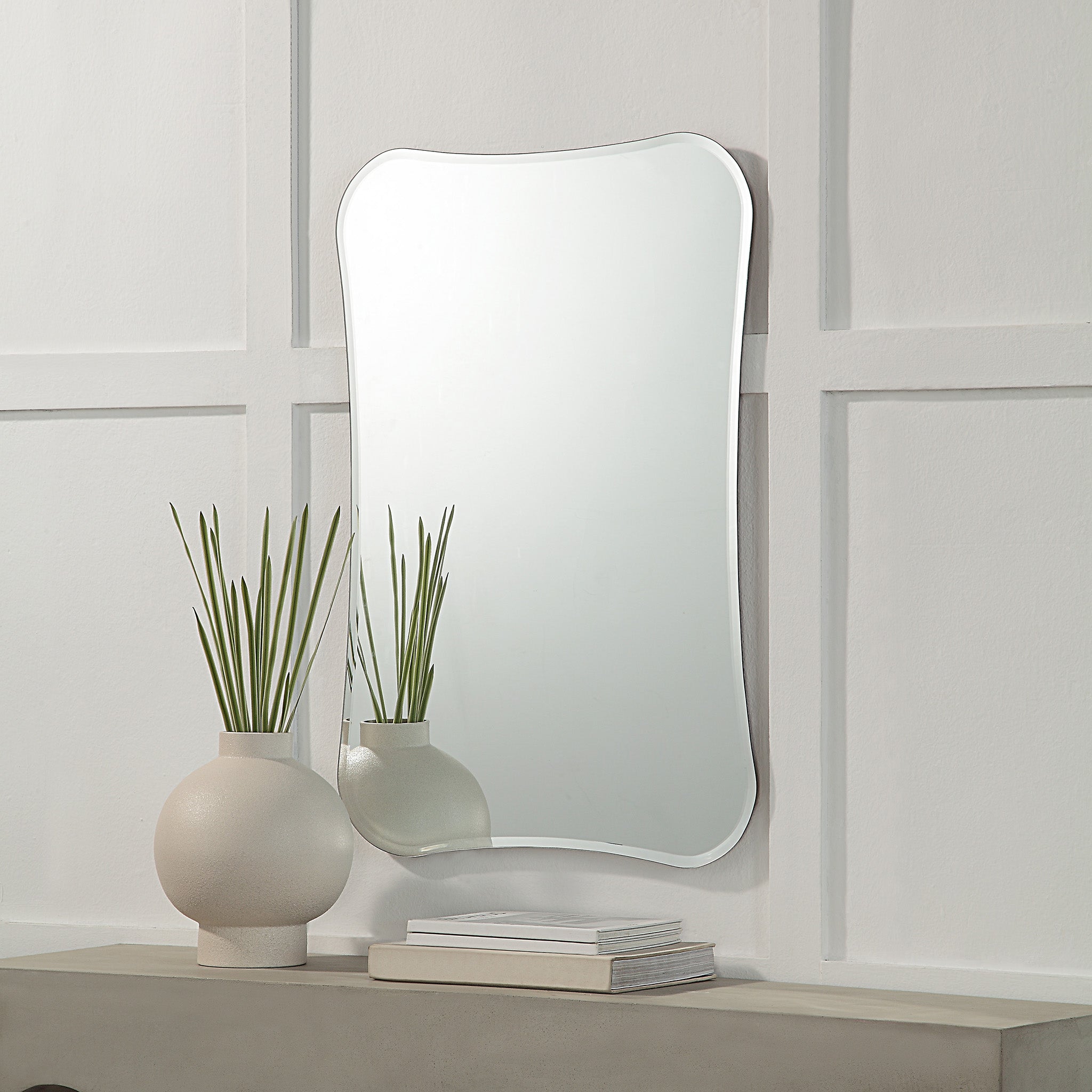 Upgrade your space with the Kelvin 36" Tall Rectangular Irregular Mirror. Its abstract shape adds a touch of modern flair to any room while its low-maintenance design makes it incredibly easy to clean. Equipped with a D-Ring hanging system, this mirror can be installed quickly and easily. With its sleek and elegant design, this mirror will instantly elevate the look of any room. The unique irregular shape adds a touch of visual interest, while the tall size allows for a full-body reflection. Additionally, the four-way hanging system allows for versatile display options, ensuring that you can get the perfect look for your space.