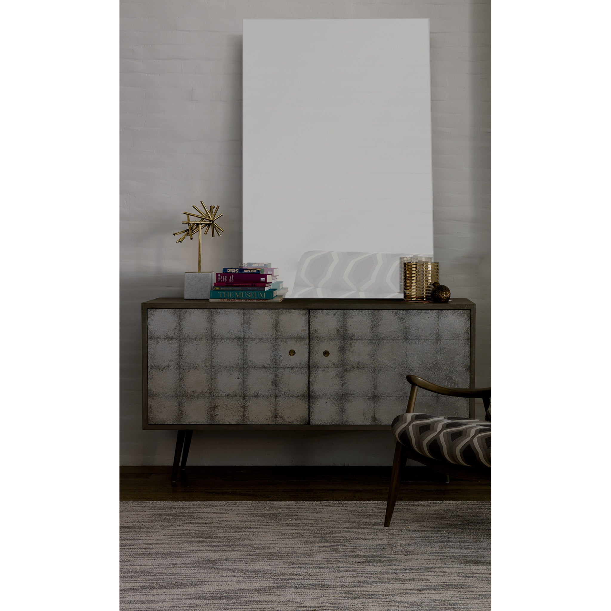Cool symmetry and clean lines come together to create the understated elegance of this rectangular glass wall mirror.