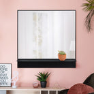 Hanging in the contemporary entryway, this mirror brings utility to the everyday routine – in a designer package. The inherently chic quality of a Black powder-coated finish gleams through effortlessly along its square frame. Whether the shelf serves as a permanent resting point for décor accessories or a temporary holding place for keys, it adds depth and dimension to the overall room design.