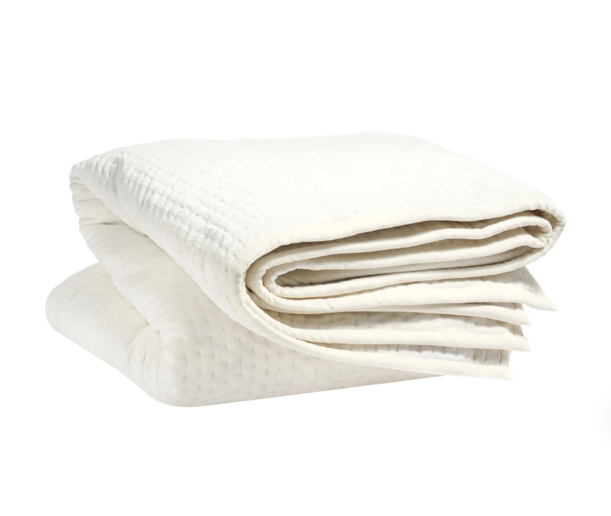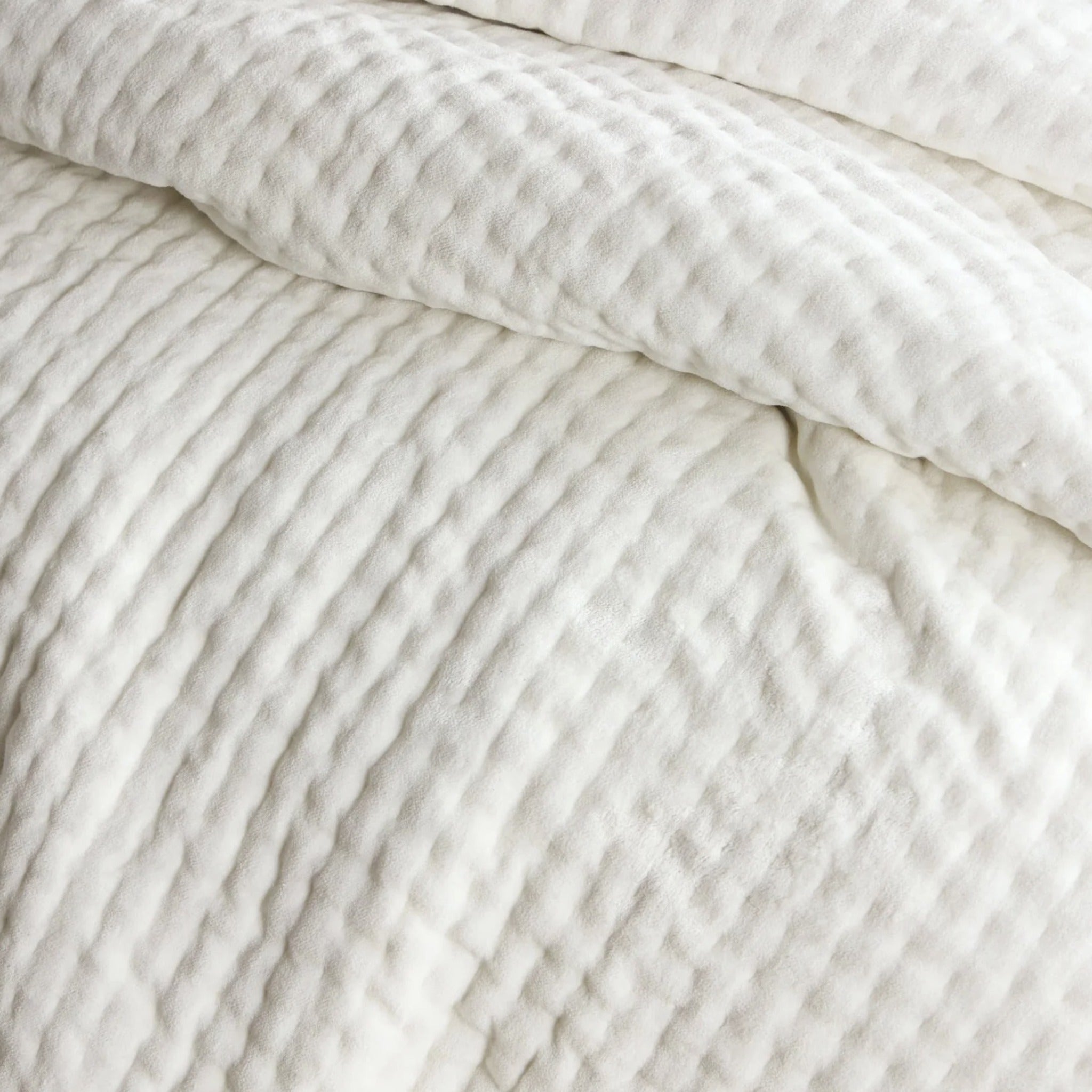 This supremely soft velvet quilt is made with classic pintuck stitching and extra batting to provide an additional layer of luxurious comfort. Guaranteed to keep you cozy and warm, even on the chilliest of nights. For a serene look, pair with the coordinating quilted shams. Quilted with a cotton fill.