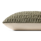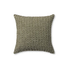 Alinah is an olive throw pillow from Amber Lewis x Loloi with a waffle texture, a timeless design for sophisticated home decor. The pillow cover is woven of cotton and polyester in India and measures 22" x 22", a versatile size for living rooms and bedrooms.