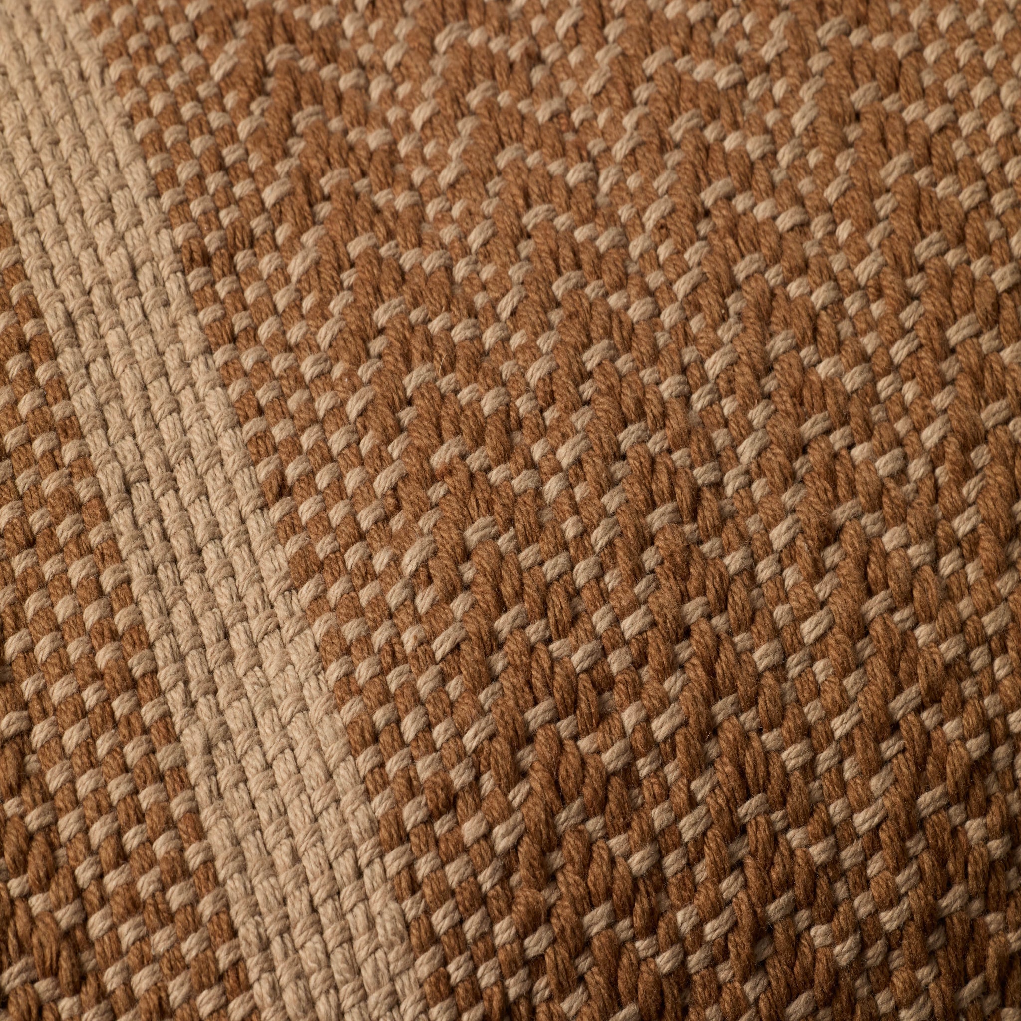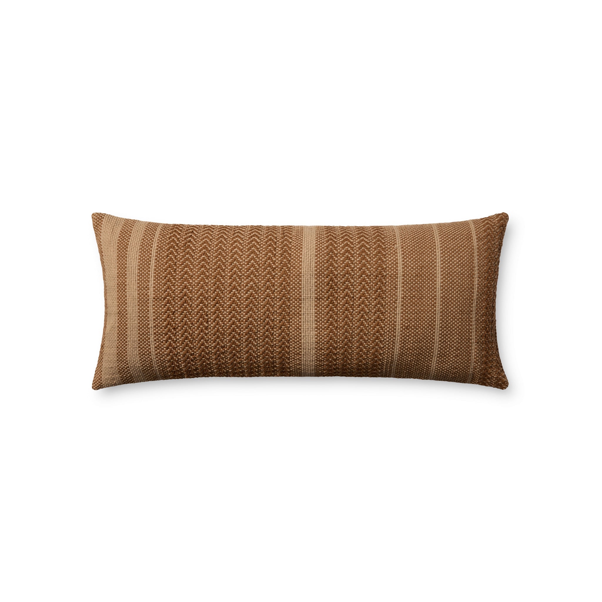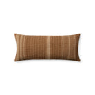 Blair is a richly textured brown throw pillow with subtle stripes, designed by Amber Lewis x Loloi for a range of home decor styles, from coastal to organic modern. The pillow cover is hand-woven of cotton in India and measures 13" x 35", an extra-long size for living rooms and bedrooms.