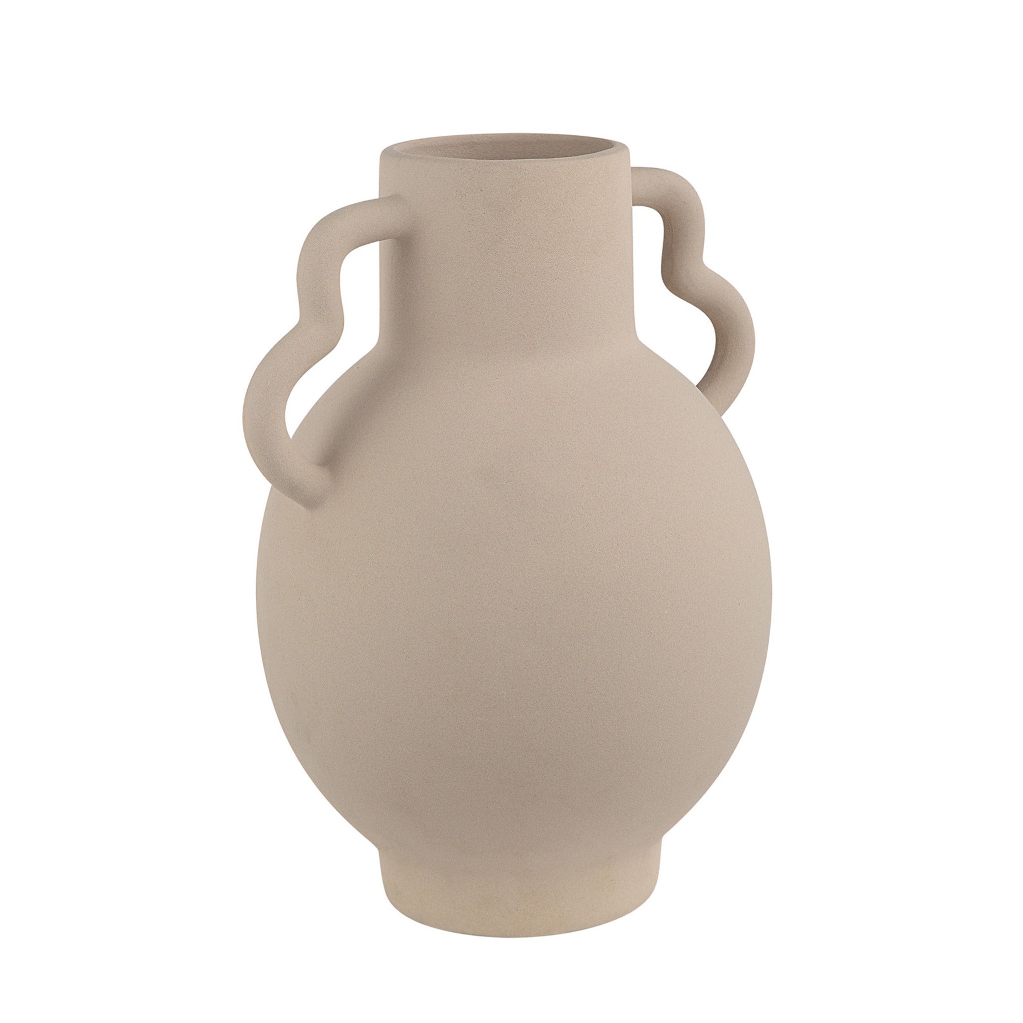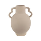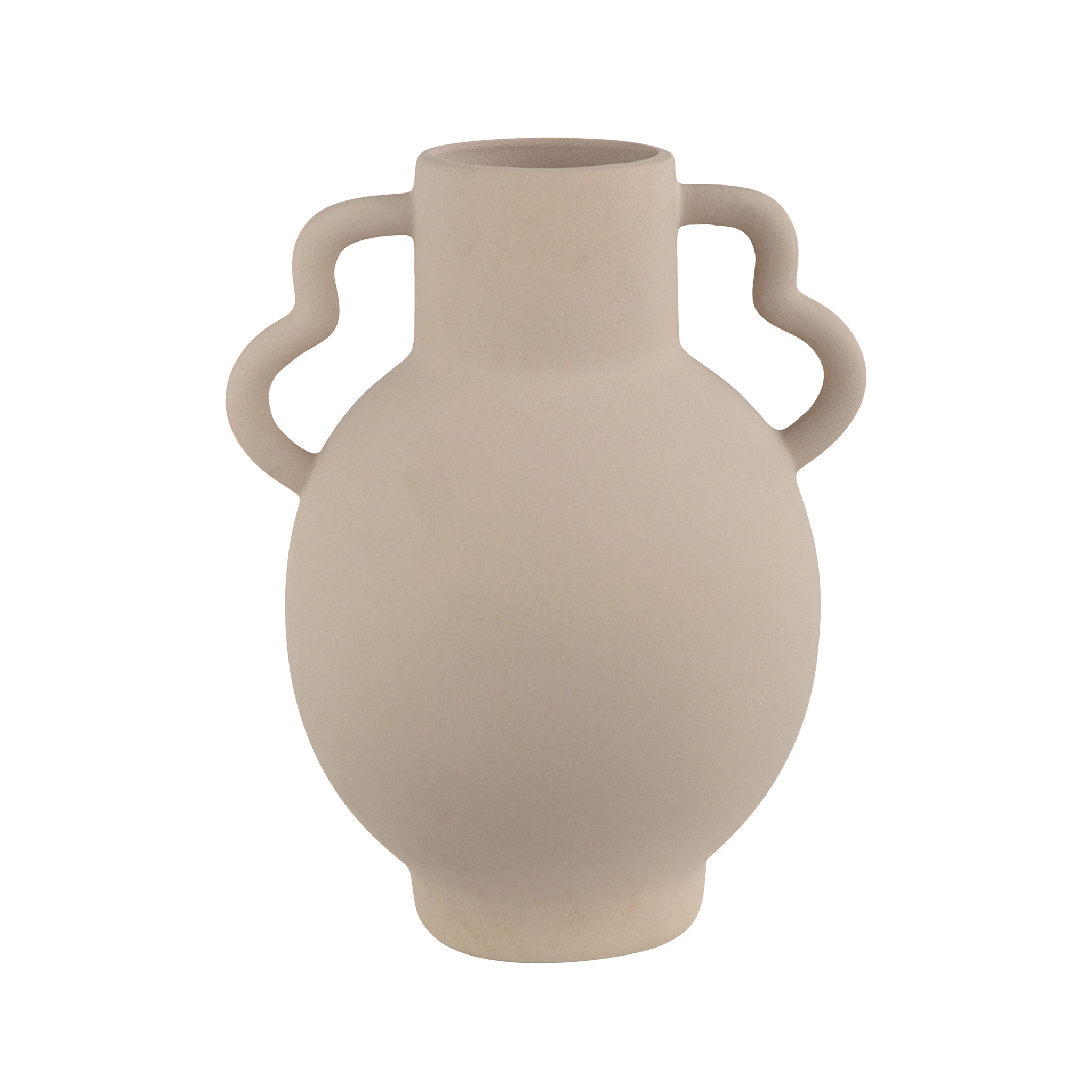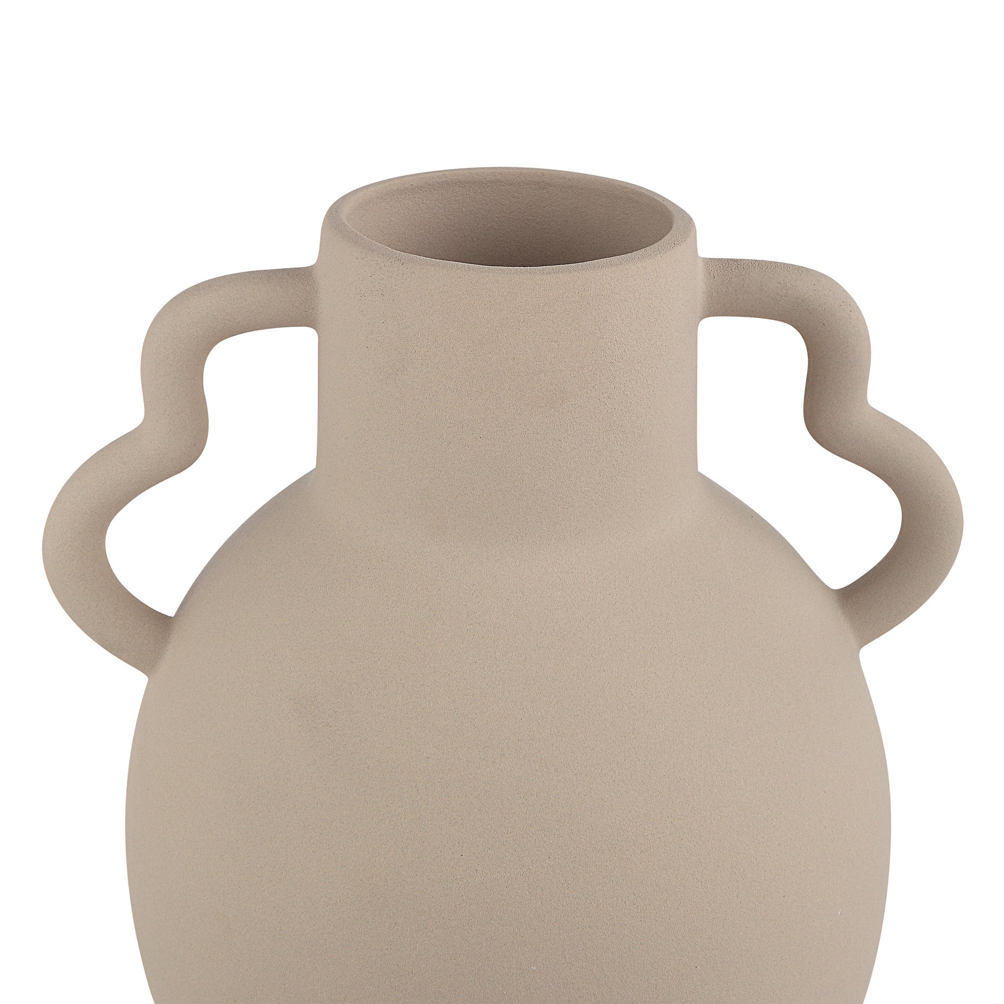 The Giovani Ceramic Decorative Vase is a stunning piece of artistry, and not just a vase, but an expression of elegance, grace, and beauty. Made of quality ceramic, this vase stands tall as a symbol of lasting reliability and durability.Retro-inspired structure of this vase is accentuated by a fascinating handle design, which is sure to catch the attention of anyone who admires art. Its resilient textured matte beige finish ensures that the vase retains its pristine appeal for years to come, while the glazed finish adds an additional layer of protection, making it a piece of furniture that will stand the test of time. More than just an accent piece - it's a conversation starter. Its superb design adds a touch of class and sophistication to any space effortlessly.