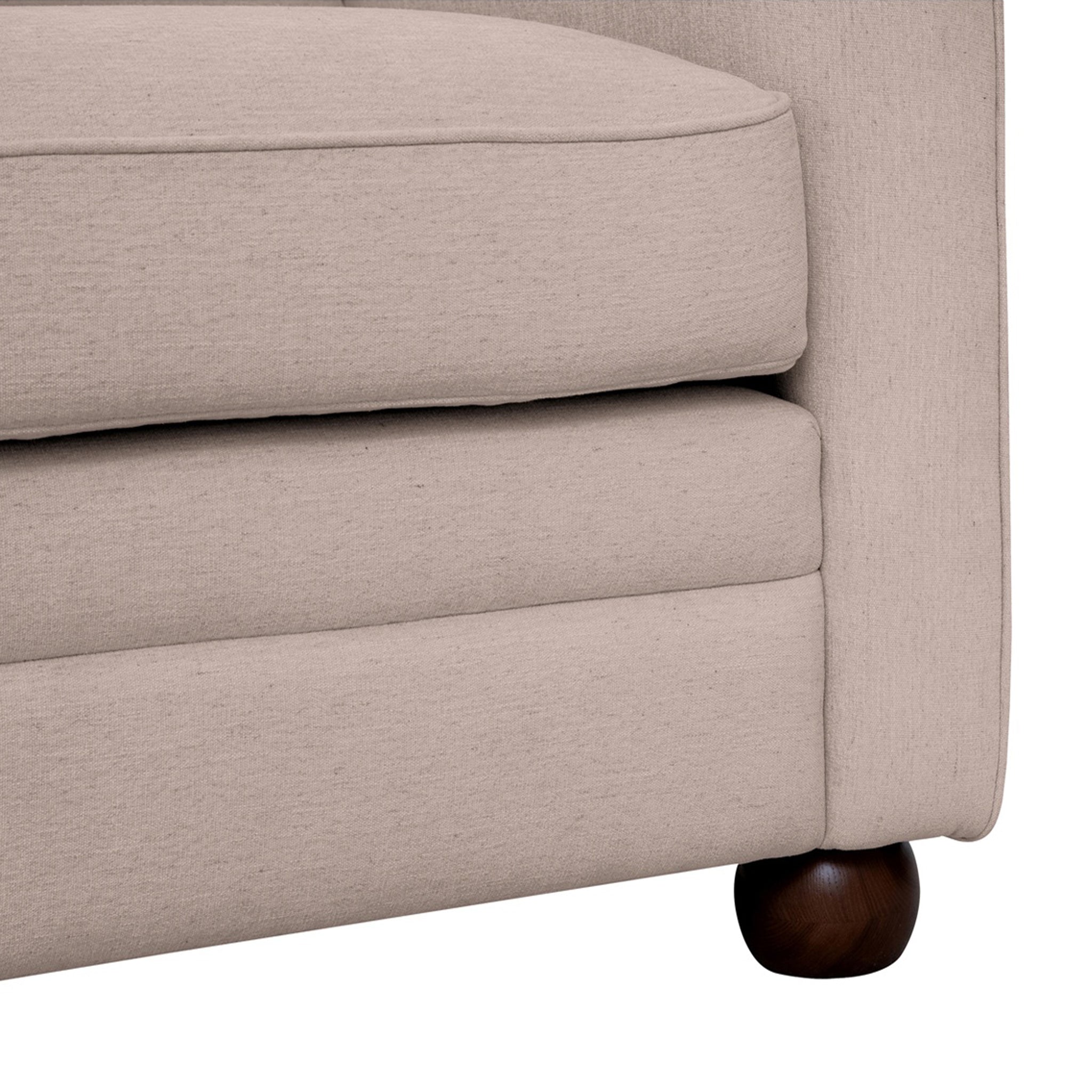 Material: Upholstery: 100% Polyester, Seat And Back: Foam Core With 70% Feather & 30% Fibre Fill, Solid Wood And Plywood Frame, Plastic Leg