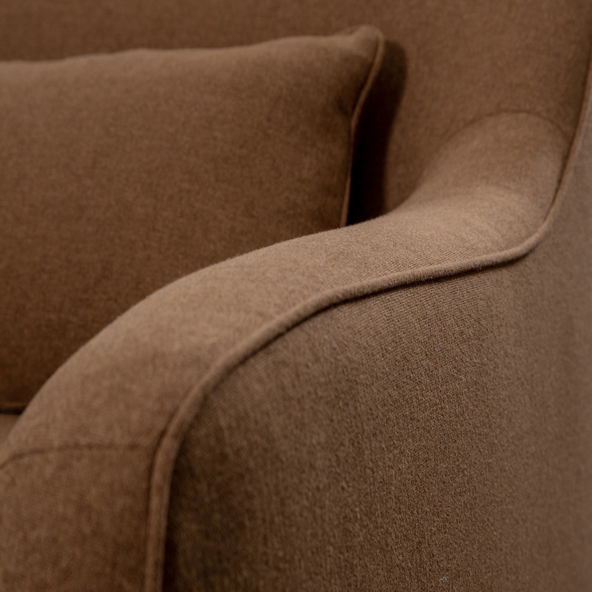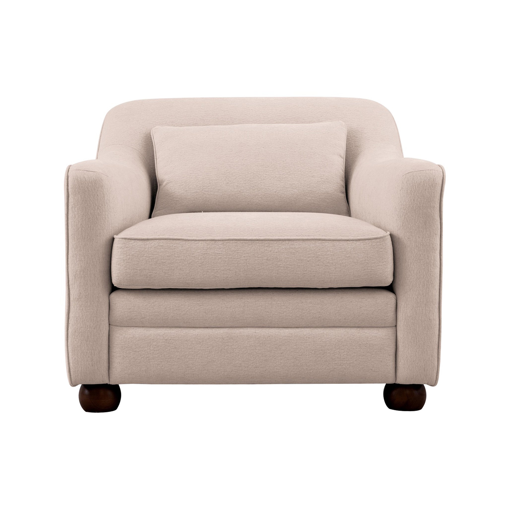 The Antonella accent chair's graceful silhouette promises cloud-like comfort, inviting you to sink in and unwind. Upholstered in durable polyester fabric, and accentuated with a piping details it marries beauty with practicality. The high back curves to embrace, while gentle flared arms and plush lumbar cushion offer enhanced comfort.