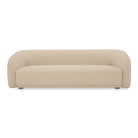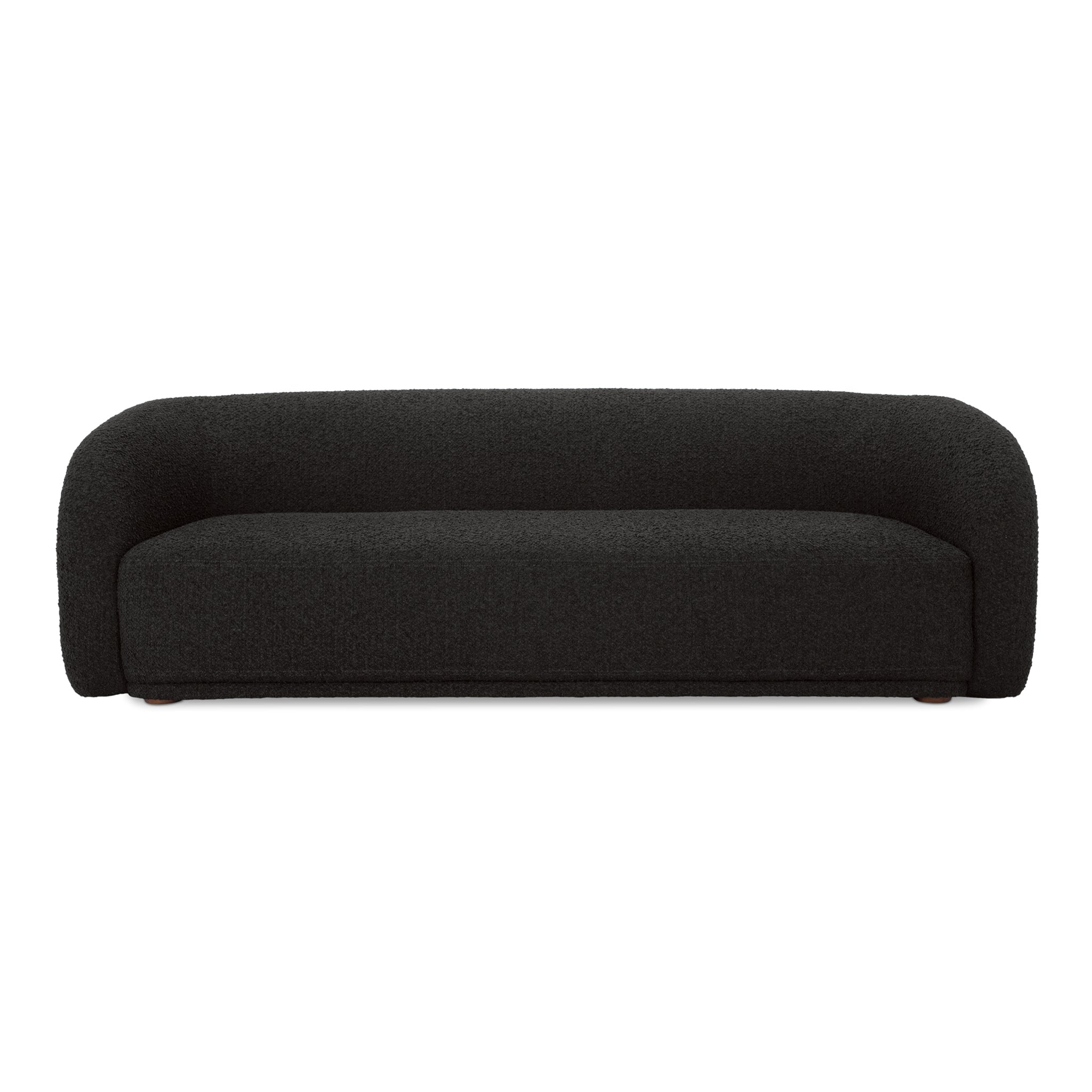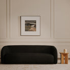 Constructed from solid beech and plywood, the Garner sofa's unique curved back and firm, fixed bench seat rest on petite, rounded rubberwood legs. The exaggerated boucle fabric has a robust 100,000 rub count bringing depth and an art deco feel to its contemporary form--a touch of elegance to expansive living.