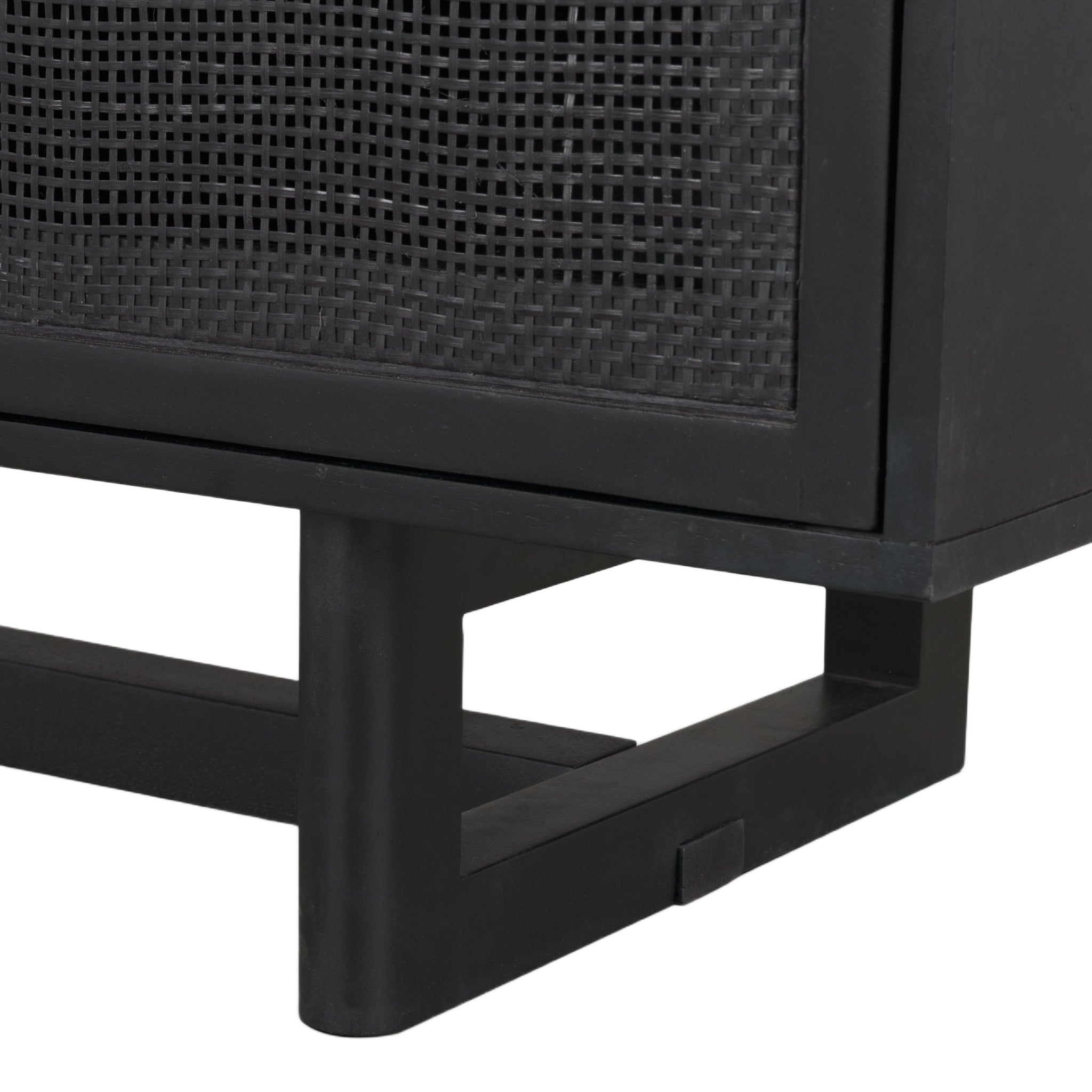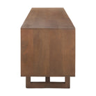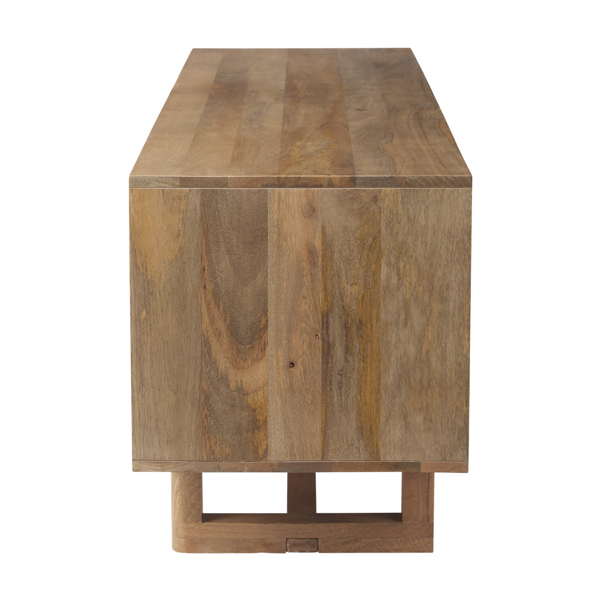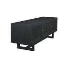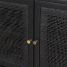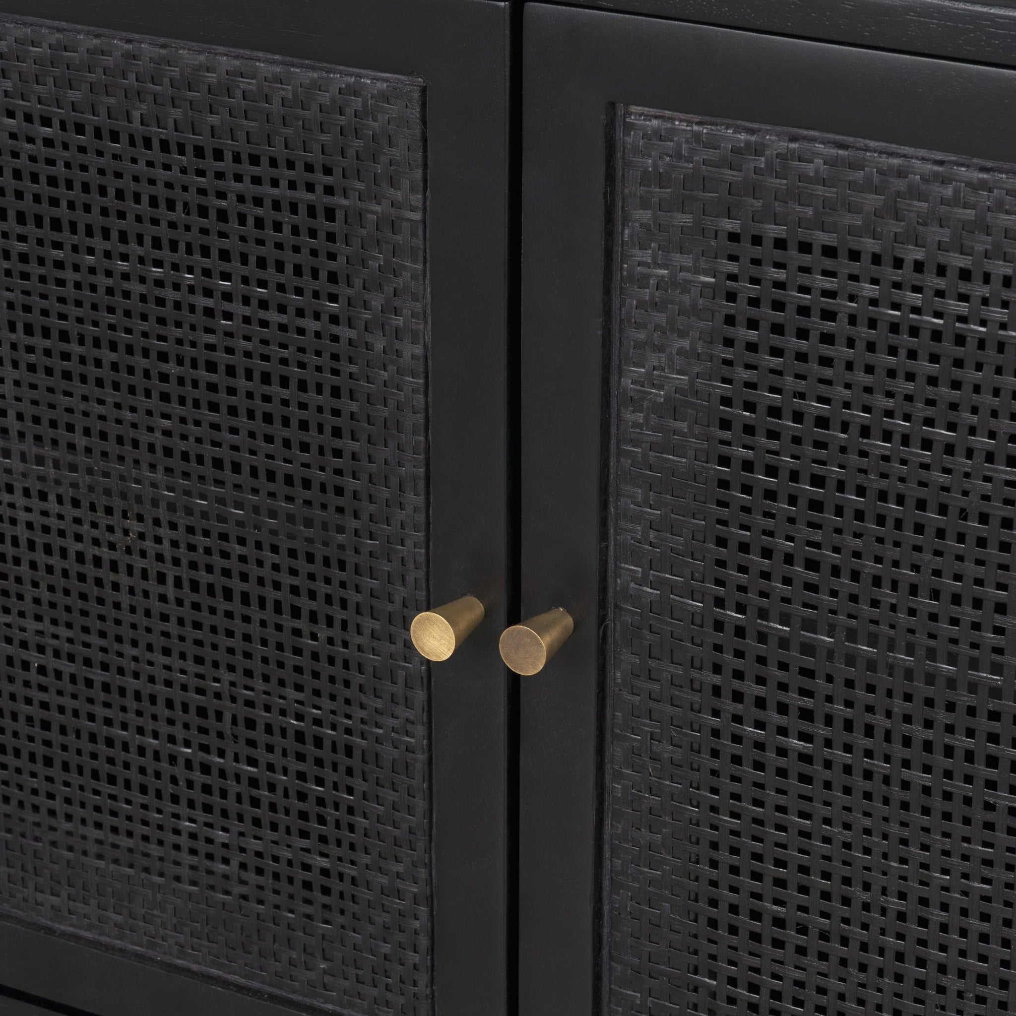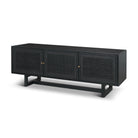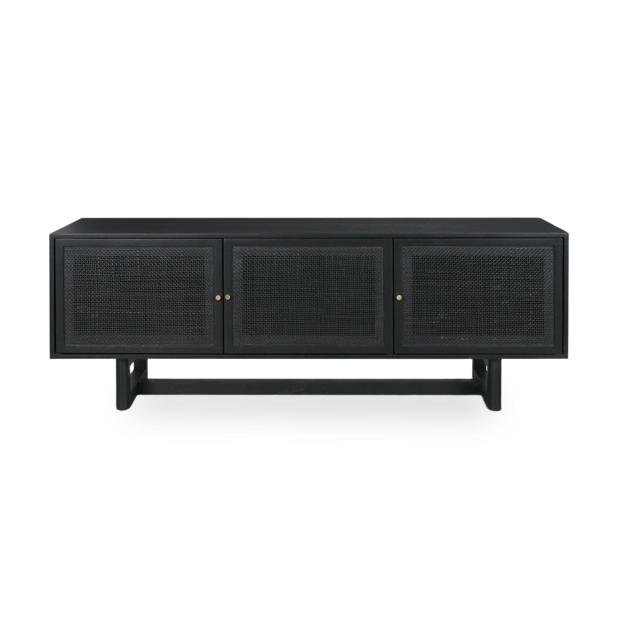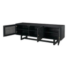 The Grayson Media Console is made from wood with cane detailing on the cabinet doors.