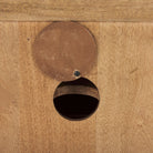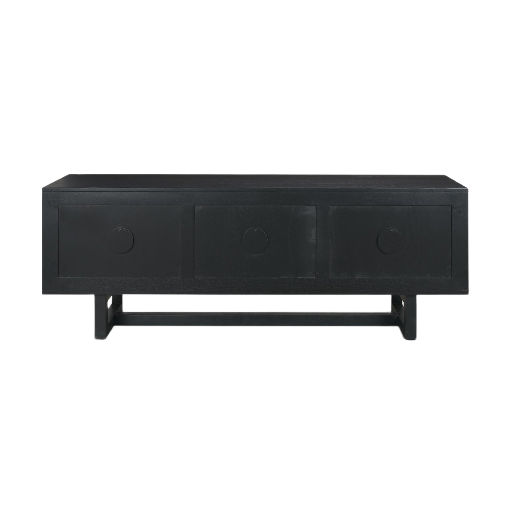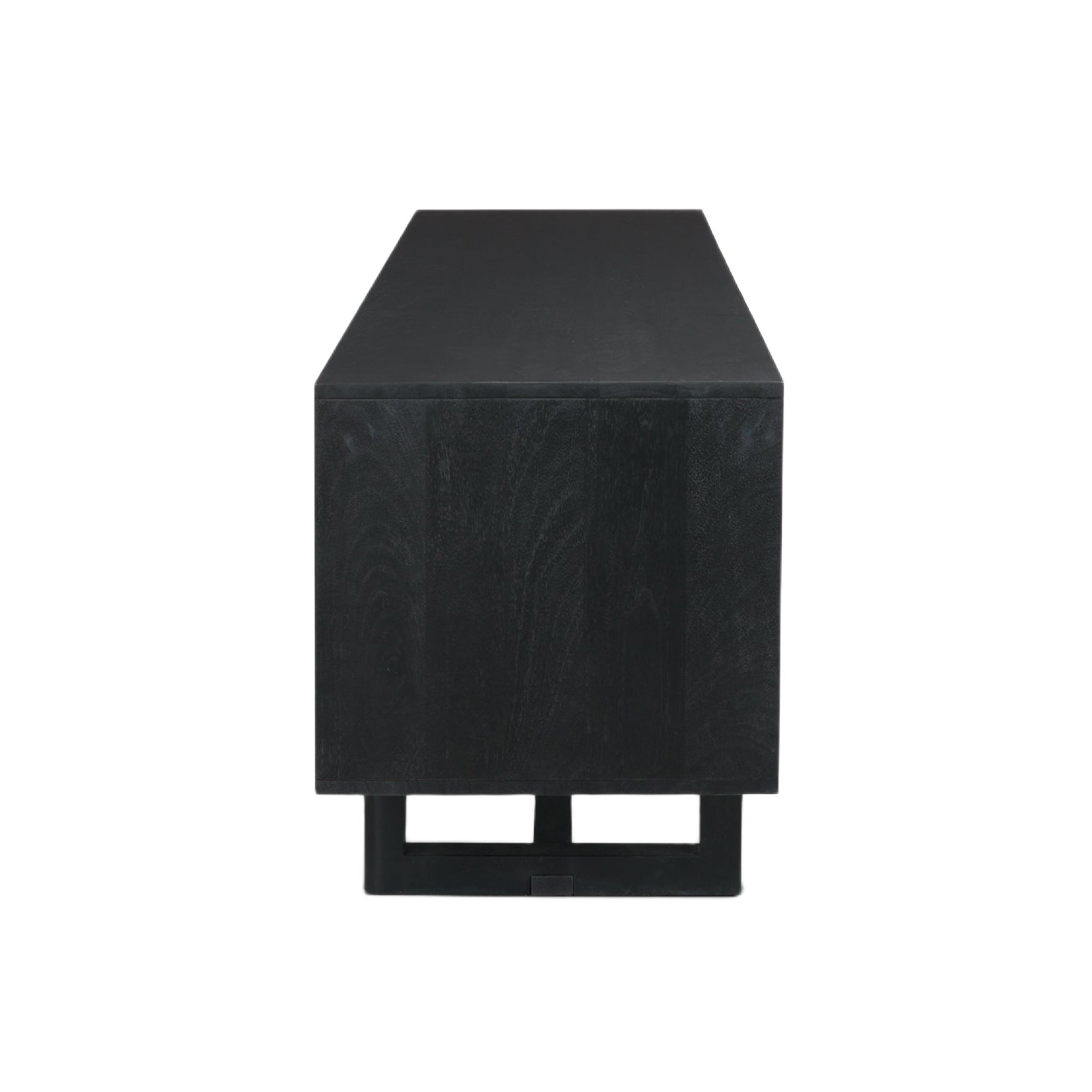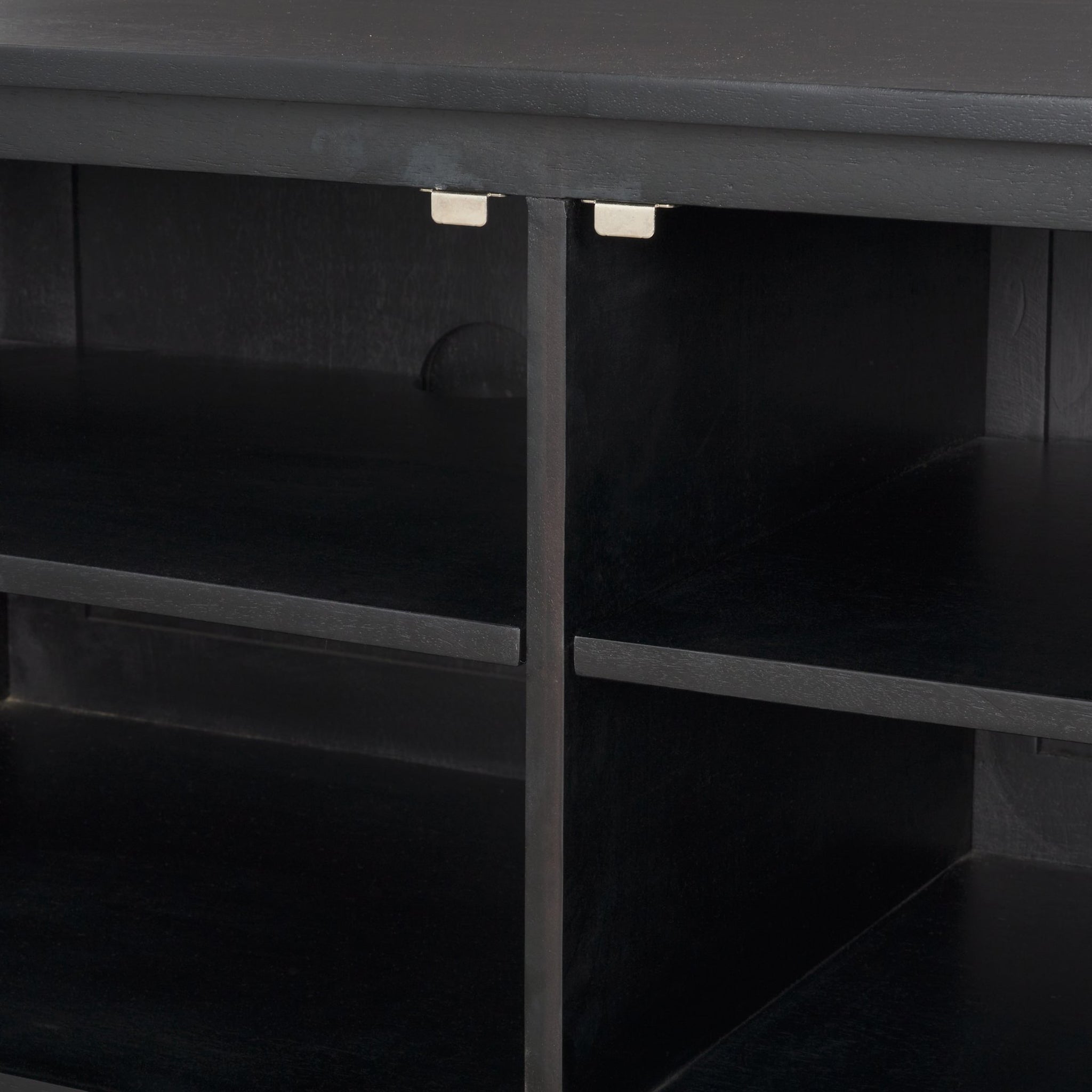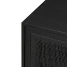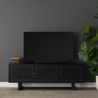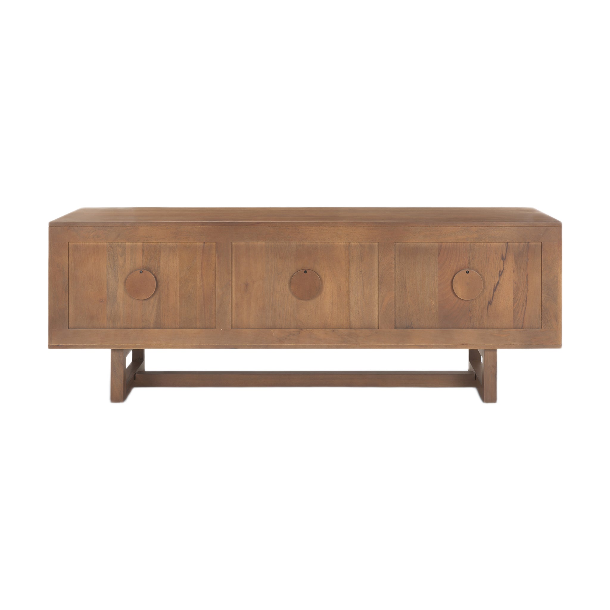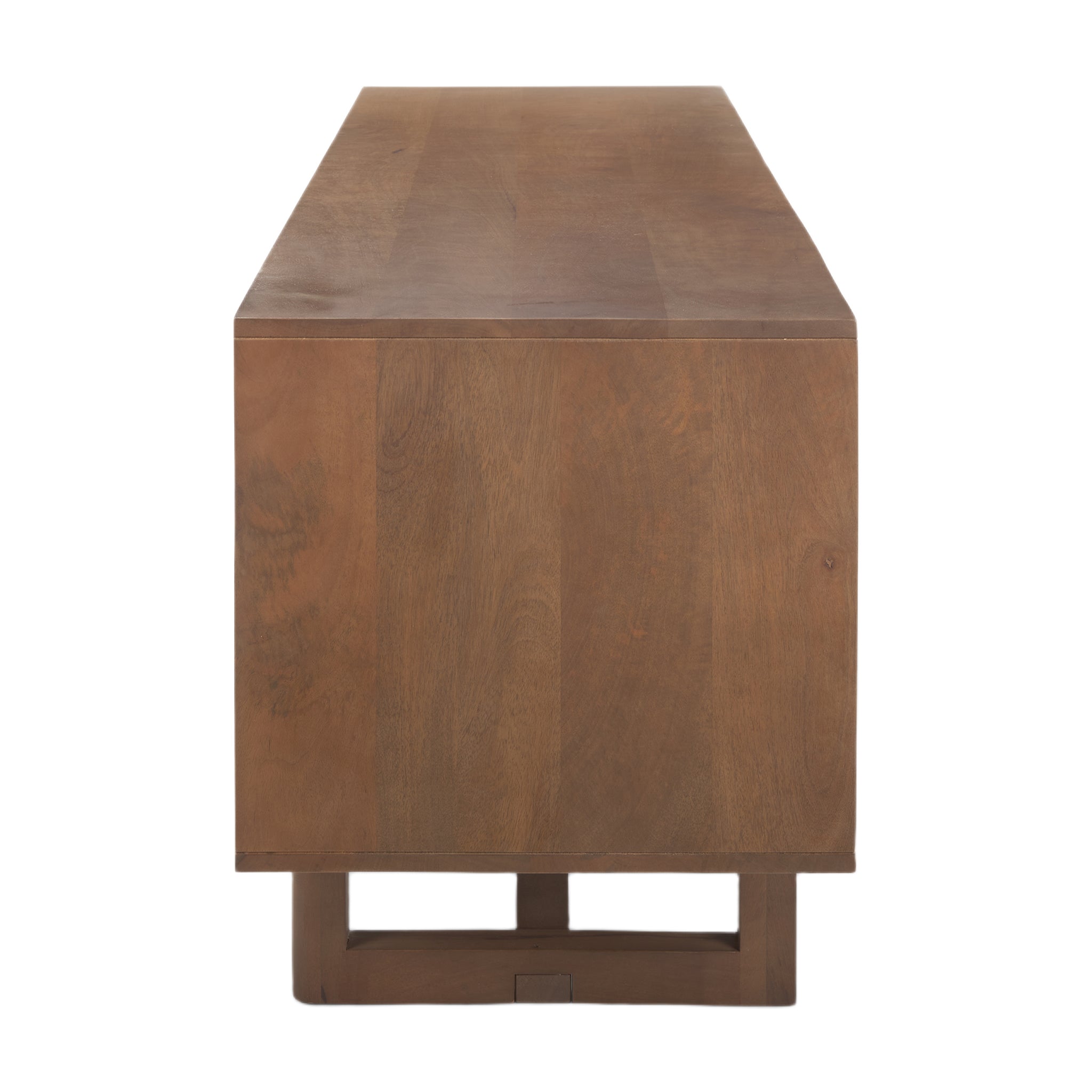 The Grayson Media Console is made from wood with cane detailing on the cabinet doors.