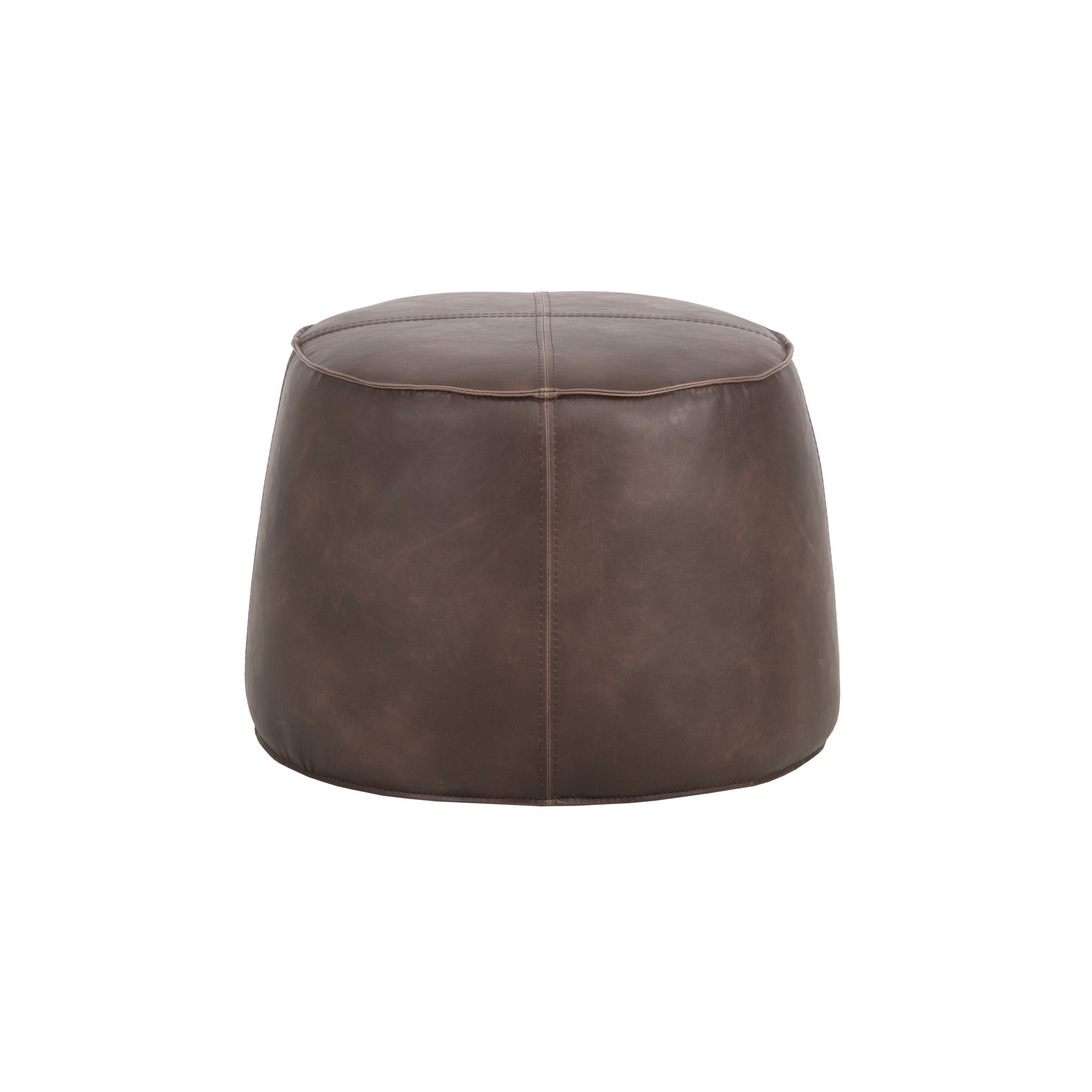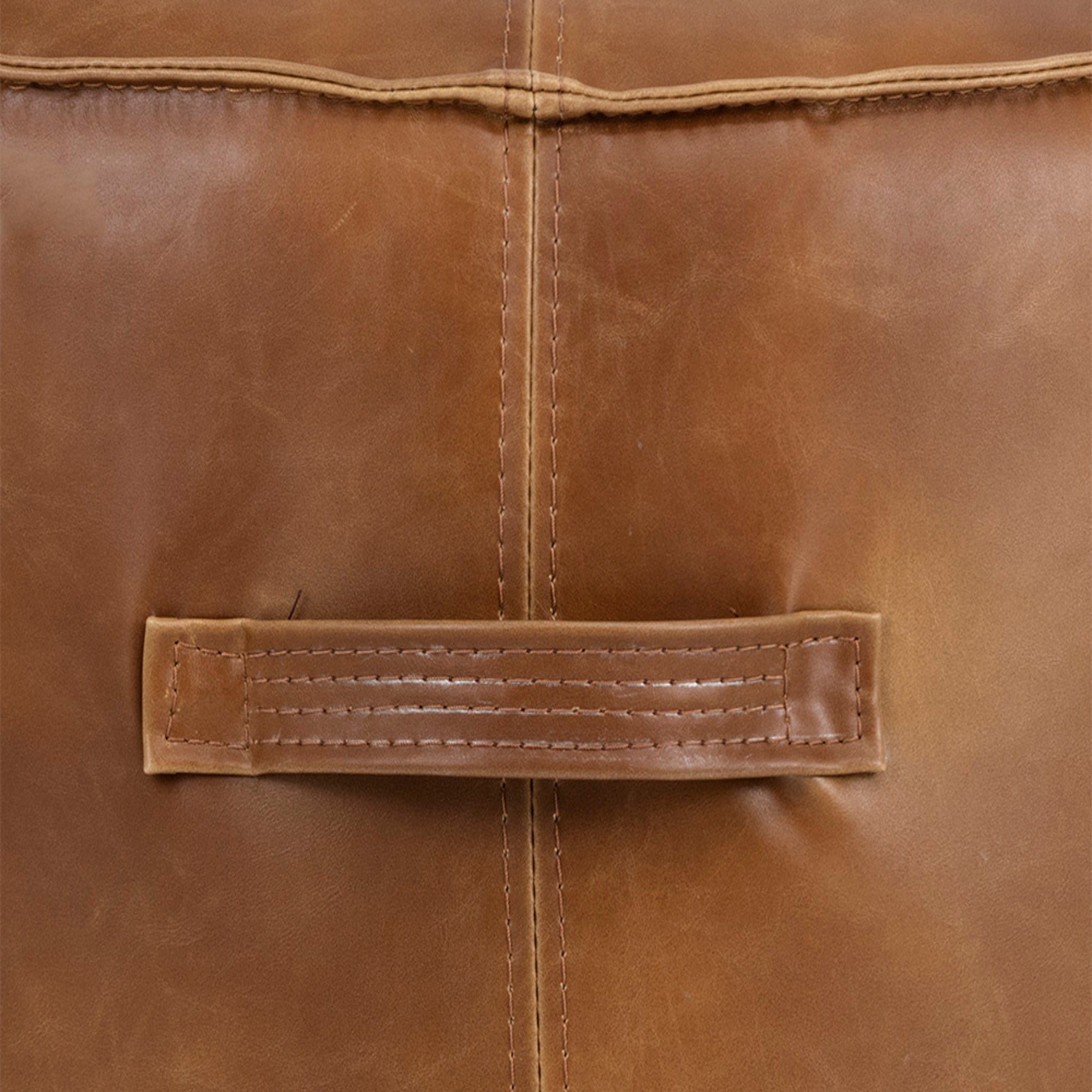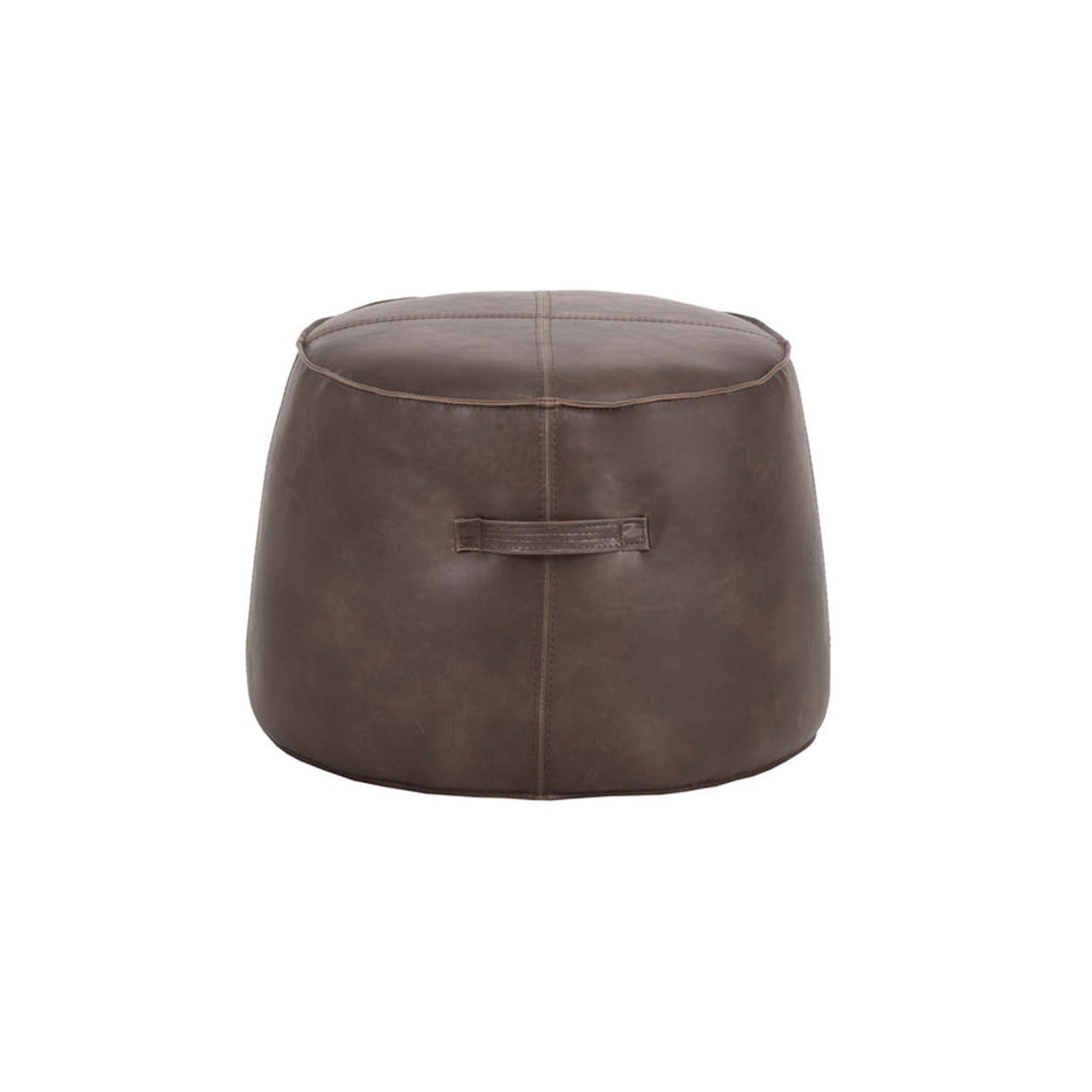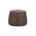 A handsome round ottoman stocked in a vintage-look havana dark brown, tobacco tan and overcast grey faux leather. Features a decorative handle and exposed stitching for added dimension. Suitable for residential and commercial environments. Handle With Care: This design has been crafted with faux leather. Faux leather is manufactured to reflect the natural characteristics of leather; as such, colour variations, markings, wrinkles, grooves, and light scratches are appreciated characteristics. No two pieces will be alike. Visit our Product Care page for more information on how to ensure the lasting beauty of this piece.