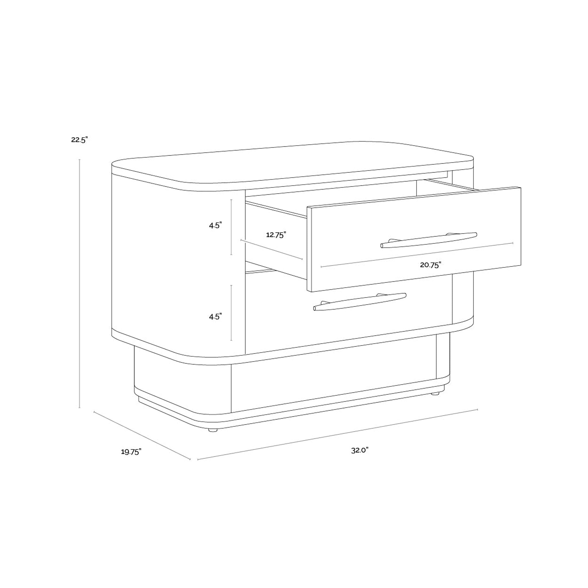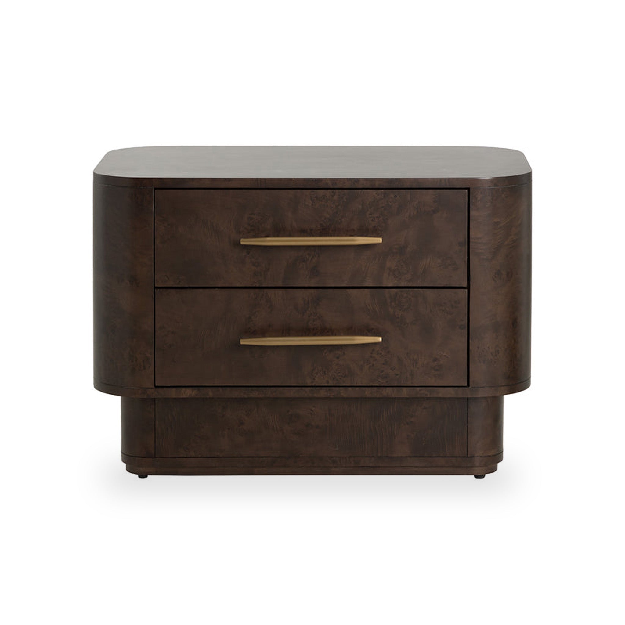The Wilson Nightstand celebrates form and function with a heightened sense of luxury. Maple burl veneer offers timeless beauty with its dynamic wood grain swirls and deep rich tones. Two soft-close drawers with brushed gold stainless steel handles provide convenient storage space.