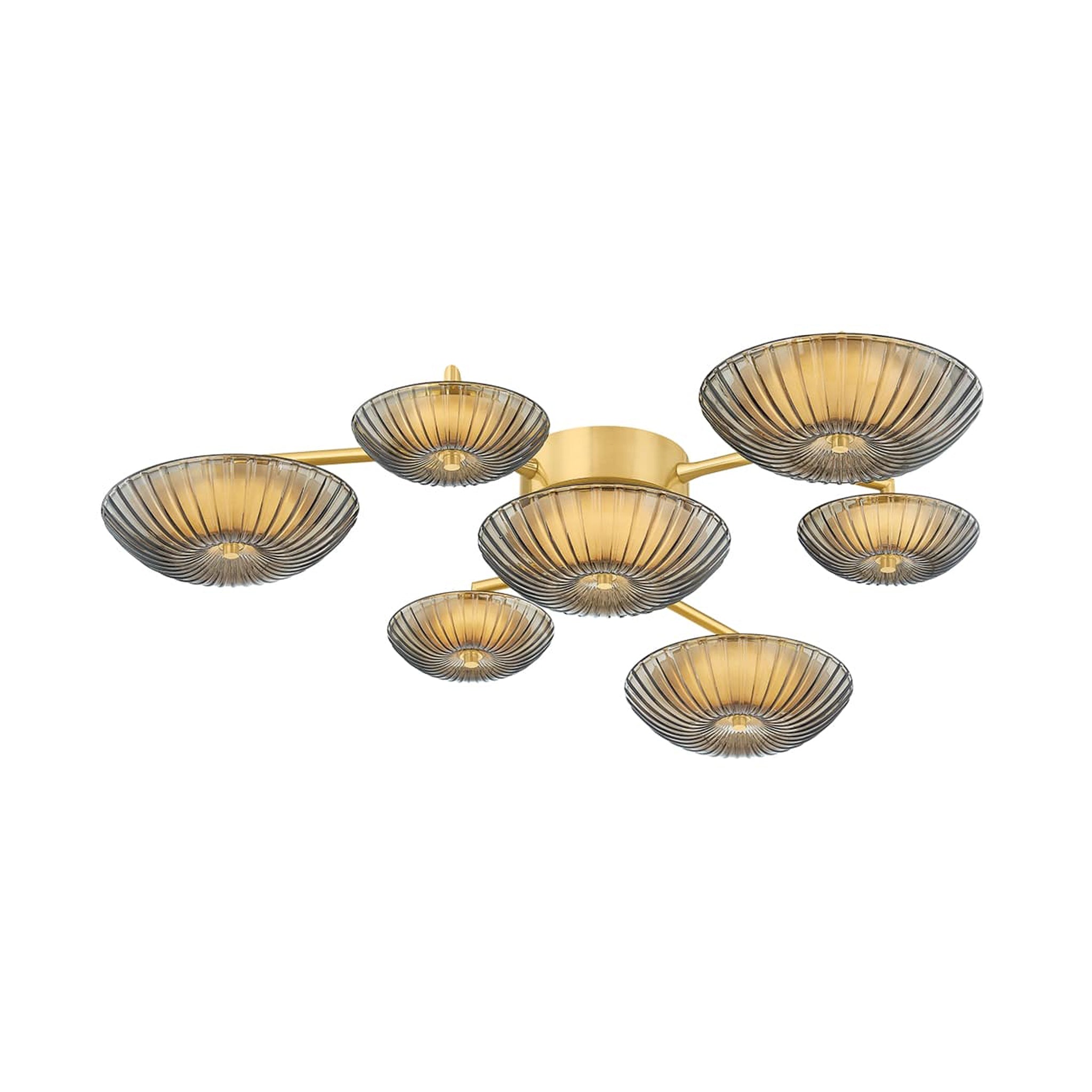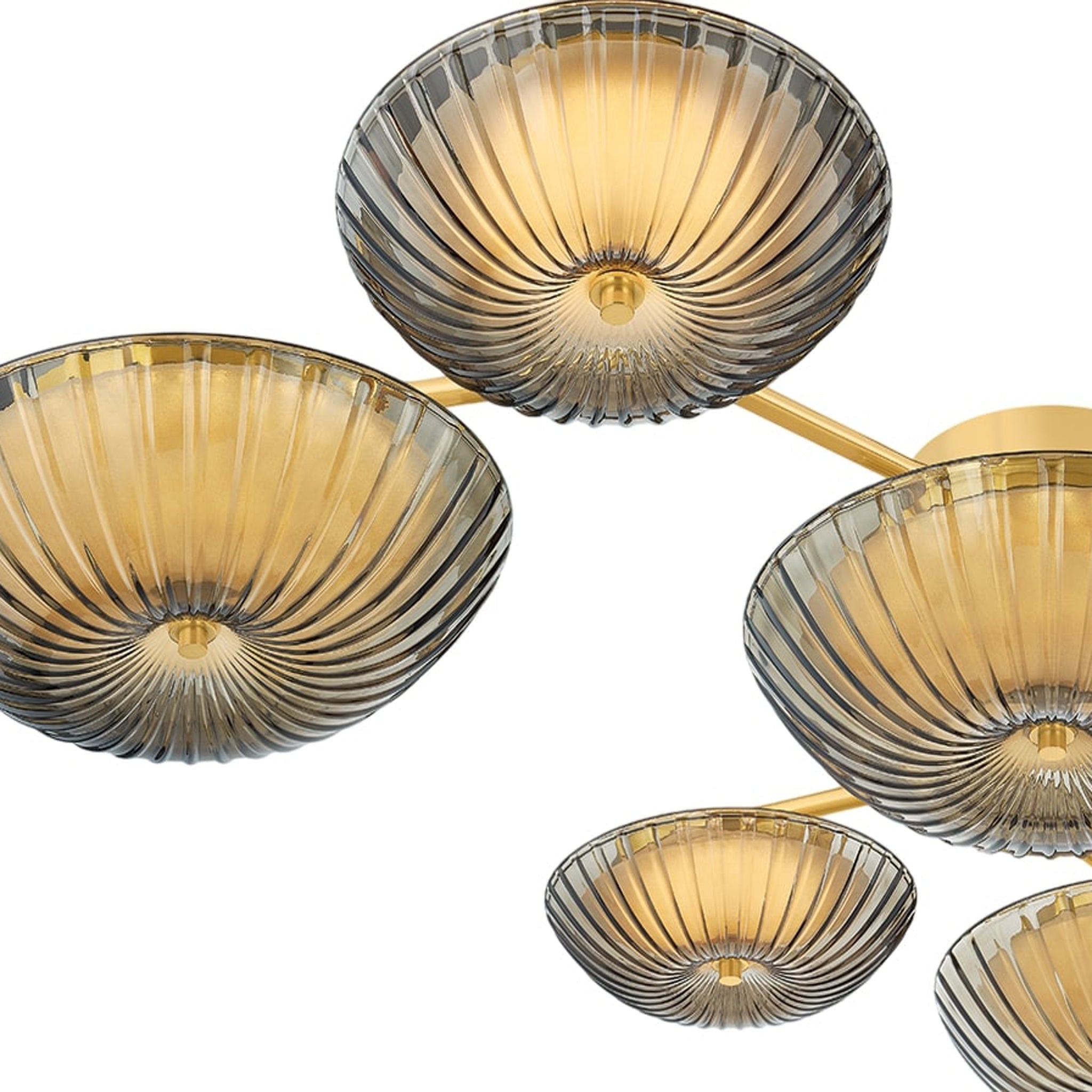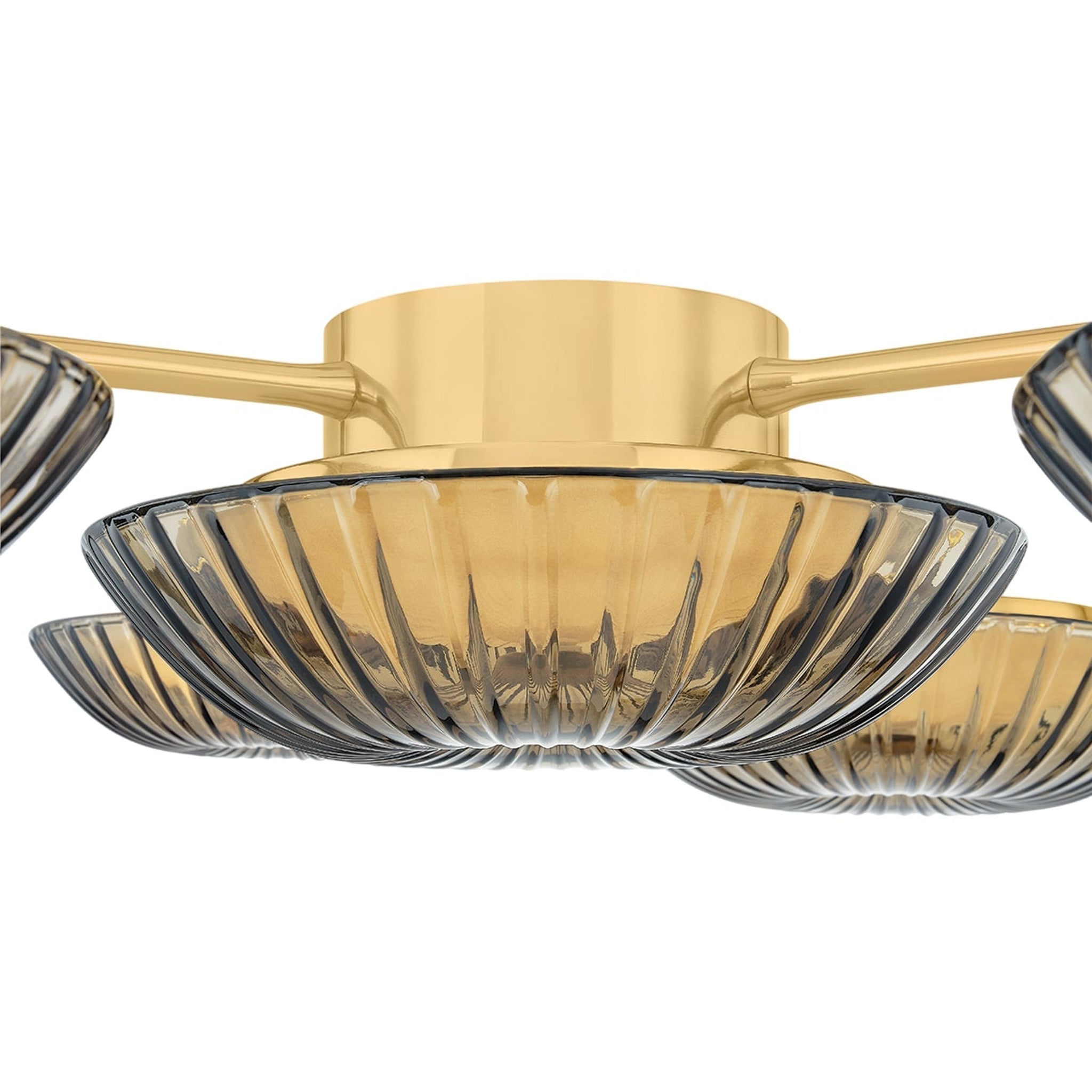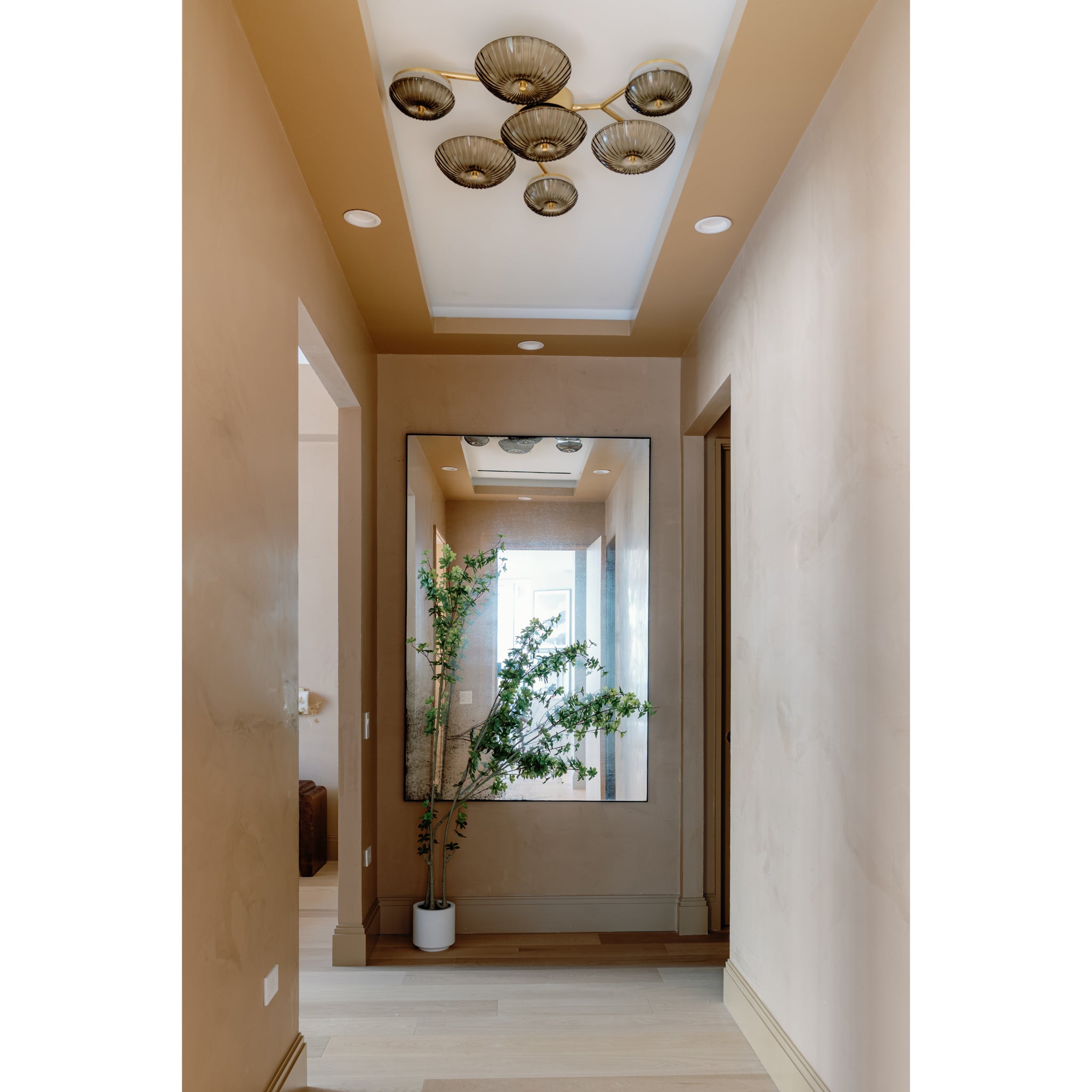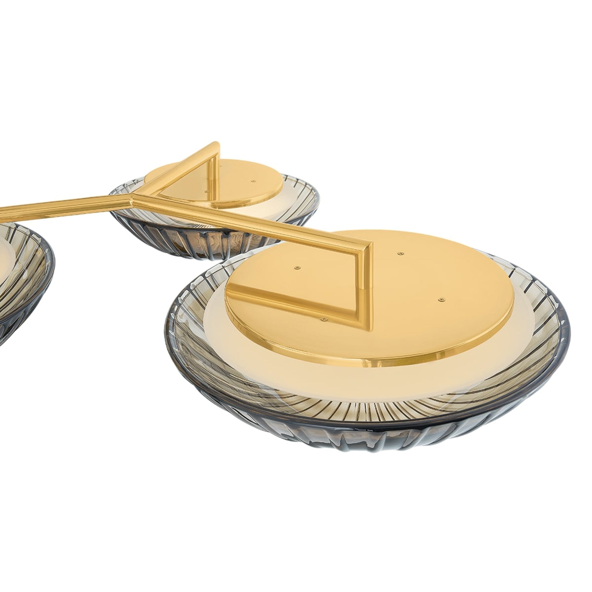 Drawing inspiration from natural branching forms, Birmingham makes a boldly modern wall art statement. The design features starburst cast topaz Piastre glass shades and clear etched glass shades, facilitating an interplay of light, texture, and shape. Its unique scale and silhouette create a sculptural, immersive experience that draws the eye. Birmingham is available in three formats with a Vintage Brass finish.