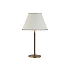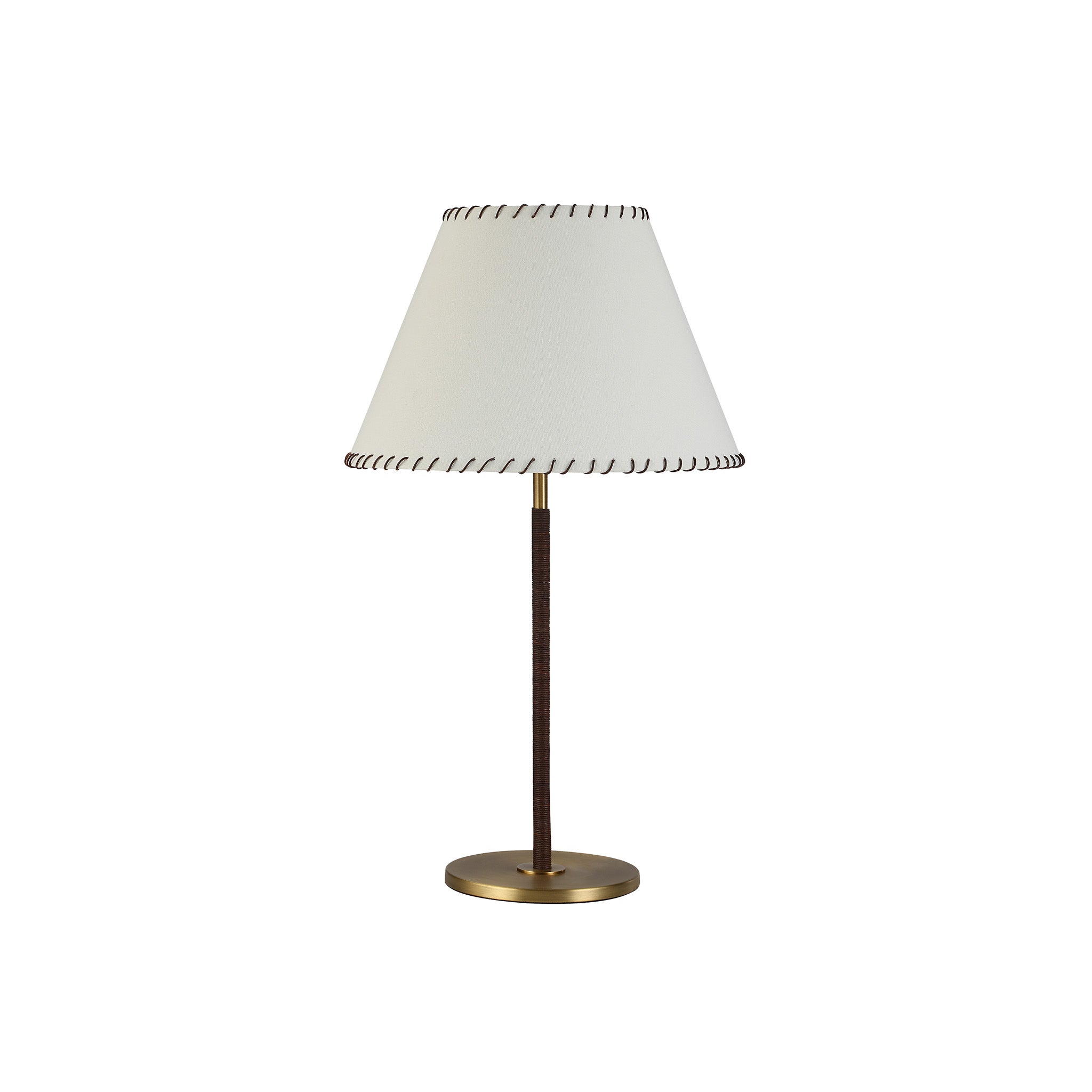 When you need a special accent for your design project, this transitional table lamp heeds the call. Wrapping up timeless finishes and unique details into one stunning piece, it features a dark antique brushed brass finish and an ivory linen shade with vegan leather stitching to create a hand-made look that gets noticed.