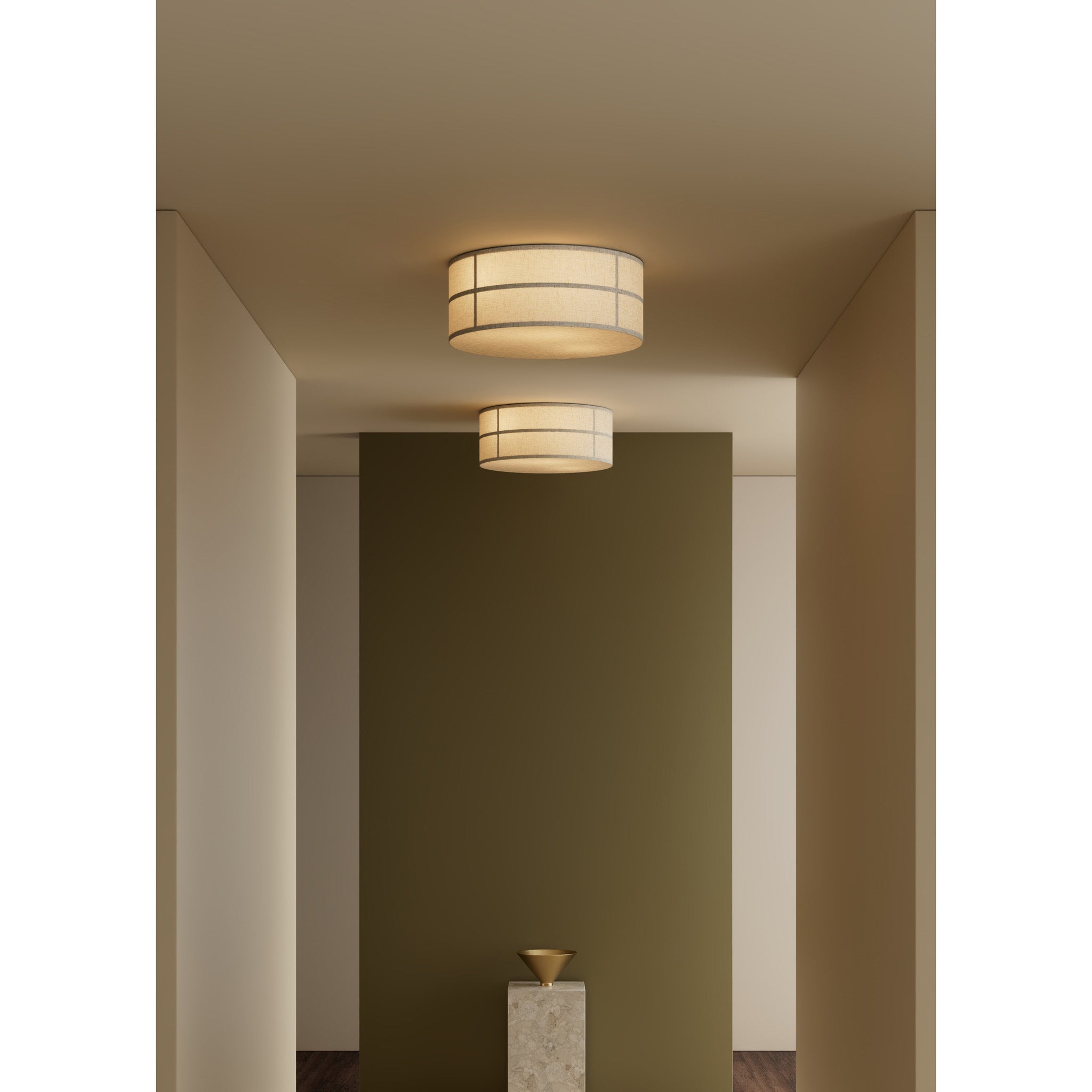 Sitting flush against a ceiling, the Hashira Ceiling Lamp reduces the characteristic elements of the lighting collection to their purest forms, creating a design that is as subtle as it is sophisticated. It emits ambient light into rooms, diffused through its textured linen shade. Bulb not included.