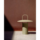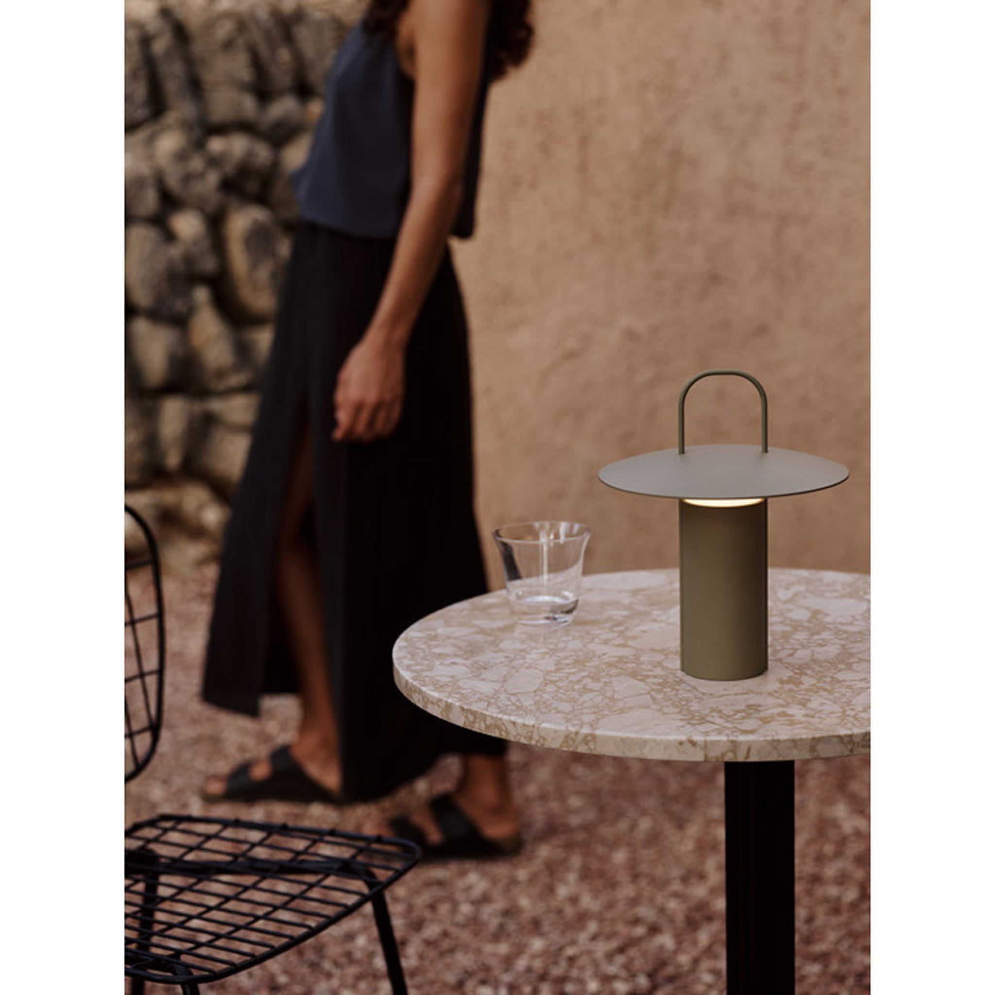 Daniel Schofield's Ray Table Lamp for Audo has a distinctive silhouette inspired by old mining lamps. Its simplified design in powder-coated metal and glass features a practical top handle that makes it easy to carry the lamp to wherever light is needed - from a living room shelf or dining room table to a bedside cabinet. Emitting a soft, muted glow from its energy-saving LED bulb, the dimmable design is adjustable to three settings. Available in two beautiful colours that complement any interior design scheme.