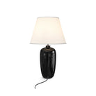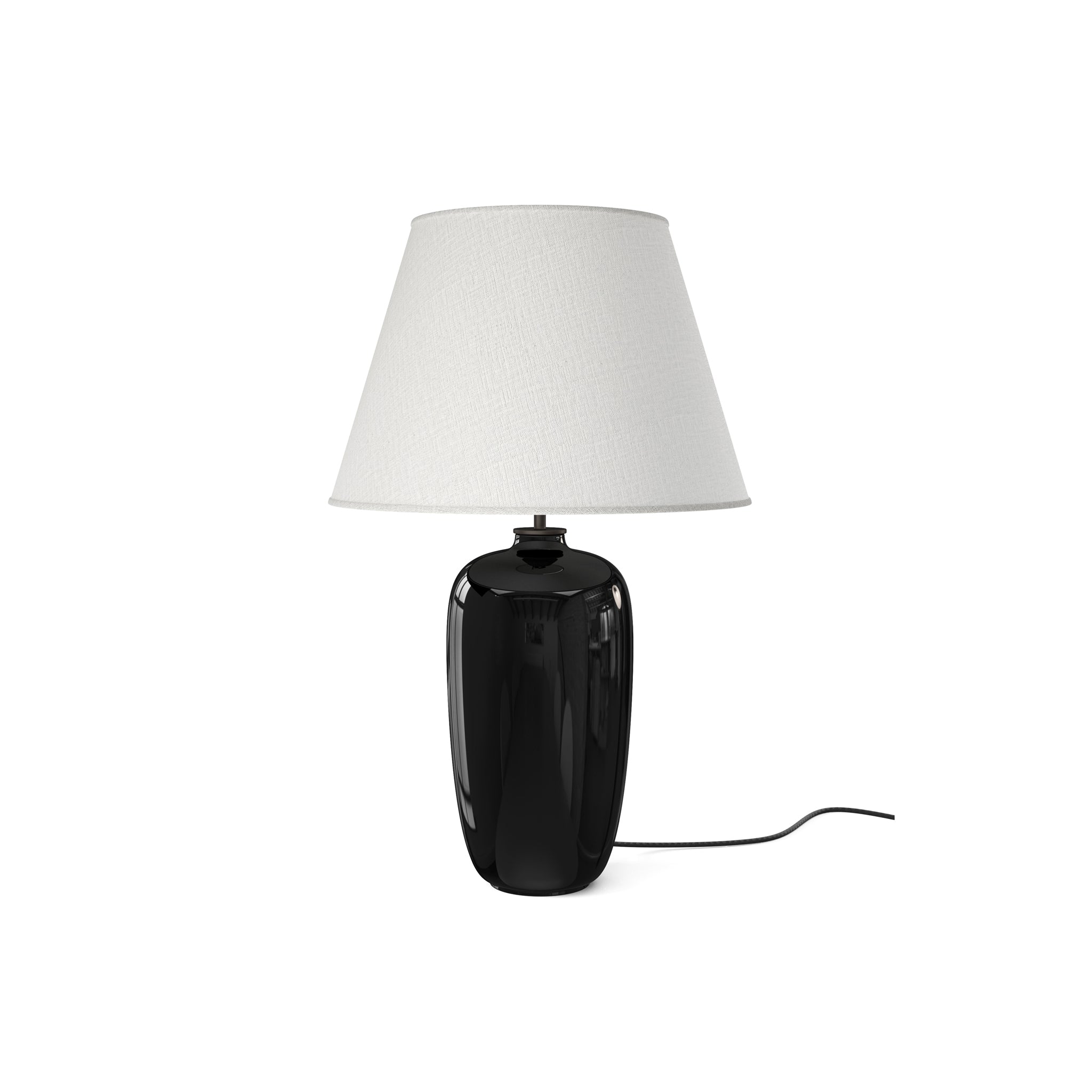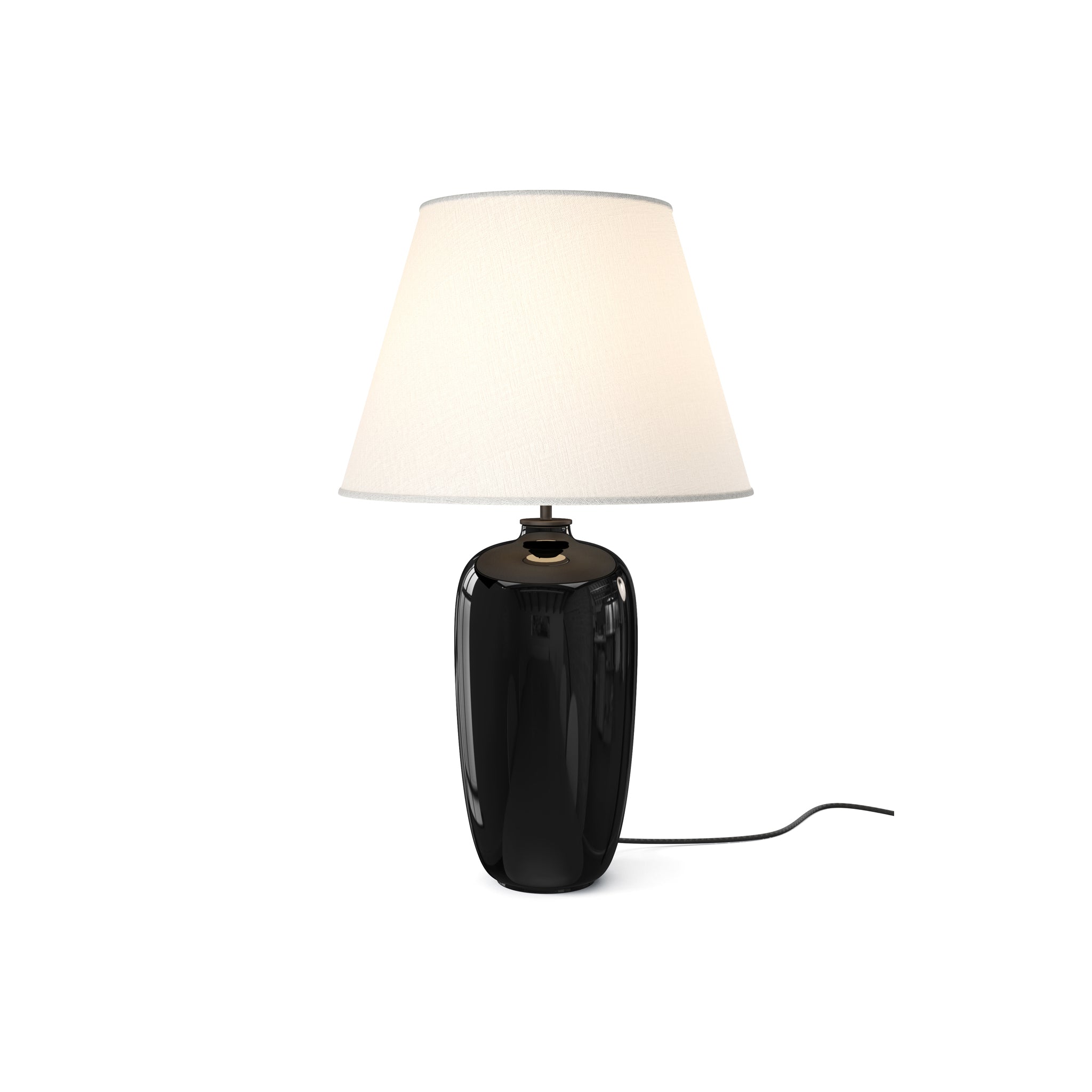 The transformative powers of light come into play on the Torso Table Lamp by Krøyer-Sætter-Lassen, designed with a timeless look that lends itself to any setting. The elongated base - cast from black-glazed stoneware and elongated for an understated yet sculptural expression - holds a tactile linen shade that diffuses the light to create instant ambience. A brass touch dimmer allows for a personal setting.