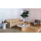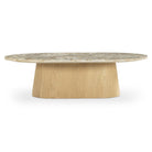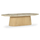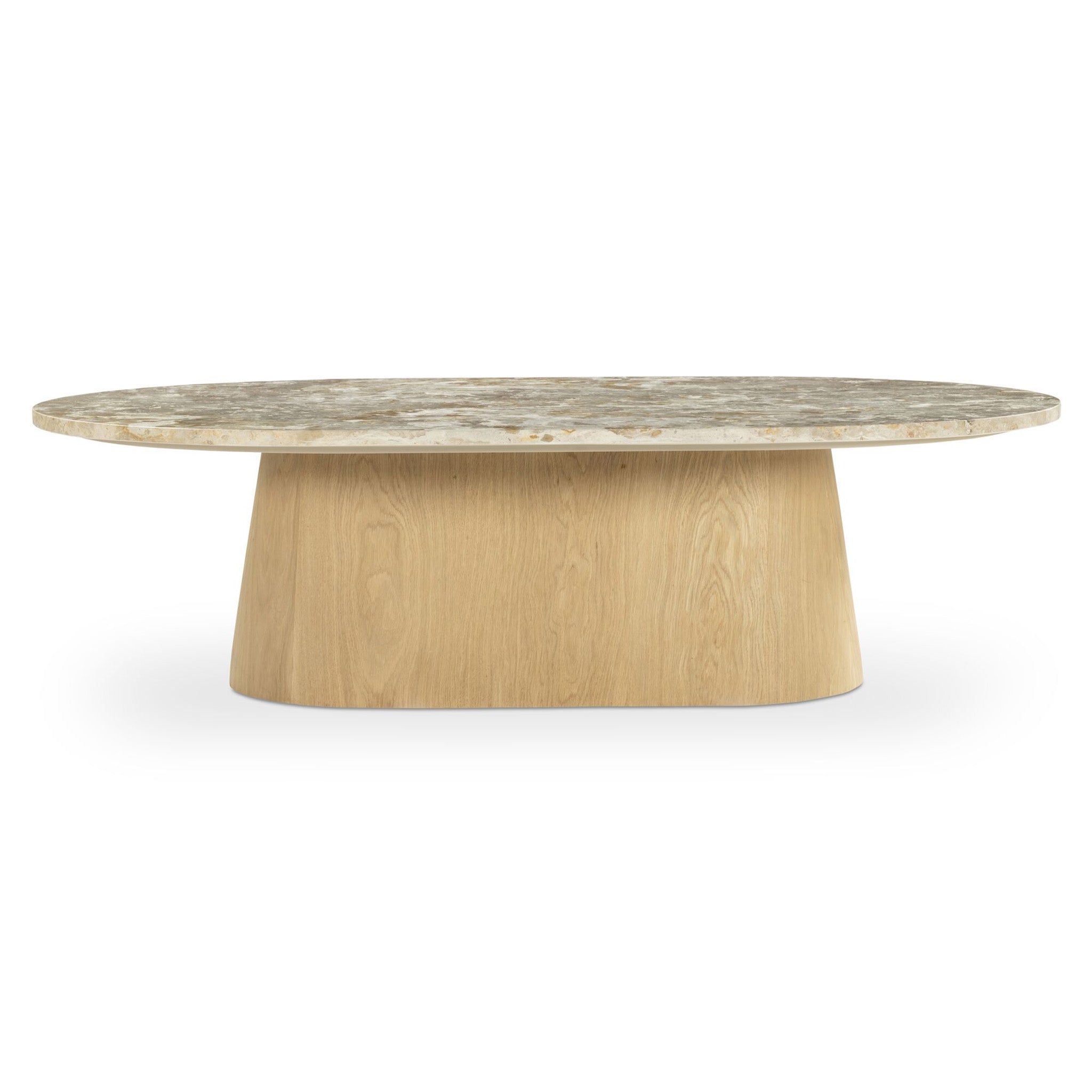 A cure for square spaces. Carly is all about the soft landing. Its capsule-shaped marble top rests on a slightly flared oak pedestal, picking up on the base's rounded form. The warm wood draws out the marble's natural veining, giving the whole piece a quiet sense of cohesion. Designed to round out sharper spaces, it brings sculptural balance where form meets feeling.
