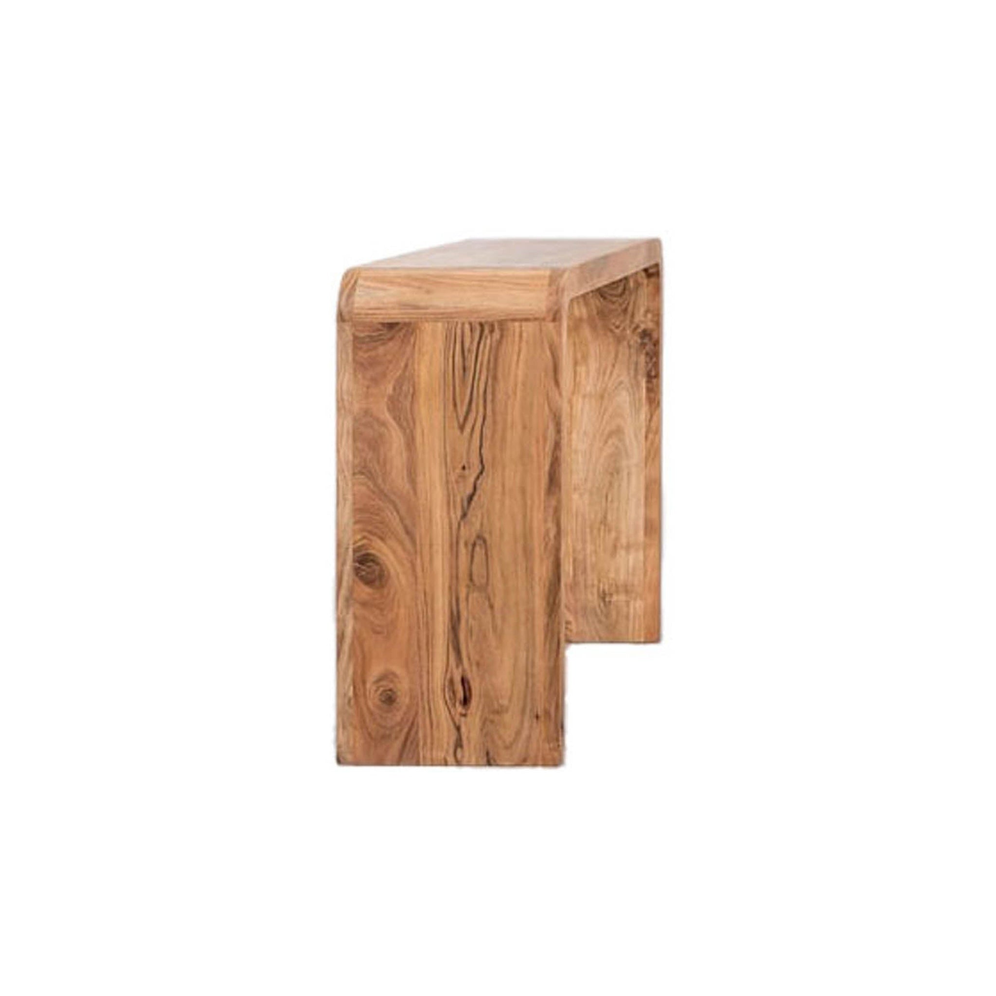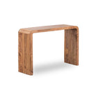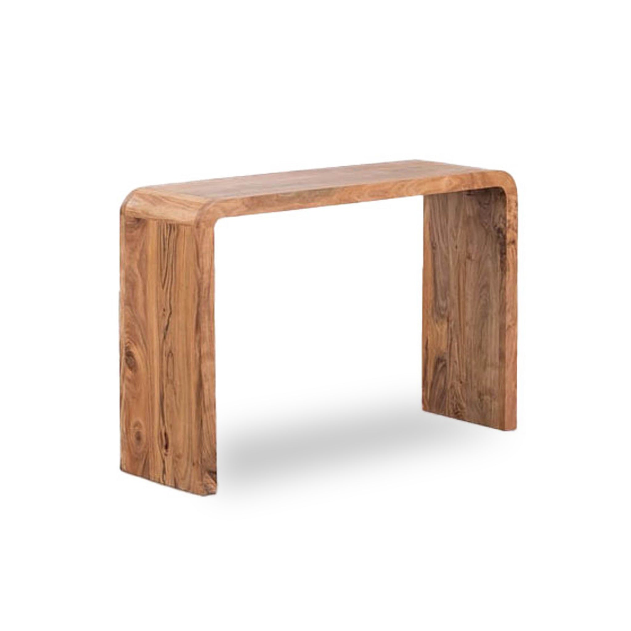 The Fabiola Curve Small Console offers style and usability to small spaces. It is made from solid acacia wood and shows off the natural grain and rich tone. Its curved edges create a soft, modern feel. Built with strong mortise and tenon joints, this console offers lasting strength and fits well in entryways, halls, or behind a sofa.